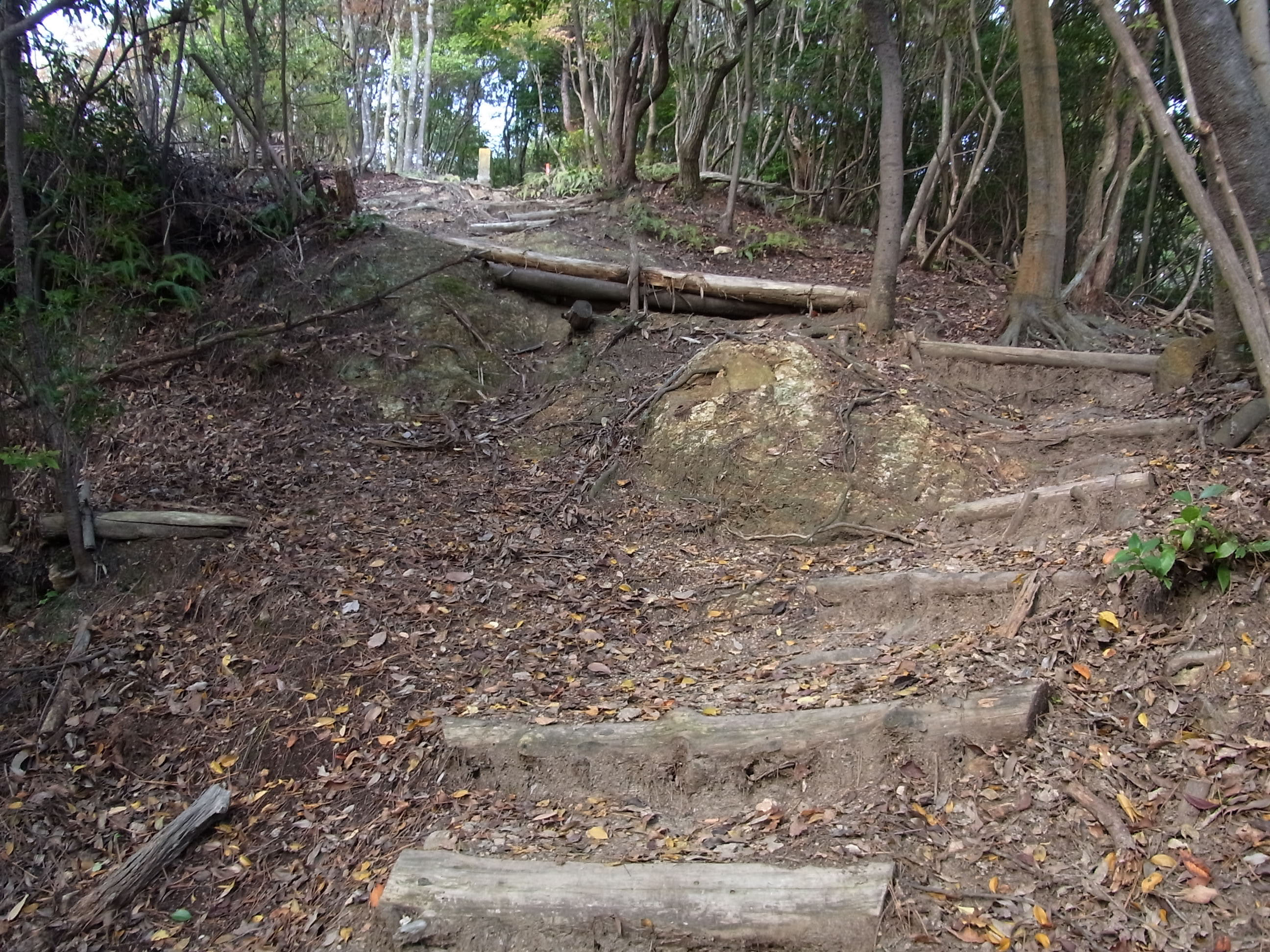 | 周回コースを戻ってきてから苔寺まで、上り下りを繰り返しながら尾根道を歩きます。 |