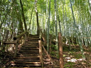 | さらに上り下りしていったら見事な竹林が見えてきて、ここが苔寺の奥の終点でした。 |