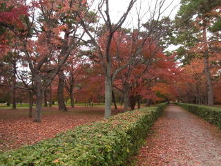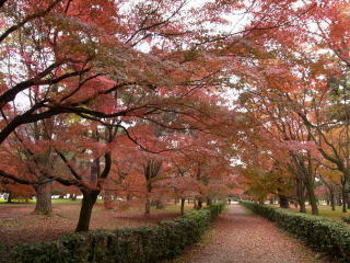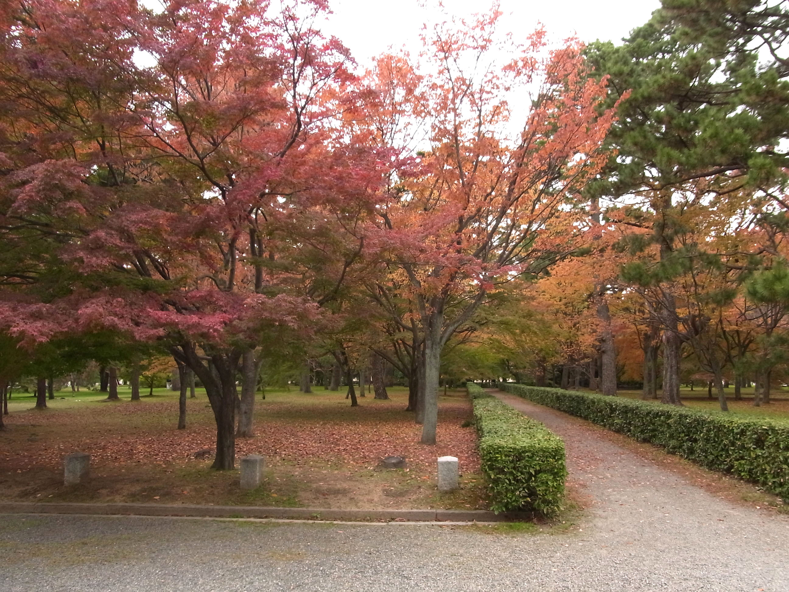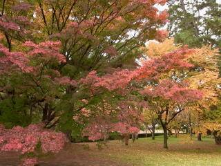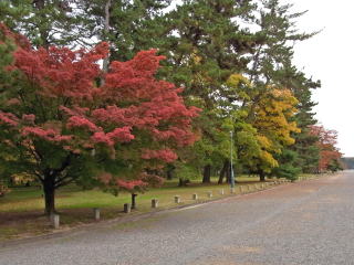 | 23日から1週間たった御所は赤色が充分に加わって、綺麗でした。 |