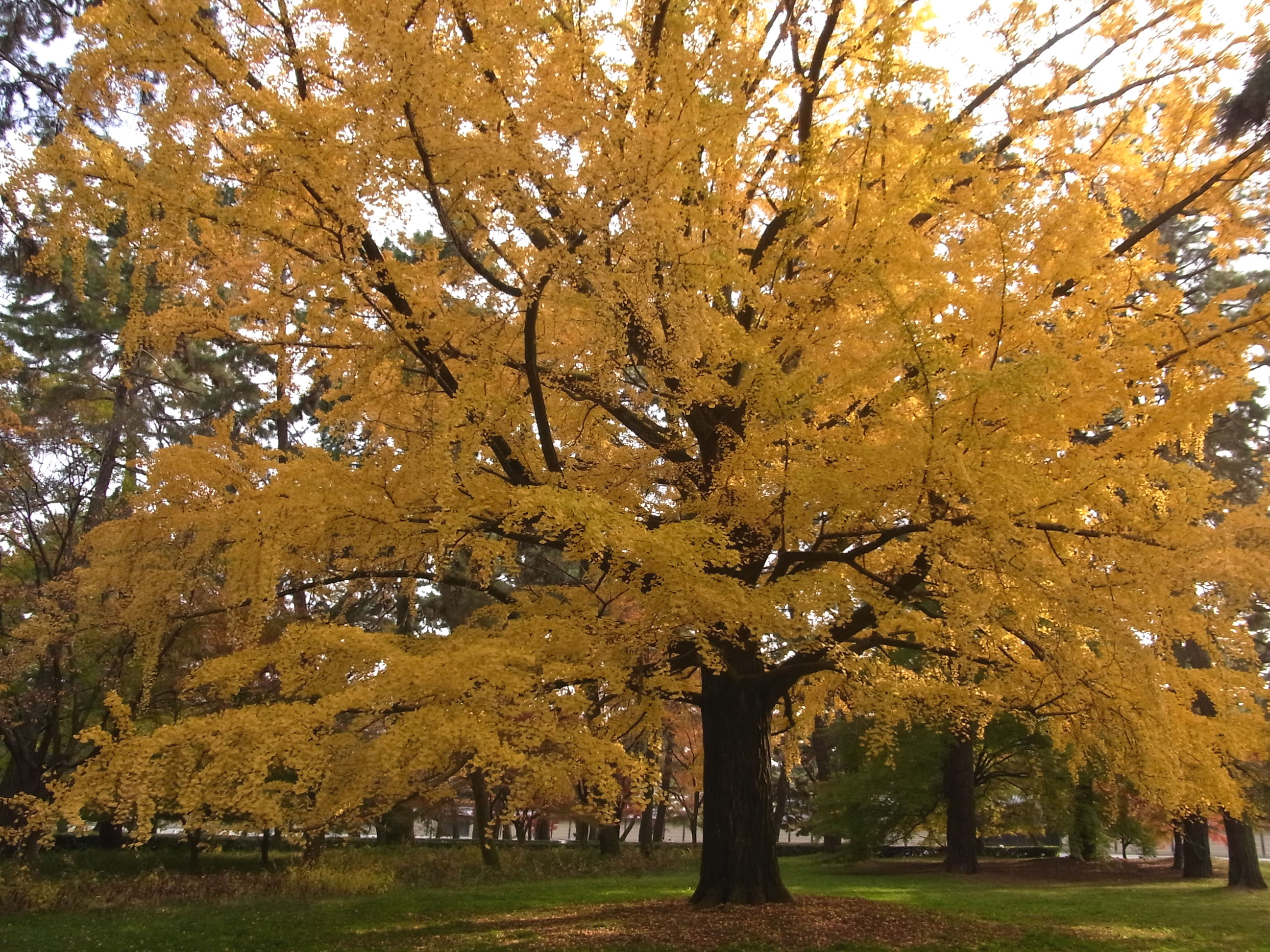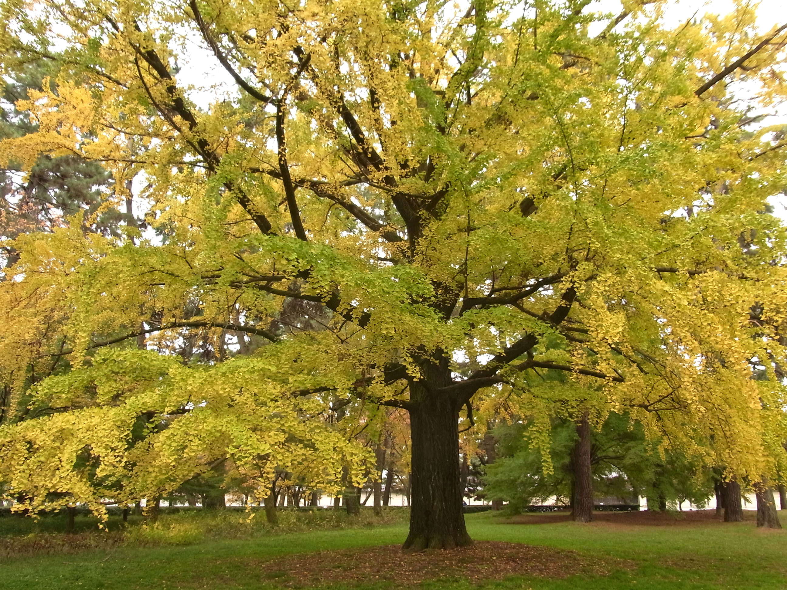 | 天気が悪いのと時期が早いと思ったので、御所の様子を見に行きました。 綺麗に紅葉している樹が所々ありましたが、全体では2・3分と云う感じでした。 |