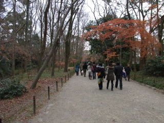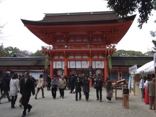 | 蹴鞠初めがあったので、本殿前は凄い人でした。ここから高野川に架かっている御蔭橋を渡って 御蔭通東大路東入の田中神社に行きました。 |