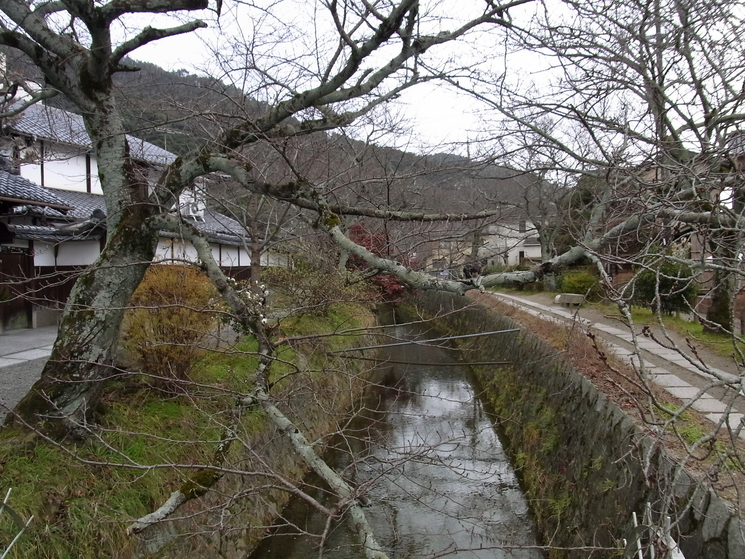 | 京大農学部グラウンドで右折して疎水沿いに銀閣寺の哲学の道に向かいました。 地図 |