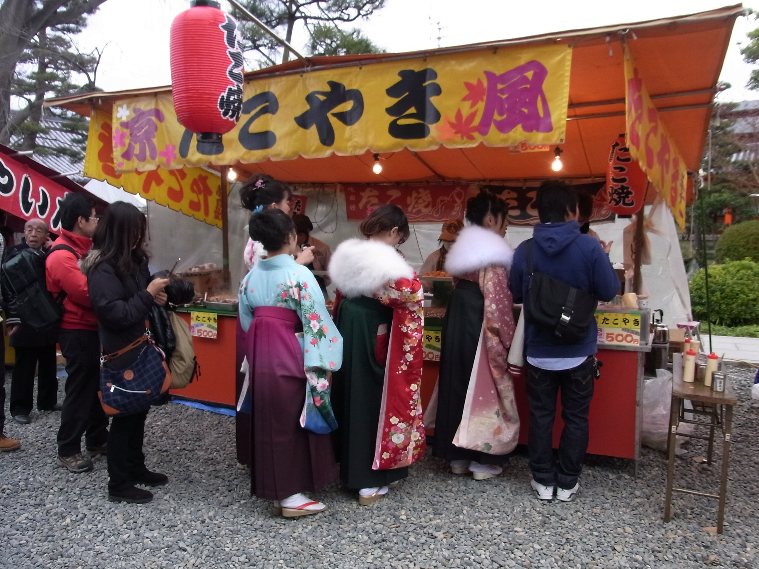 | 三十三間堂前には屋台も出てて、列に並ぶ光景も普段とは違います。 |