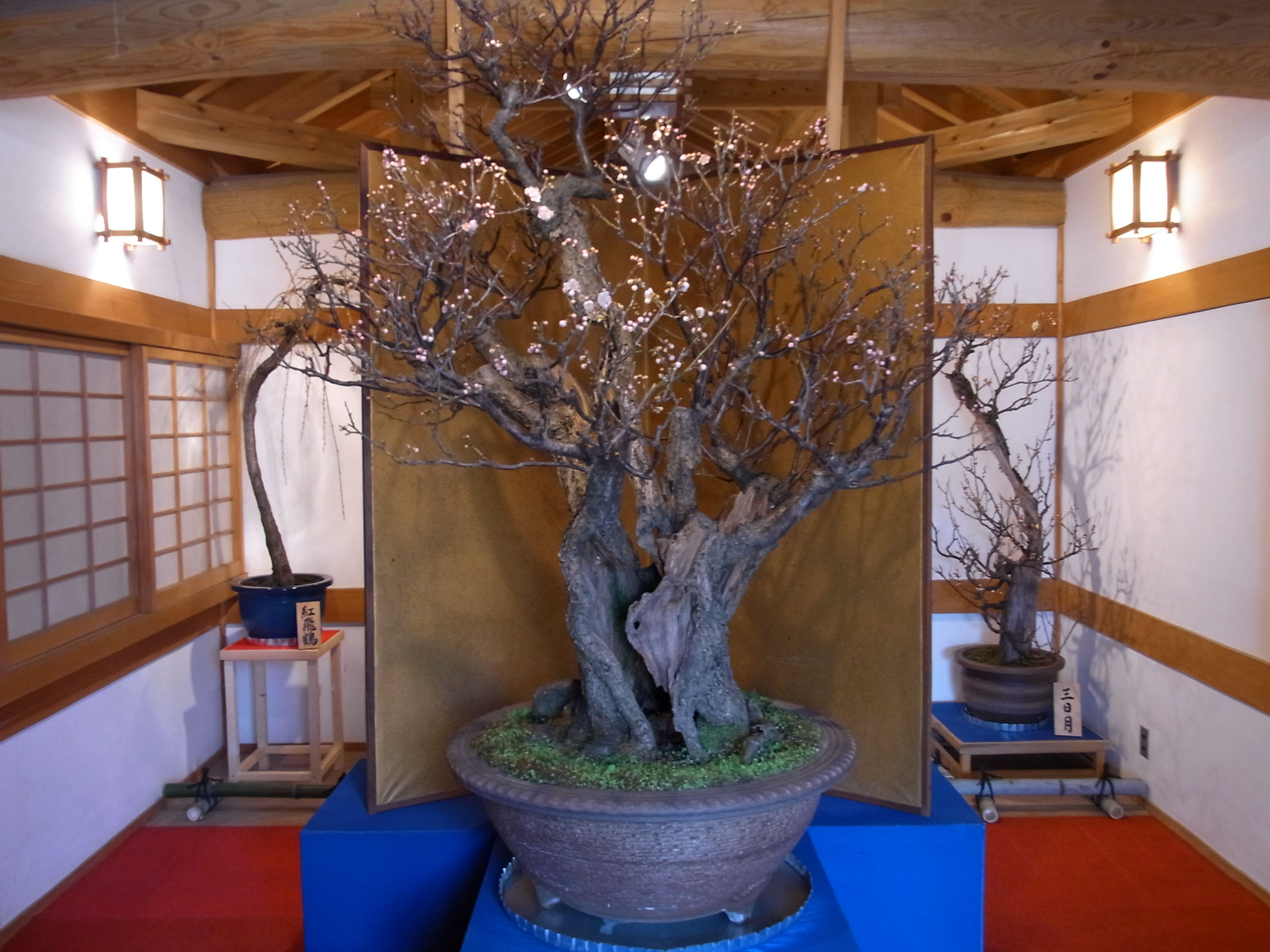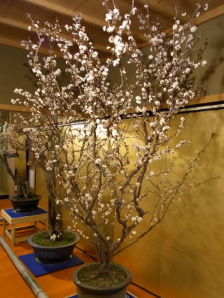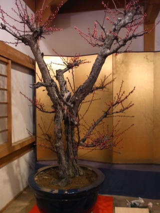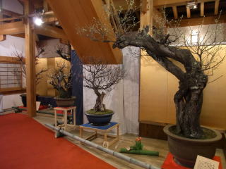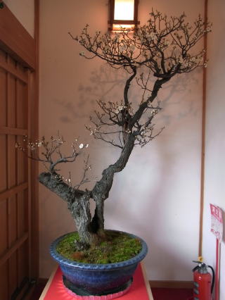 | 思っていた以上に見応えがありました。長浜盆梅展の樹齢にはさすがに及びませんが、数はこち らの方が多いのではないでしょうか。屋内の多くの巨樹は、蕾が開花直前のパンパンに膨らんだ 状態で、屋外に展示されていた物は蕾も固く、今年は未だ少し早かったかも知れません。 |