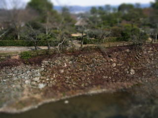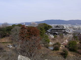 ![]() 天守閣から焦げた若草山が見えます |