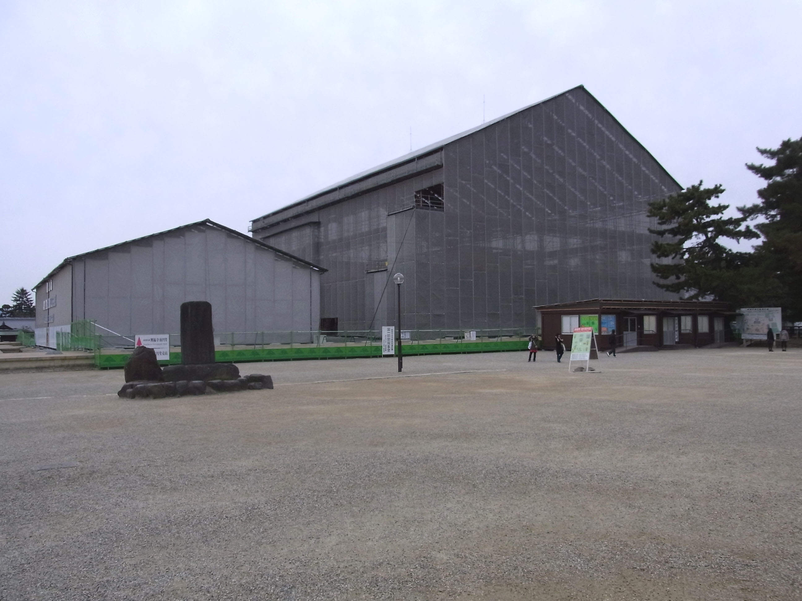| 猿沢の池から「ならまち」を通って、何時もの無料休憩所「大乗寺庭園」に寄りましたら、長〜い 復旧工事が終わっていました。庭園には100円の入園料が要り、東屋風の休憩所も見えます。 |