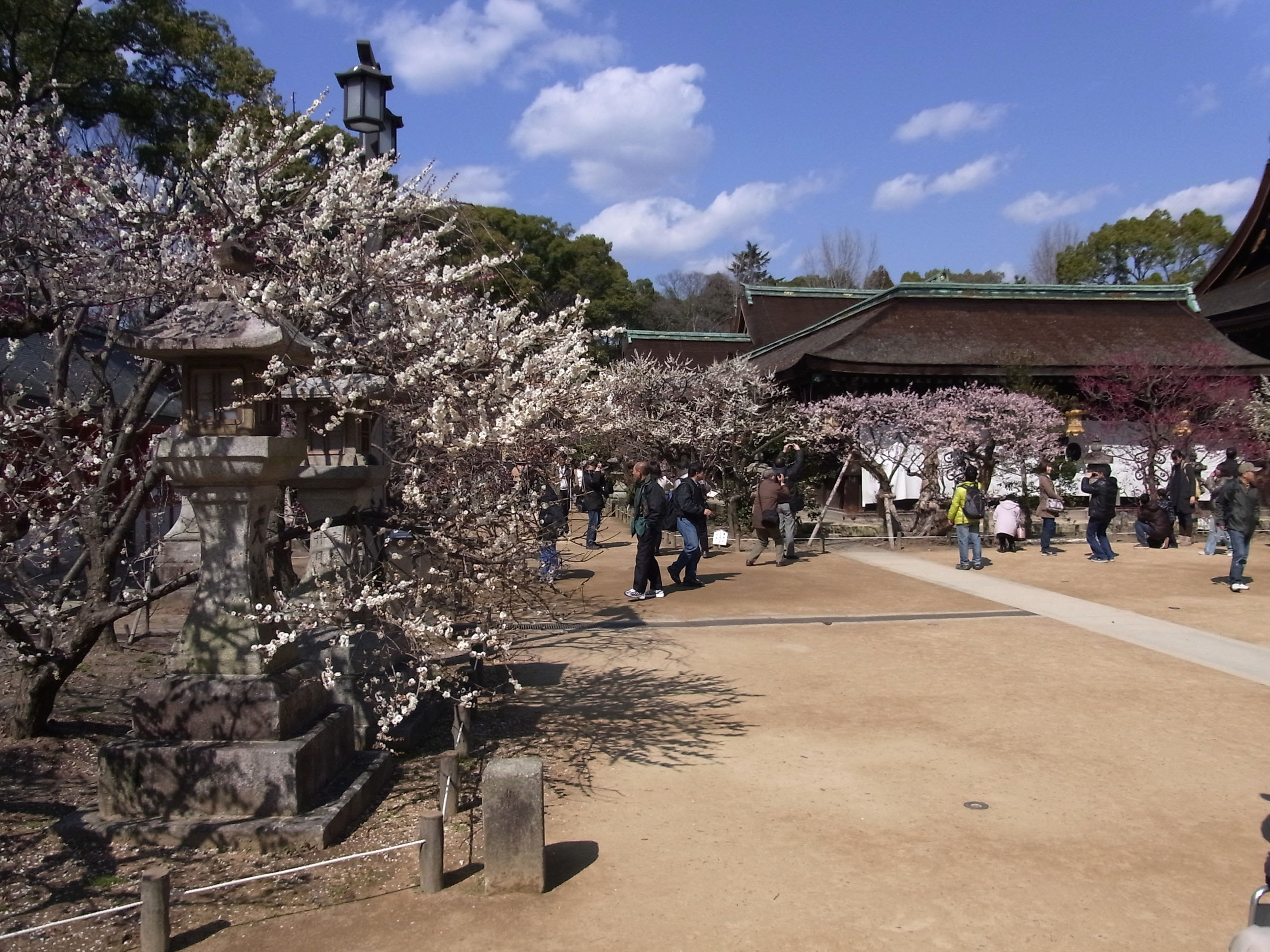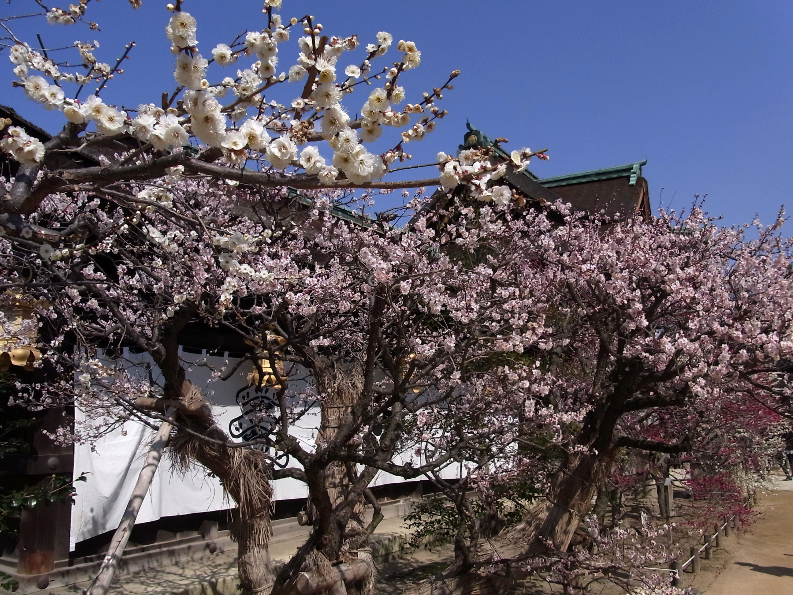 | 梅花祭が終わって3週間経っても未だ五分咲き位ですが、日々観光客で一杯です。 |