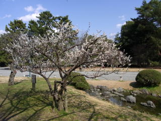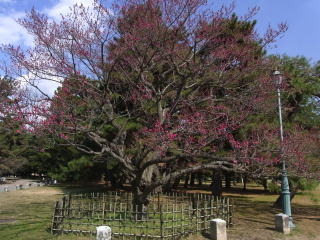 ![]() 御所で一番有名な黒木の梅も未だ数輪の開花 |