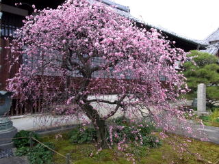 | 下立売七本松東入にある祐正寺のしだれ梅は、満開近し。 |