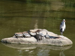 ![]() ポカポカ天気に亀も甲羅干し。 |