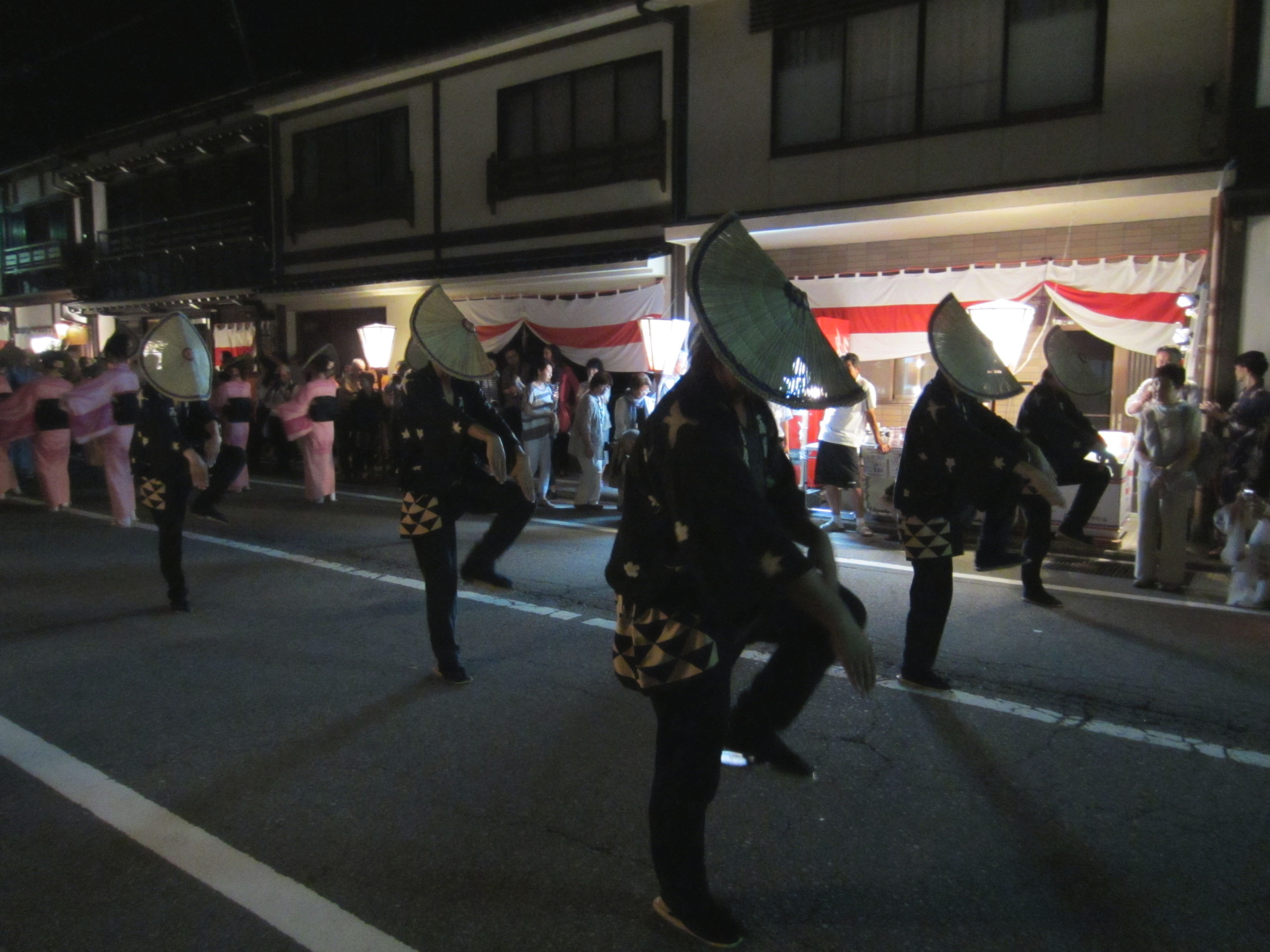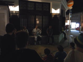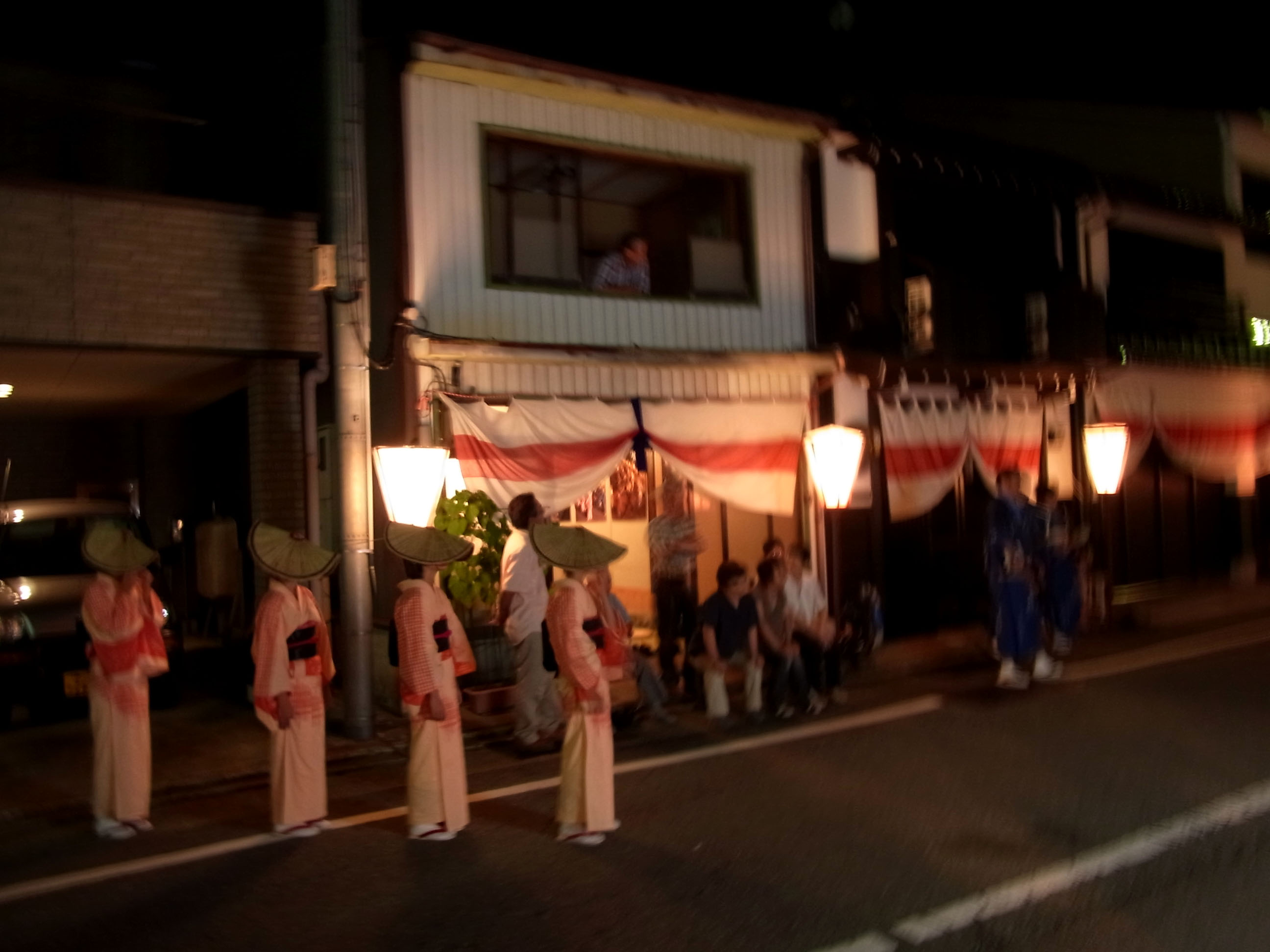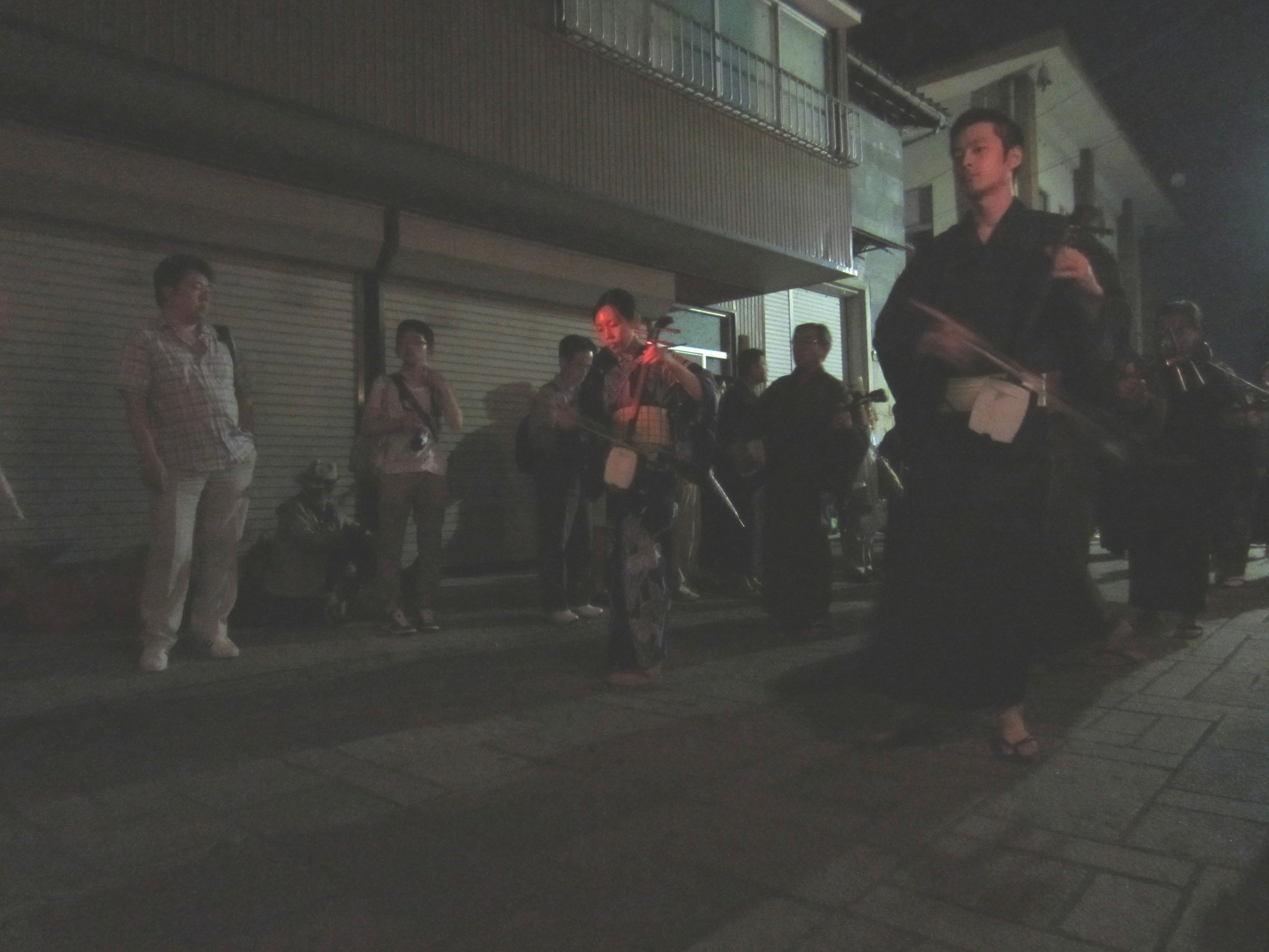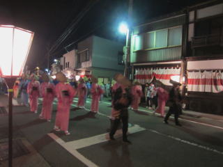 | 午前1時を過ぎた頃から町流しが始まります。暗いので拡大して見て下さい。 |