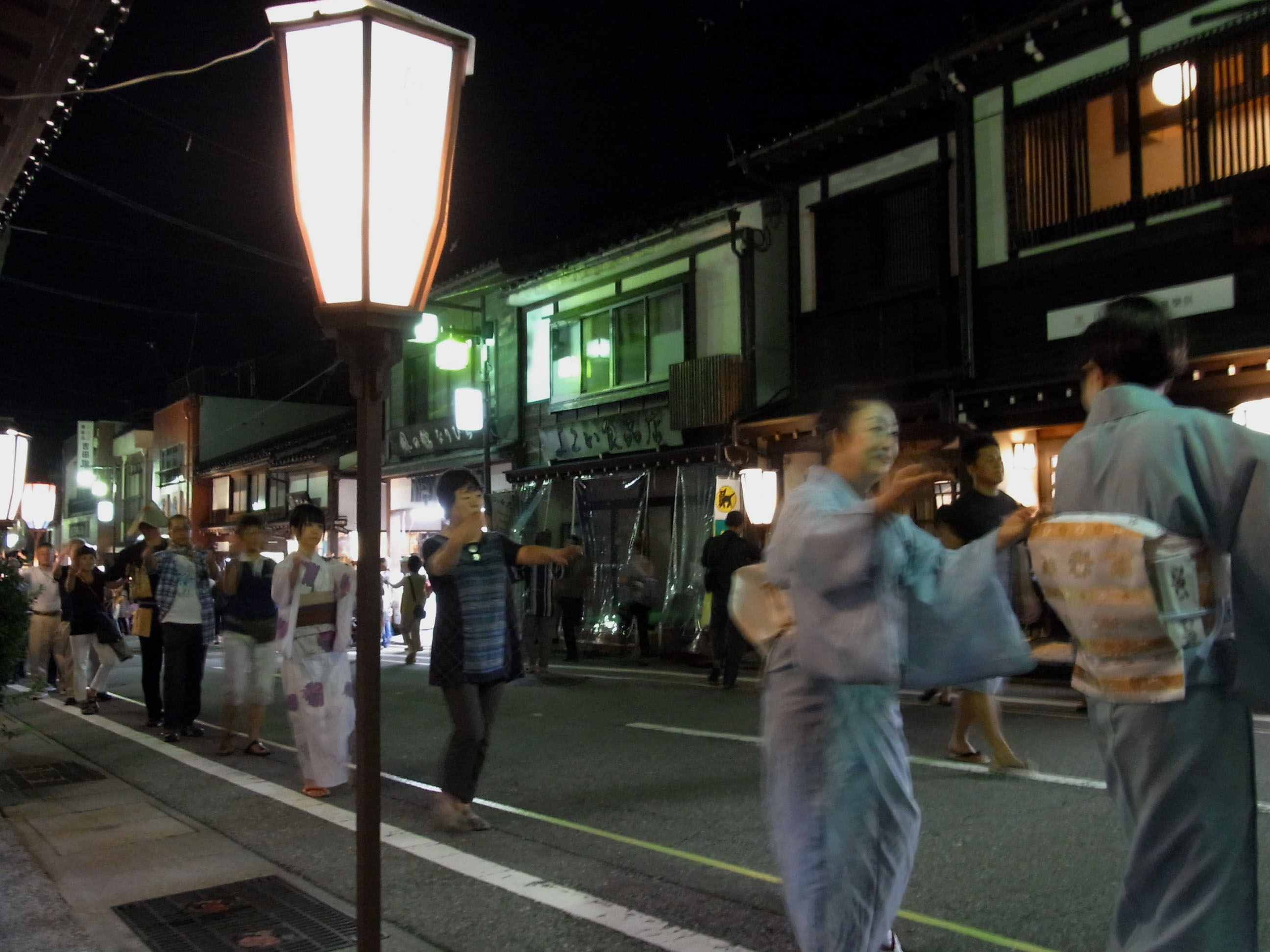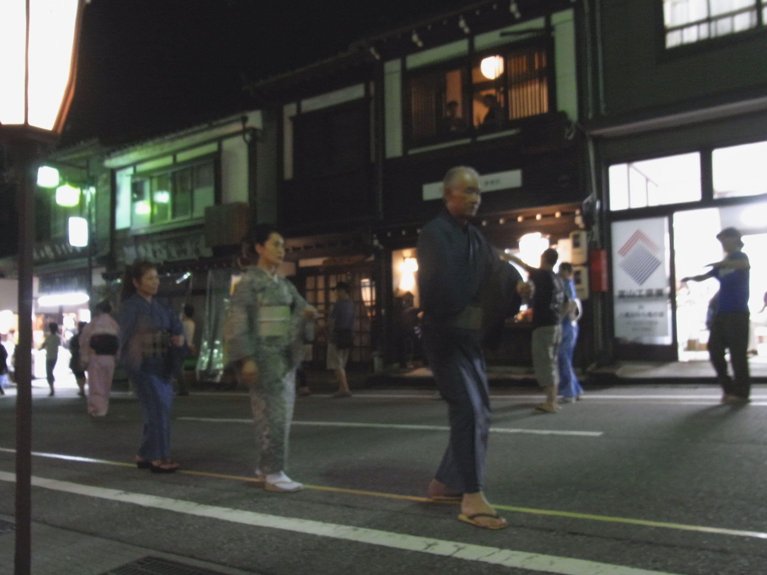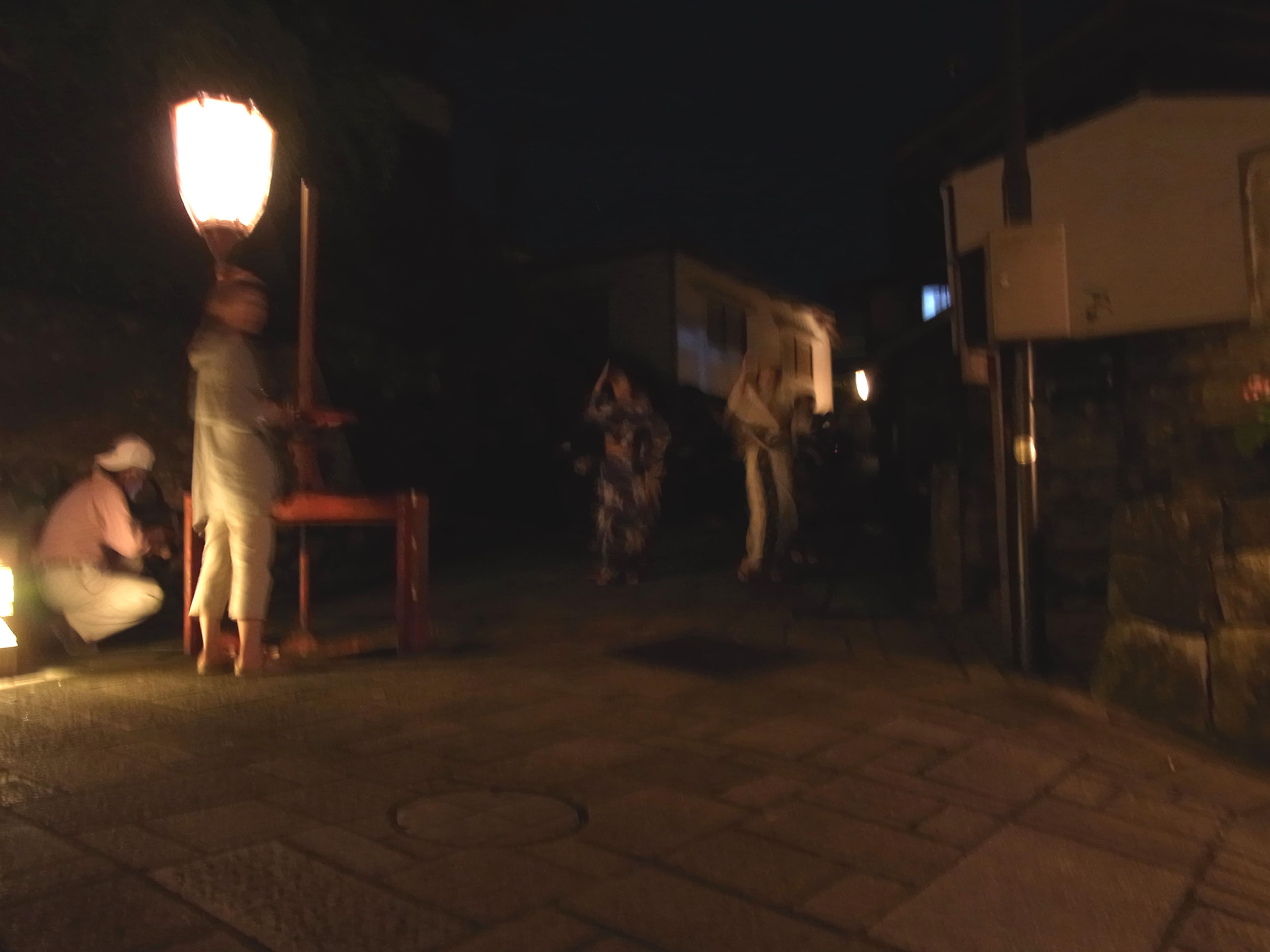 | 午前1時を過ぎた頃から町流しが始まります。暗いので拡大して見て下さい。 |