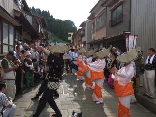 | 3時頃から各町内の踊りが始まり、続いて一般の人も混じって輪踊りになっていきます。 |