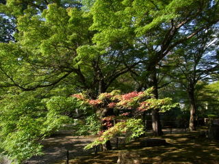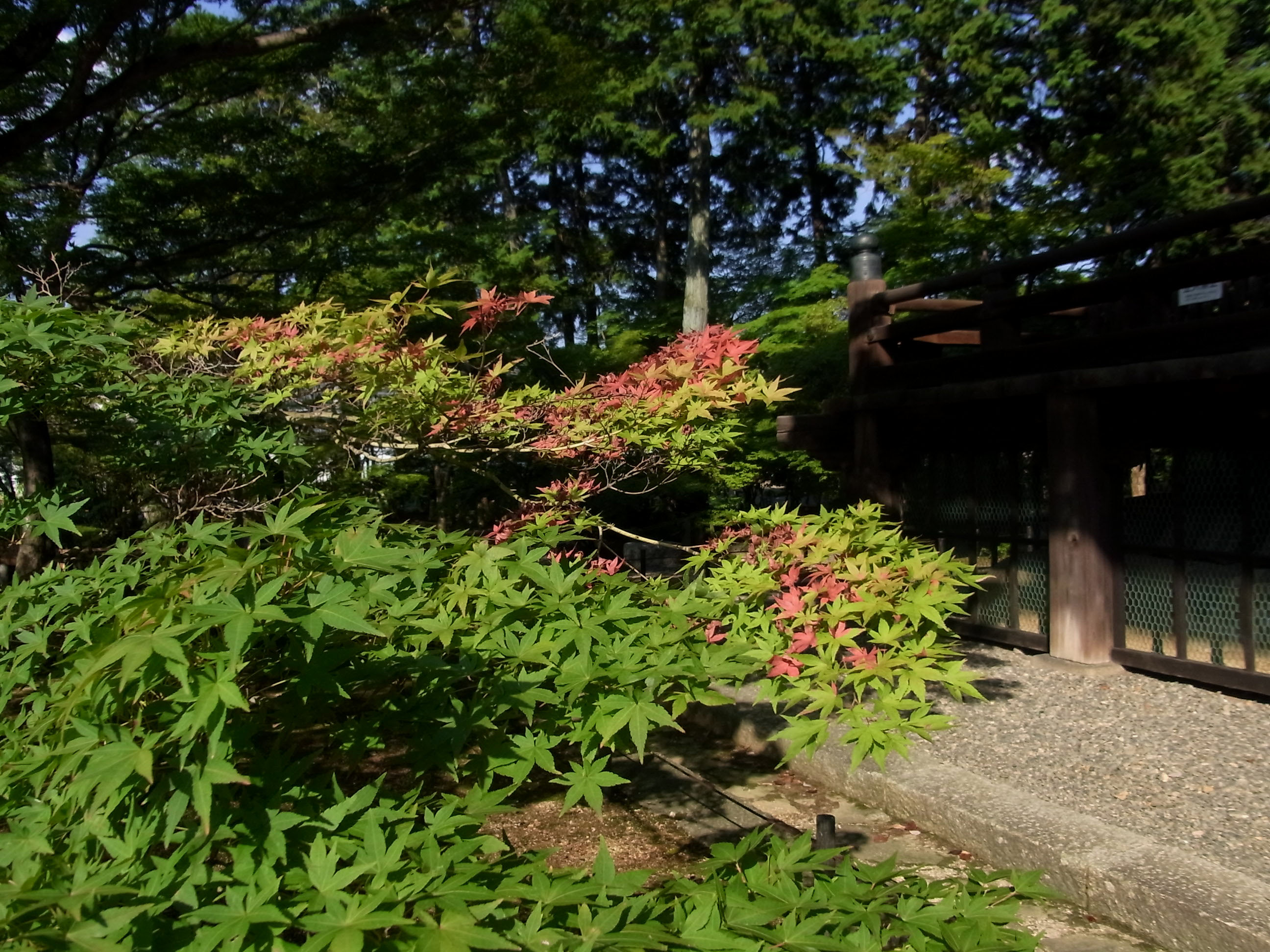 | コスモスや萩が咲き、モミジもほんのり色付き始めている樹もあって、初秋を感じました。 |