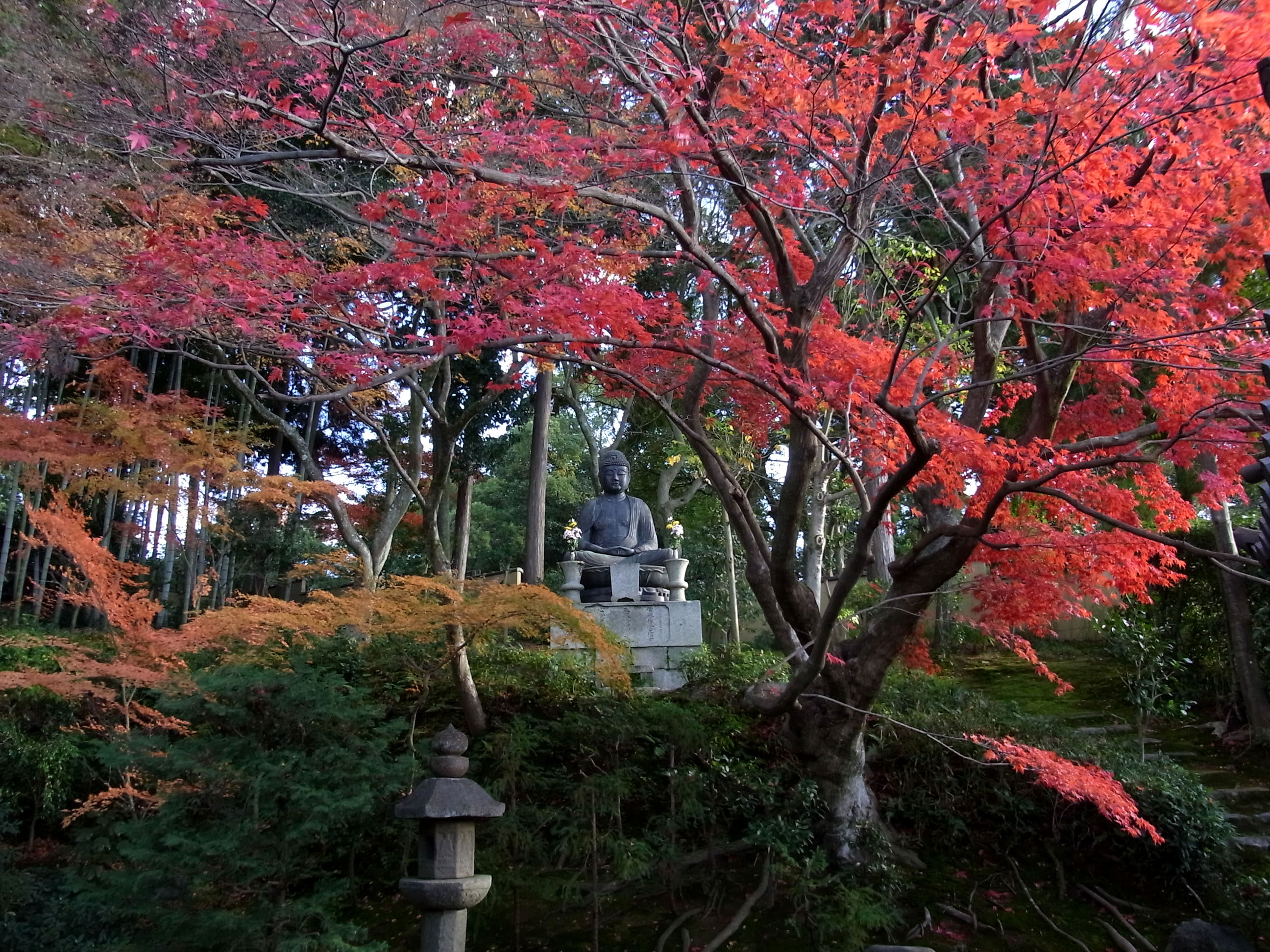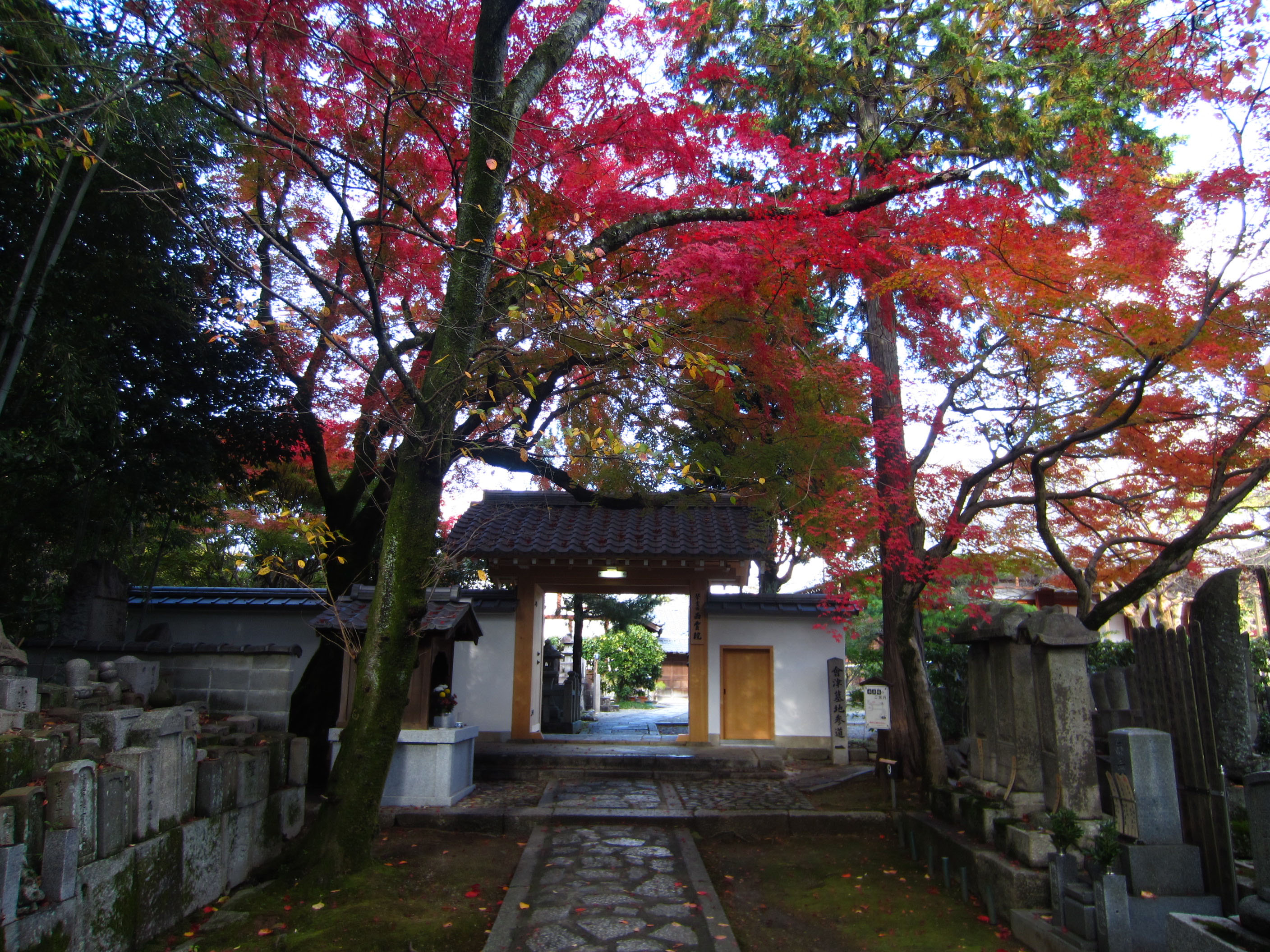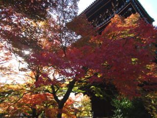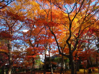 | 真如堂からの帰りに寄った金戒光明寺塔頭栄摂院の裏の楓は、真っ盛りで燃えていました。 地図 |