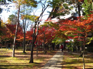 | 黒谷さんから真如堂に向う道の紅葉は、終わりをむかえていました。 |