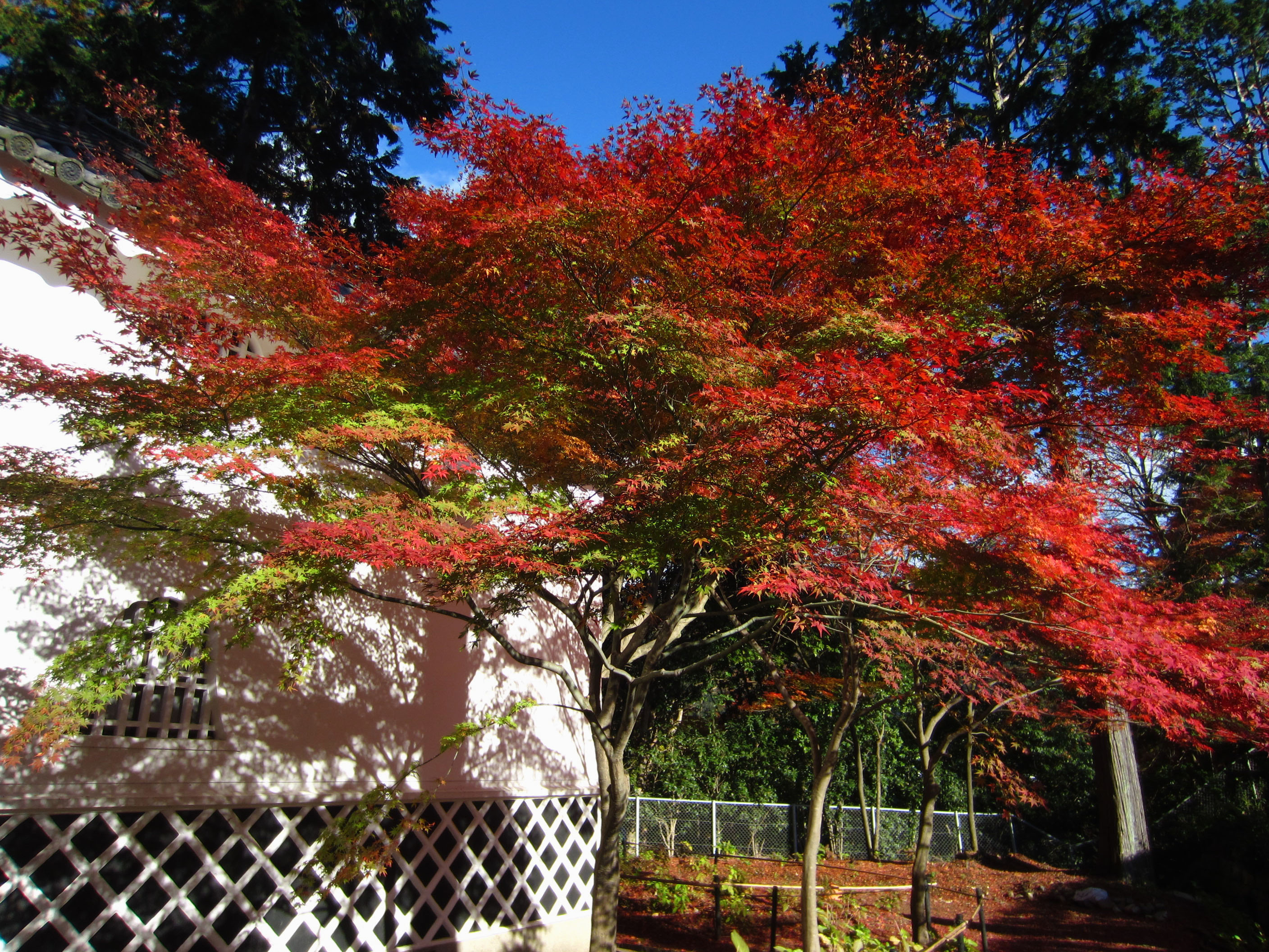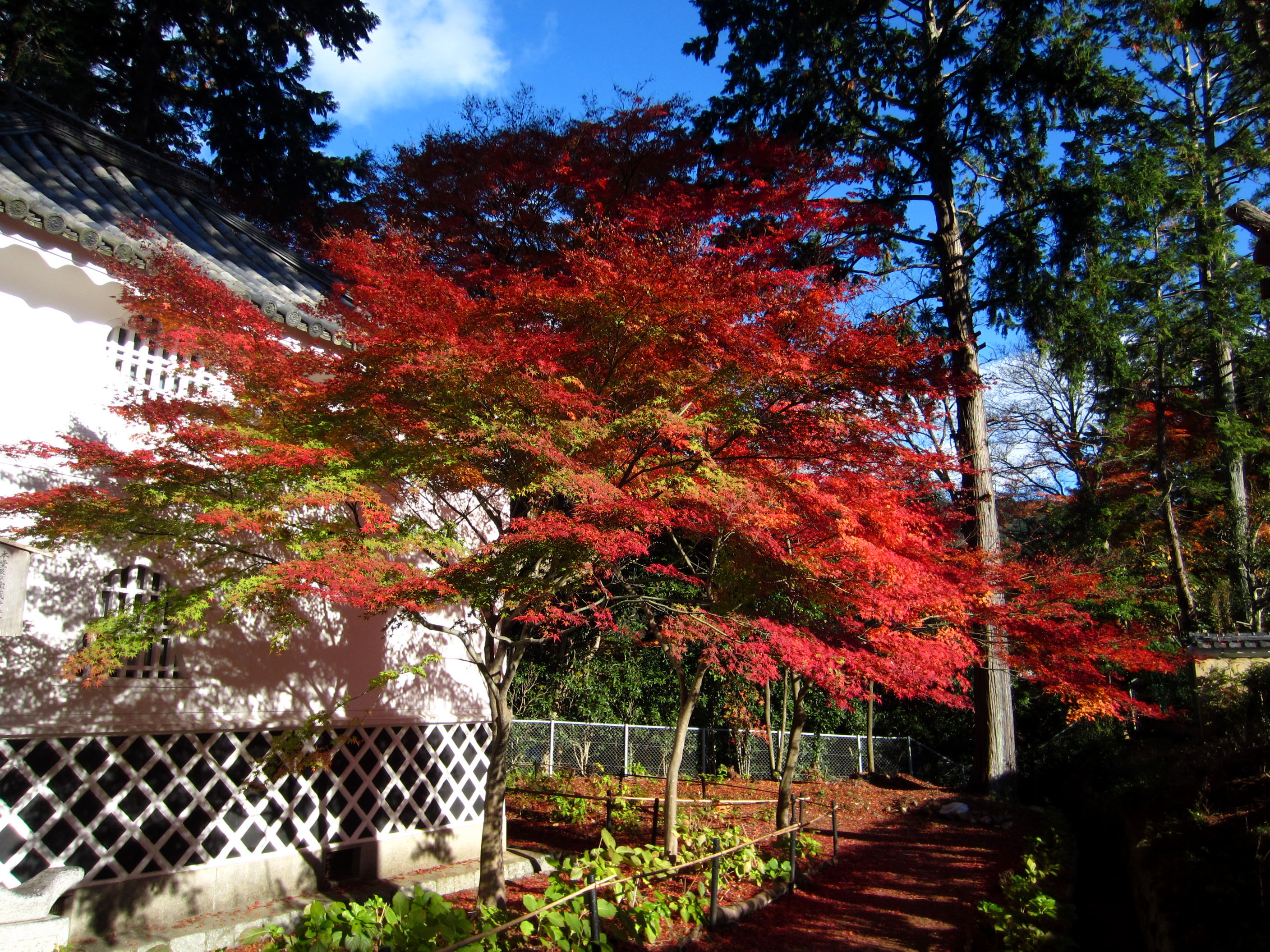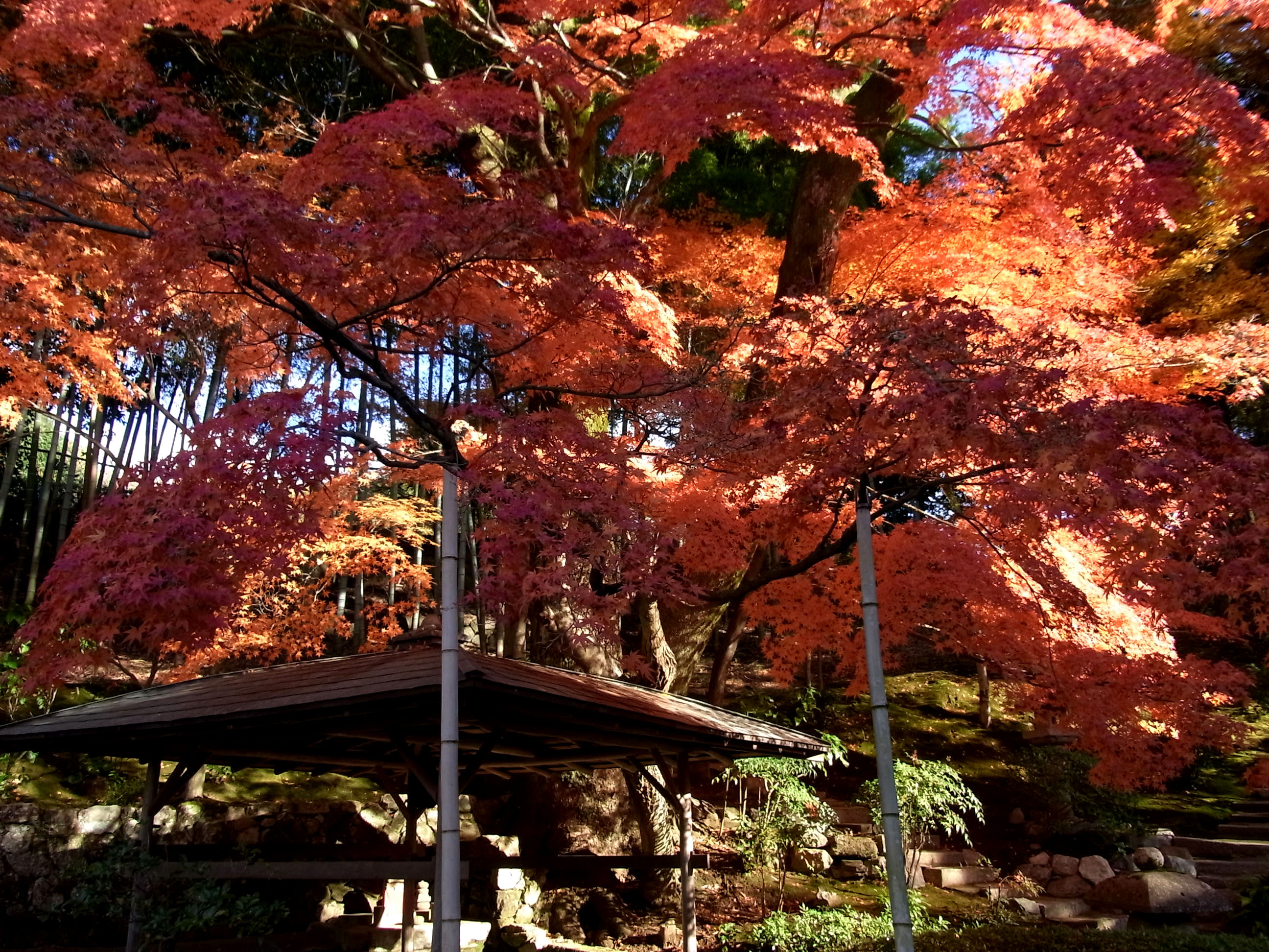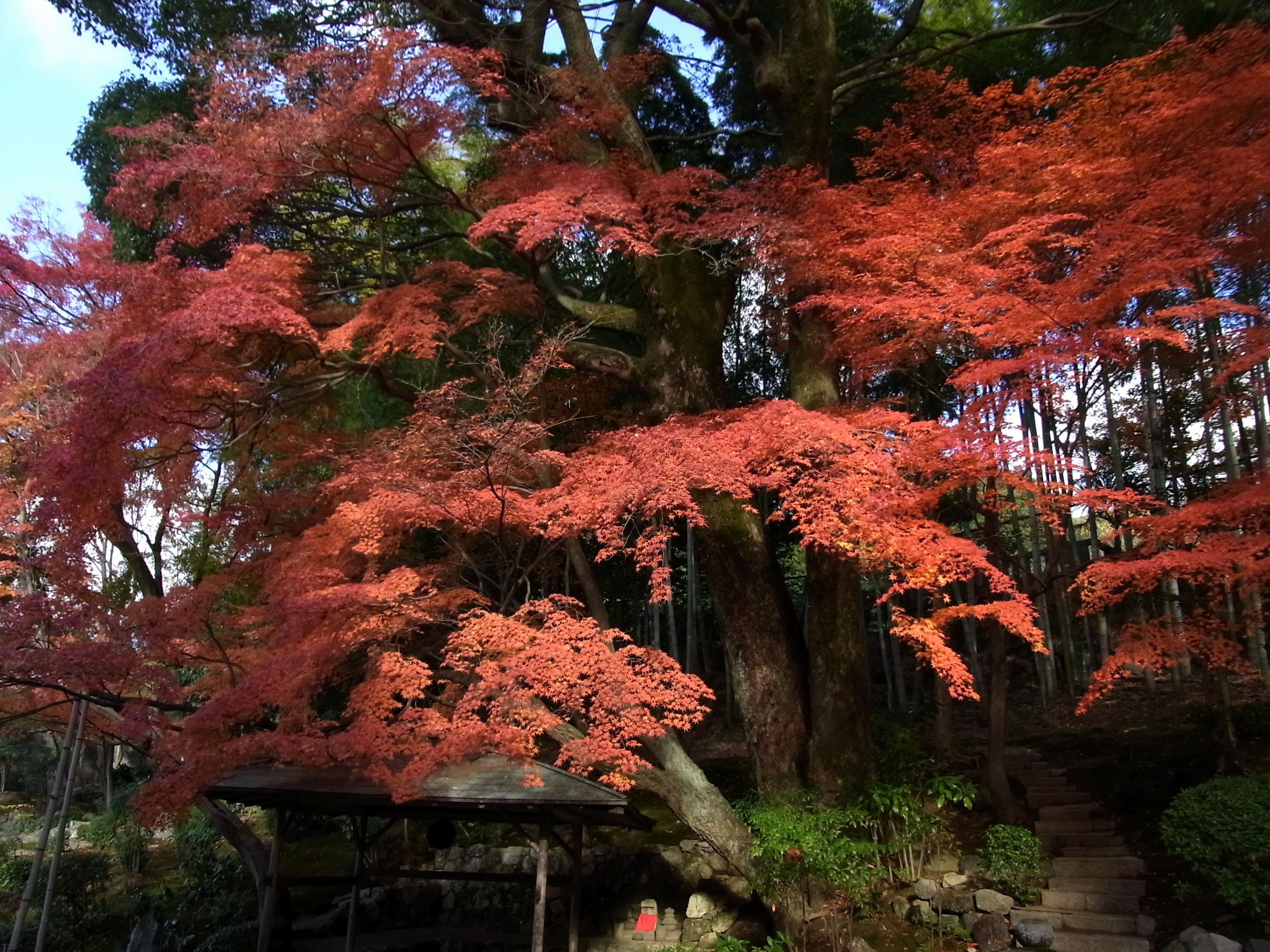 | 11月16日から11日も経っているのに、本堂裏は今が見頃とばかりに見事な紅葉に包まれました。 |
