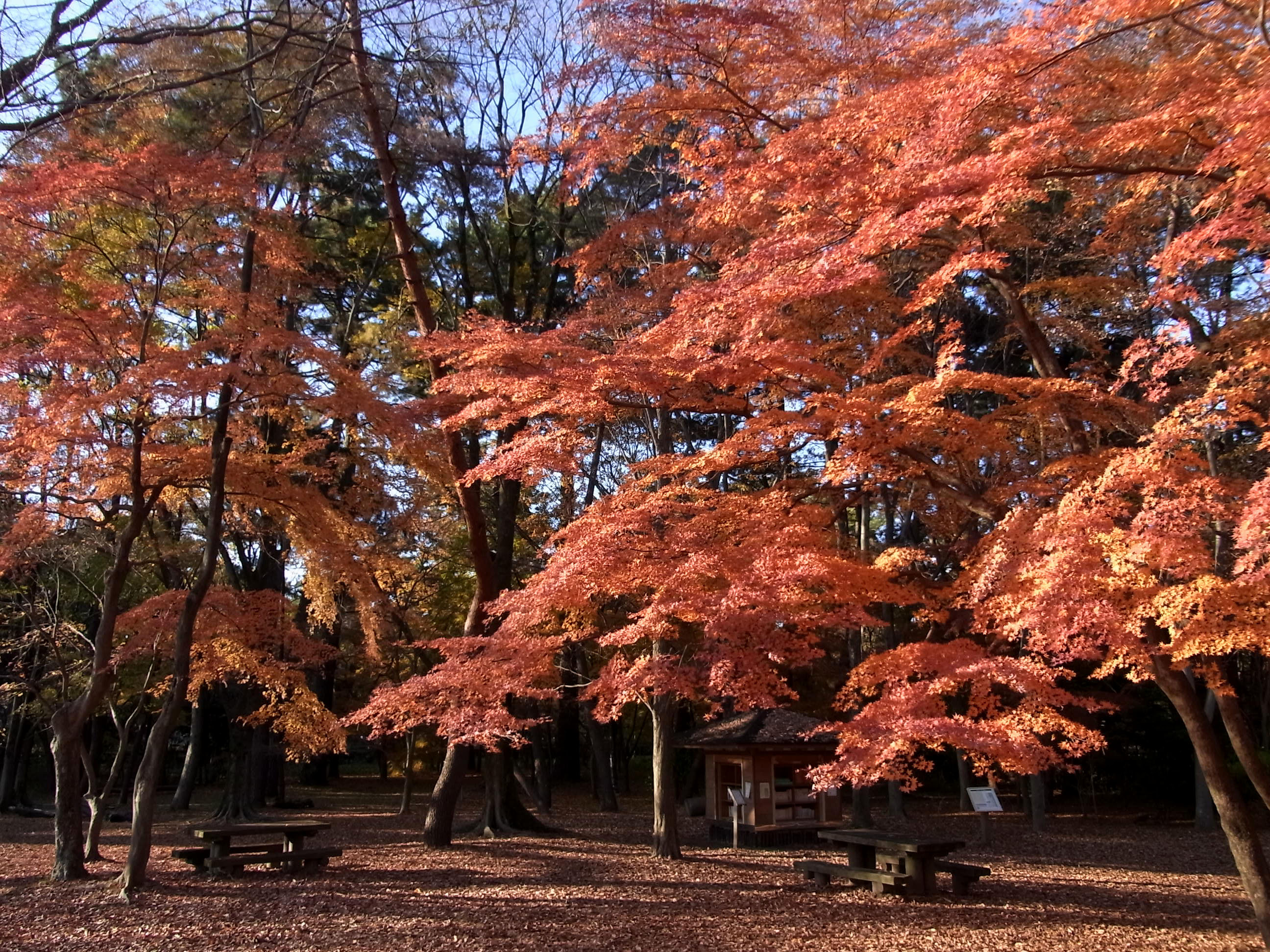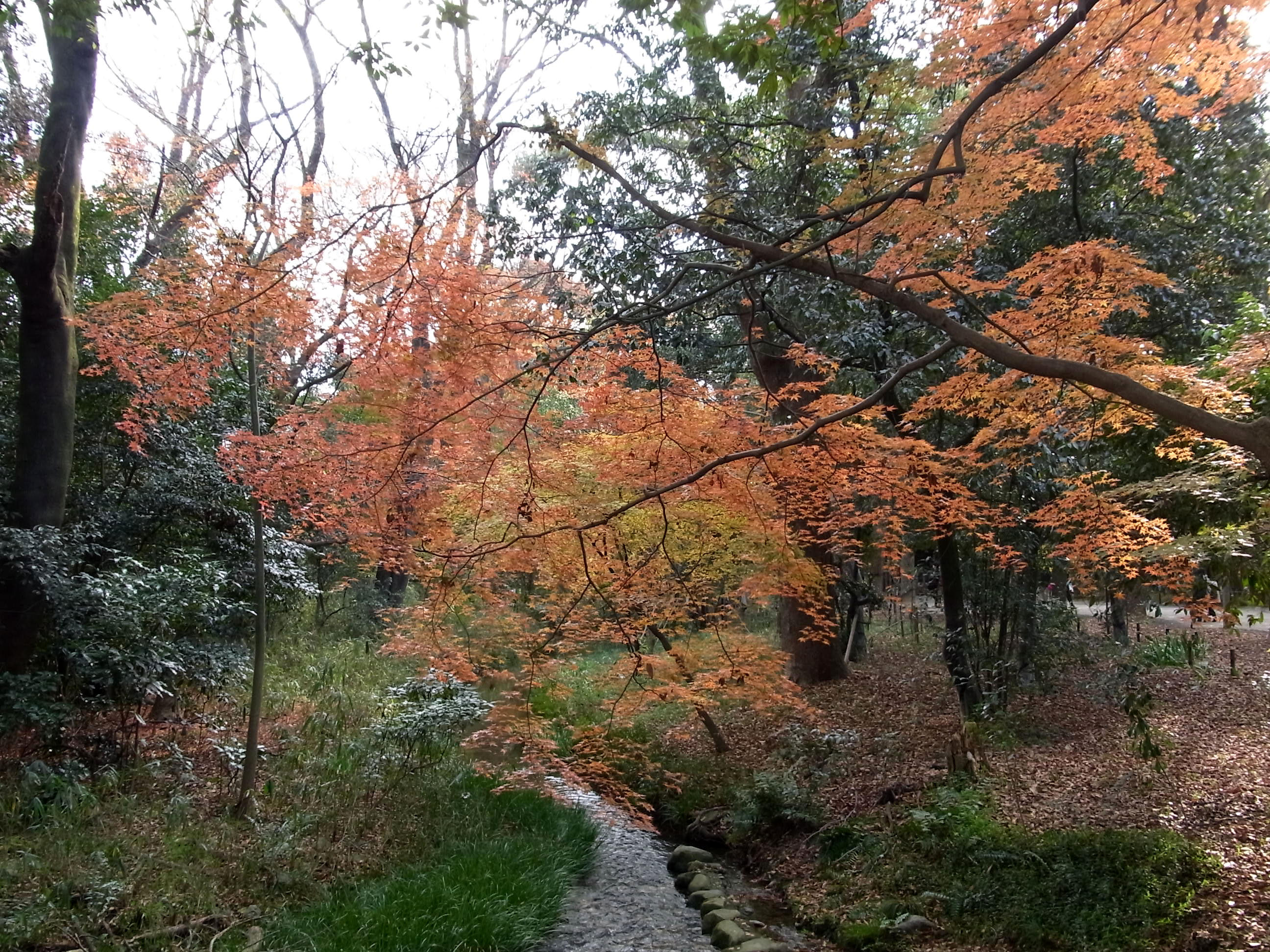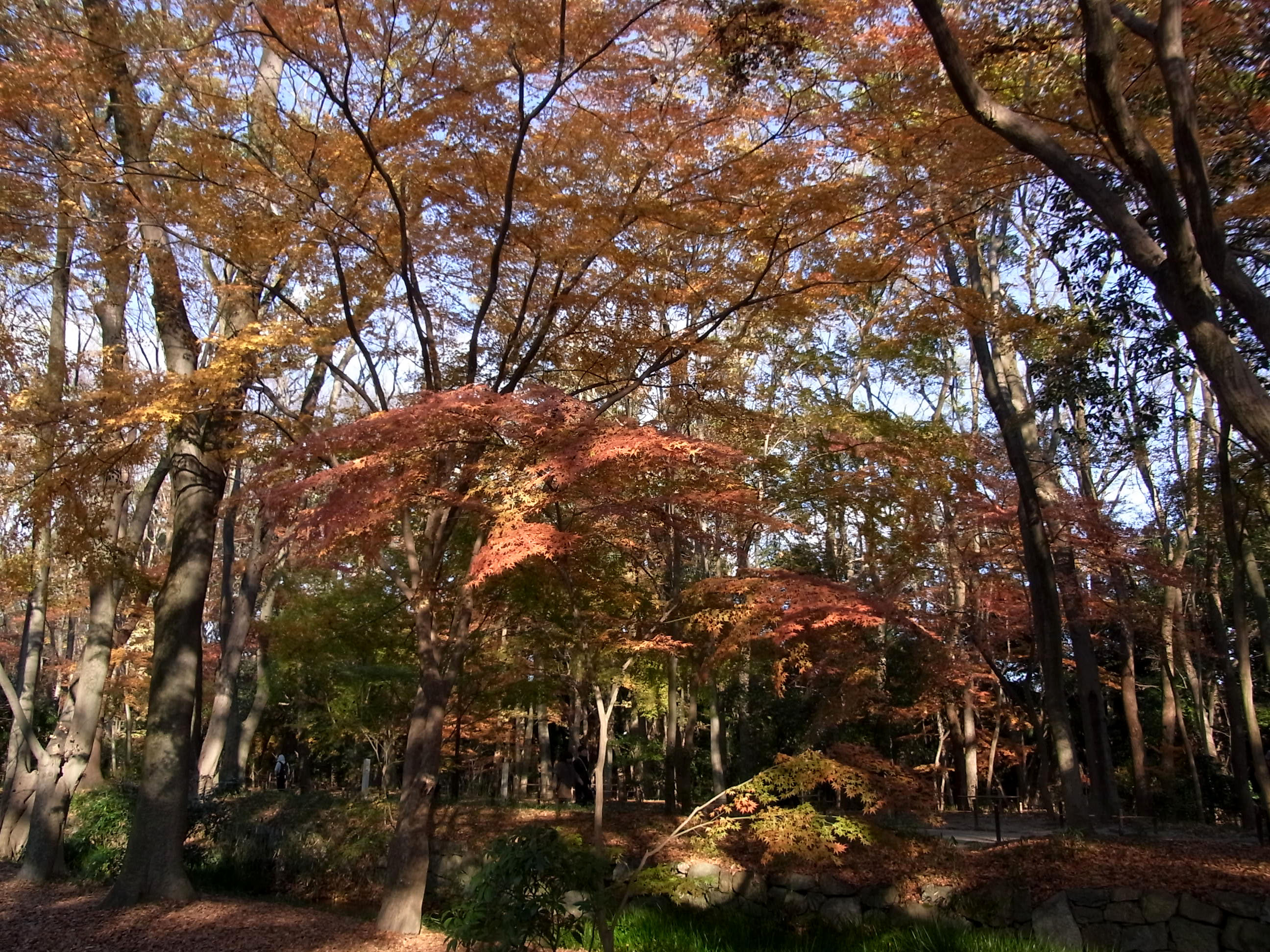 | 12月上旬なのに底冷えのする真冬の寒さでしたが、下鴨神社はたくさんの人が来ていました。 京都で一番遅く紅葉するので期待して行ったのですが、未だ紅葉する途中なのか赤く染まった 樹が少なくて、少し期待外れでした。 (写真をクリックすれば拡大されます) |