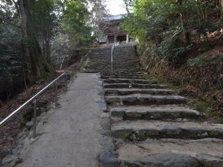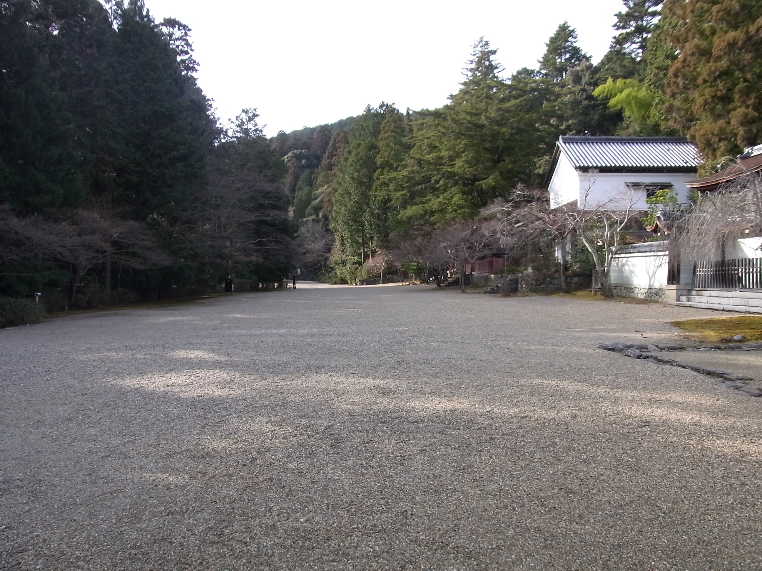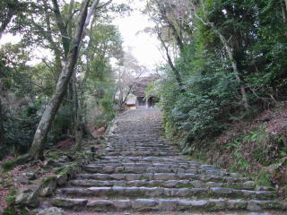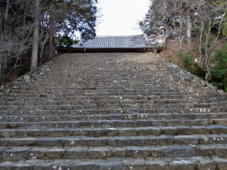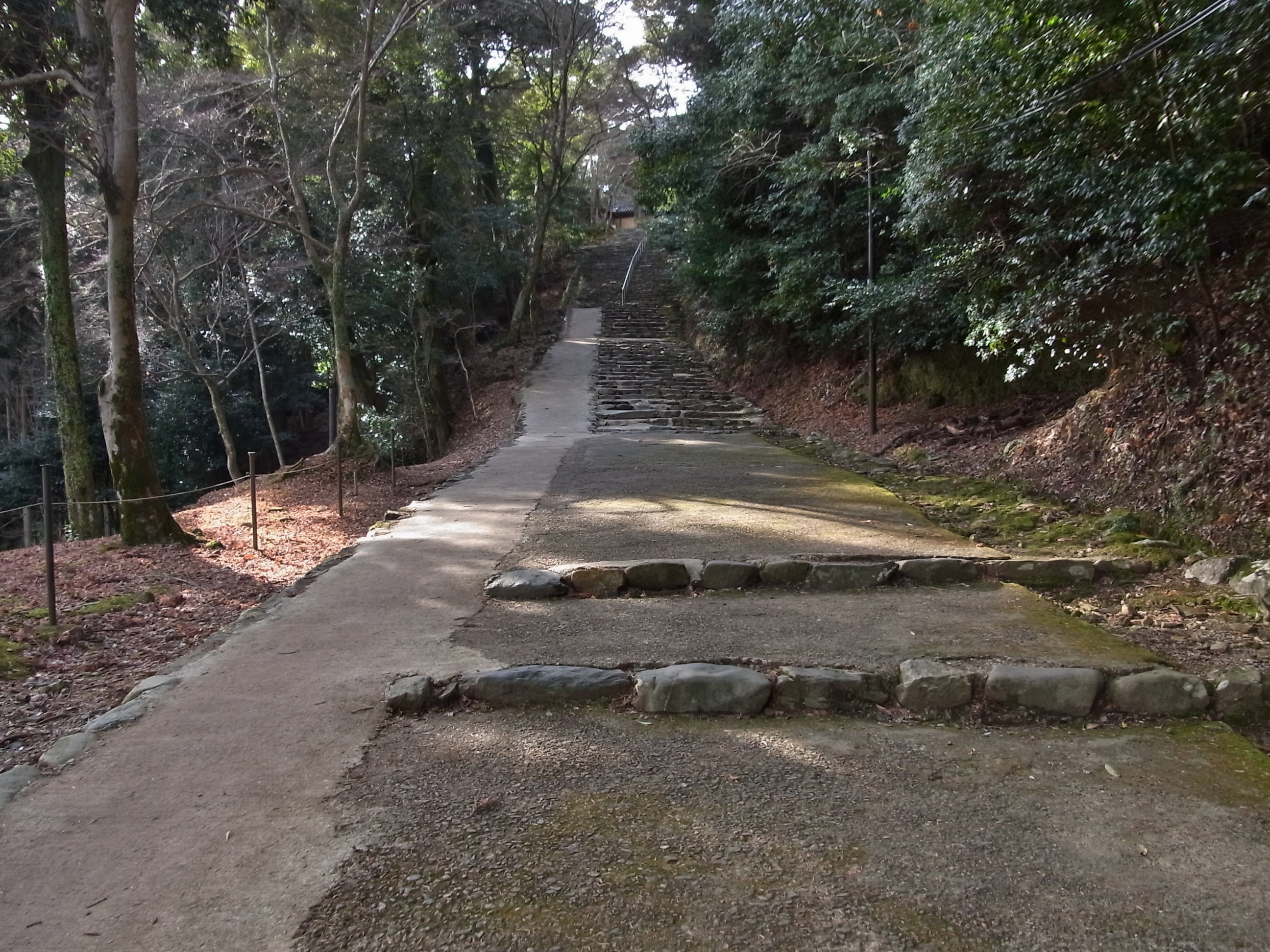 | 去年の初詣に訪れた時、石段の真ん中に金属製の手摺が設置されていて驚いたのですが、 今年は更に端にコンクリートのスロープが出来ていました。 美しいものを見たくて人がたくさん来るようになって、その人たちのためと思ったものが、結果的 に美しい景観を無くしてしまう現状を見て、神護寺への愛着が強い分残念な気持ちになりました。 そう思った自分が、時代錯誤の無慈悲な人間なのかなと云う思いが少ししていますが・・・ |