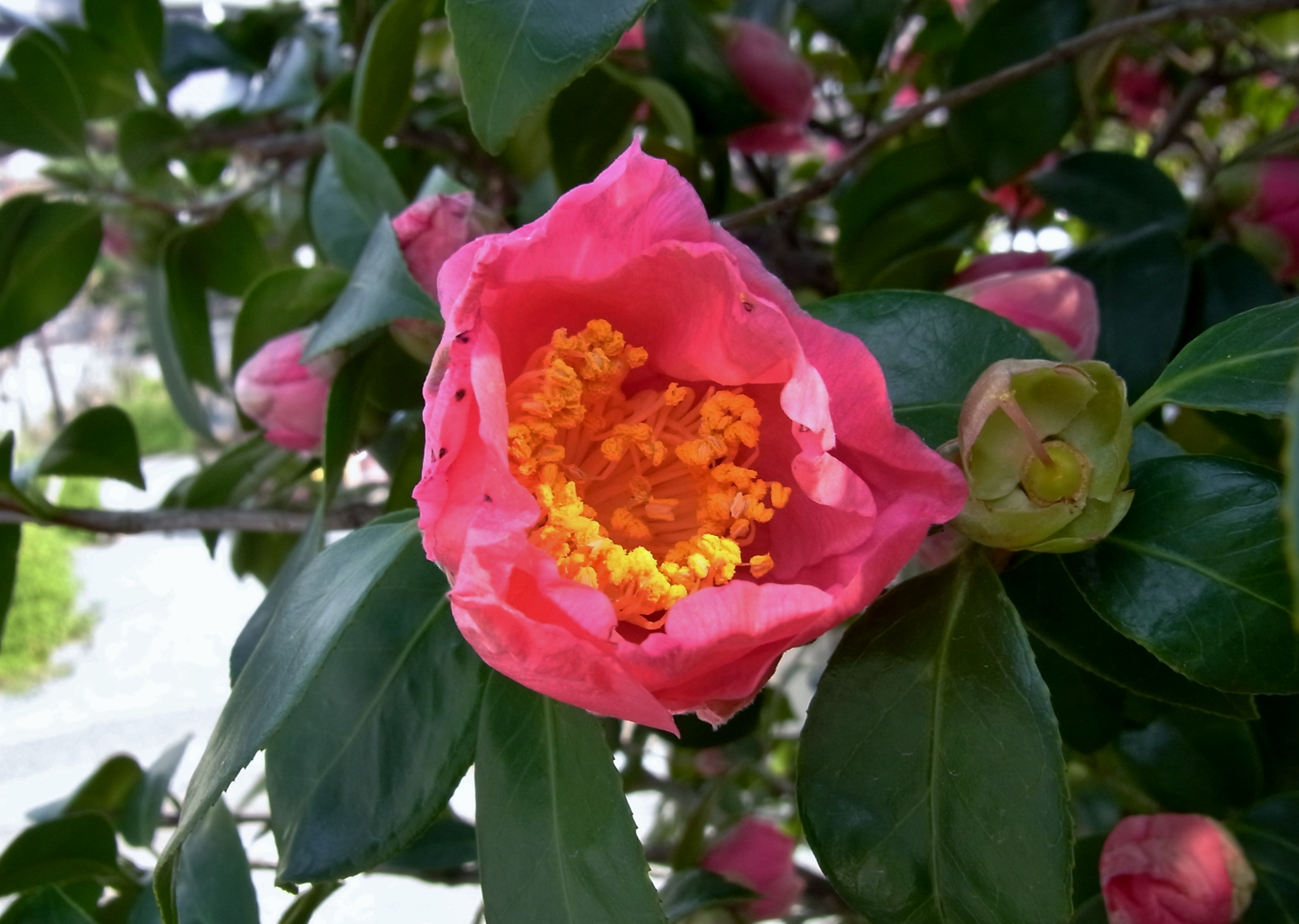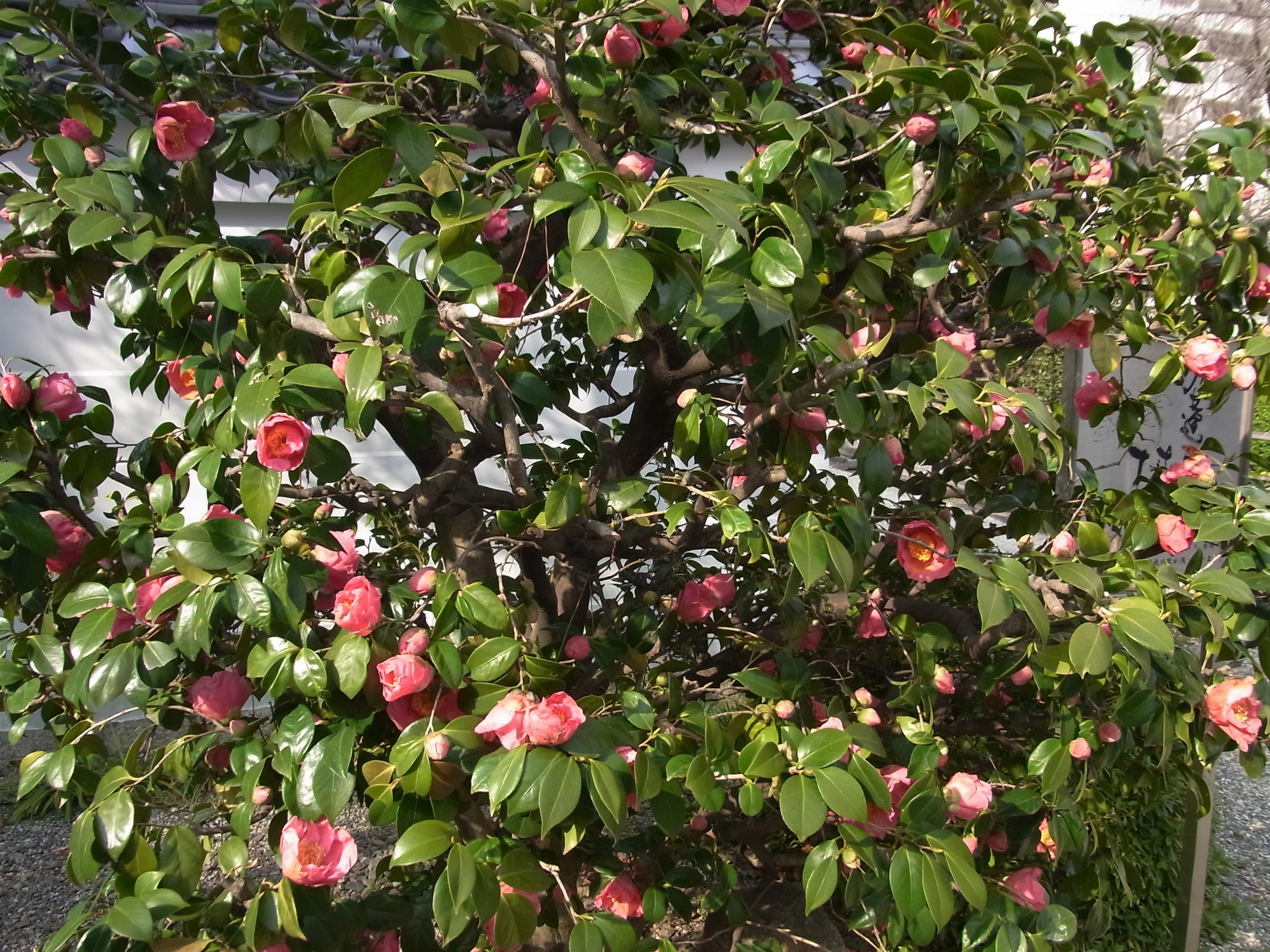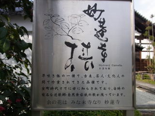 | 室町時代の連歌師 宗祇が「余の花は みな末寺なり 妙蓮寺」と歌った有名な妙蓮寺椿は早咲 きで丁度満開でした。10月〜4月まで咲く御会式桜(おえしきさくら)も見られました。 地図 |