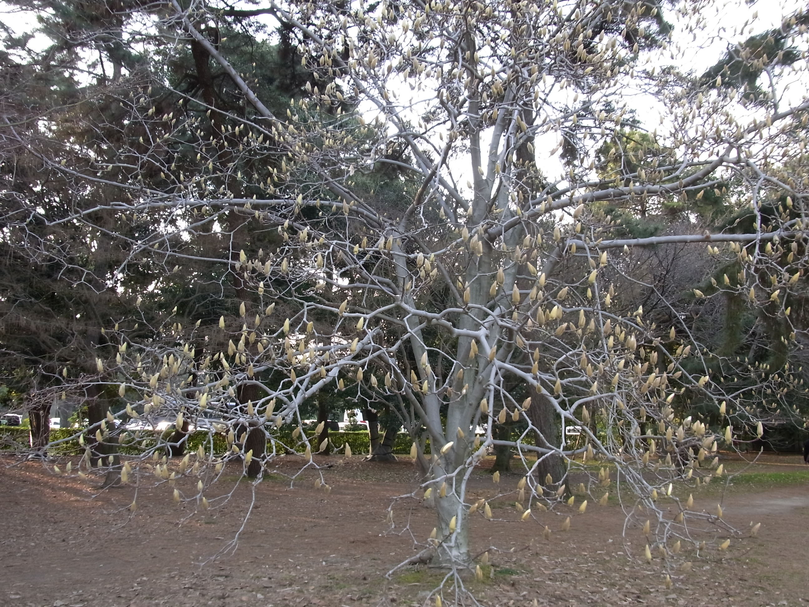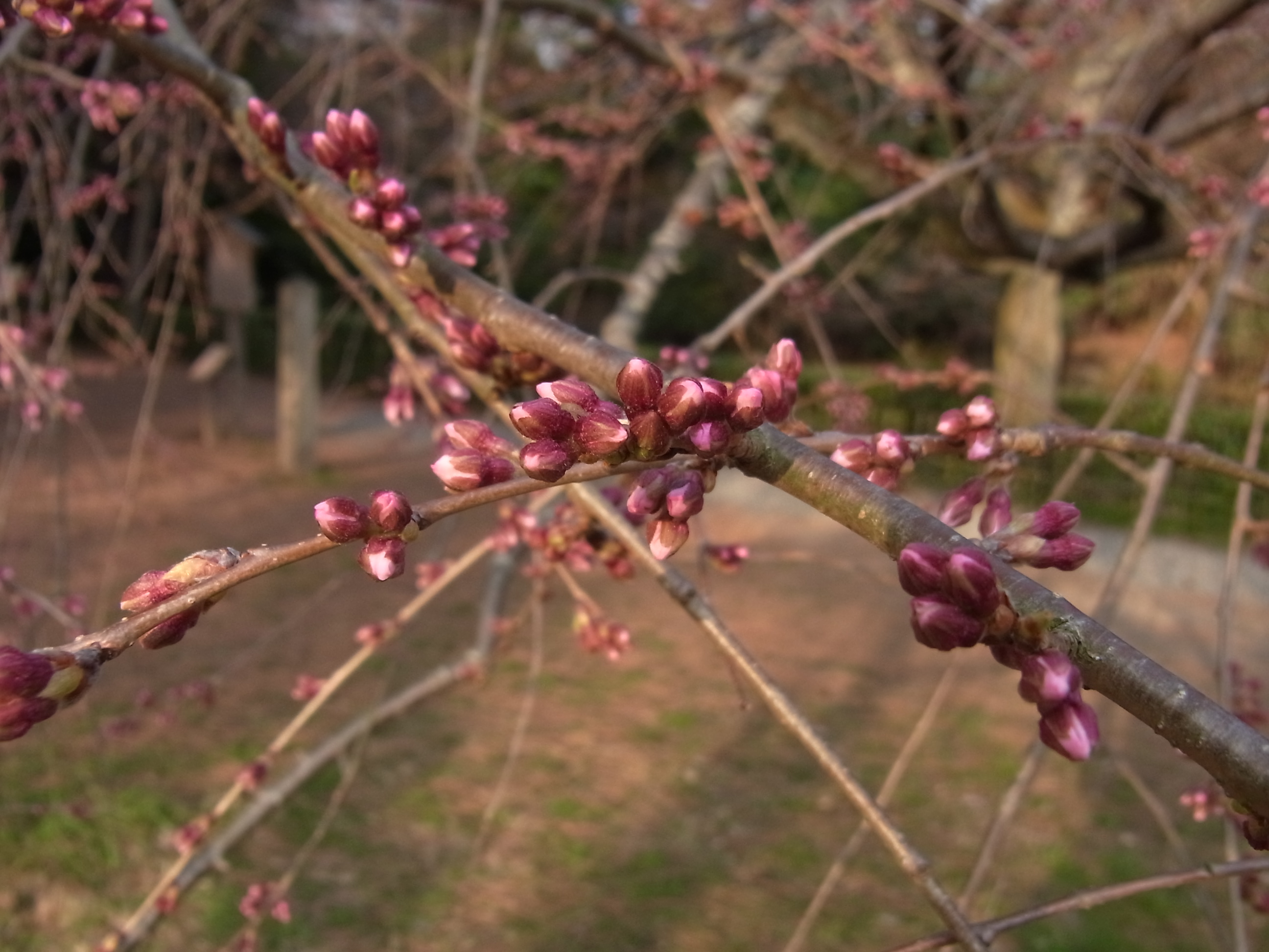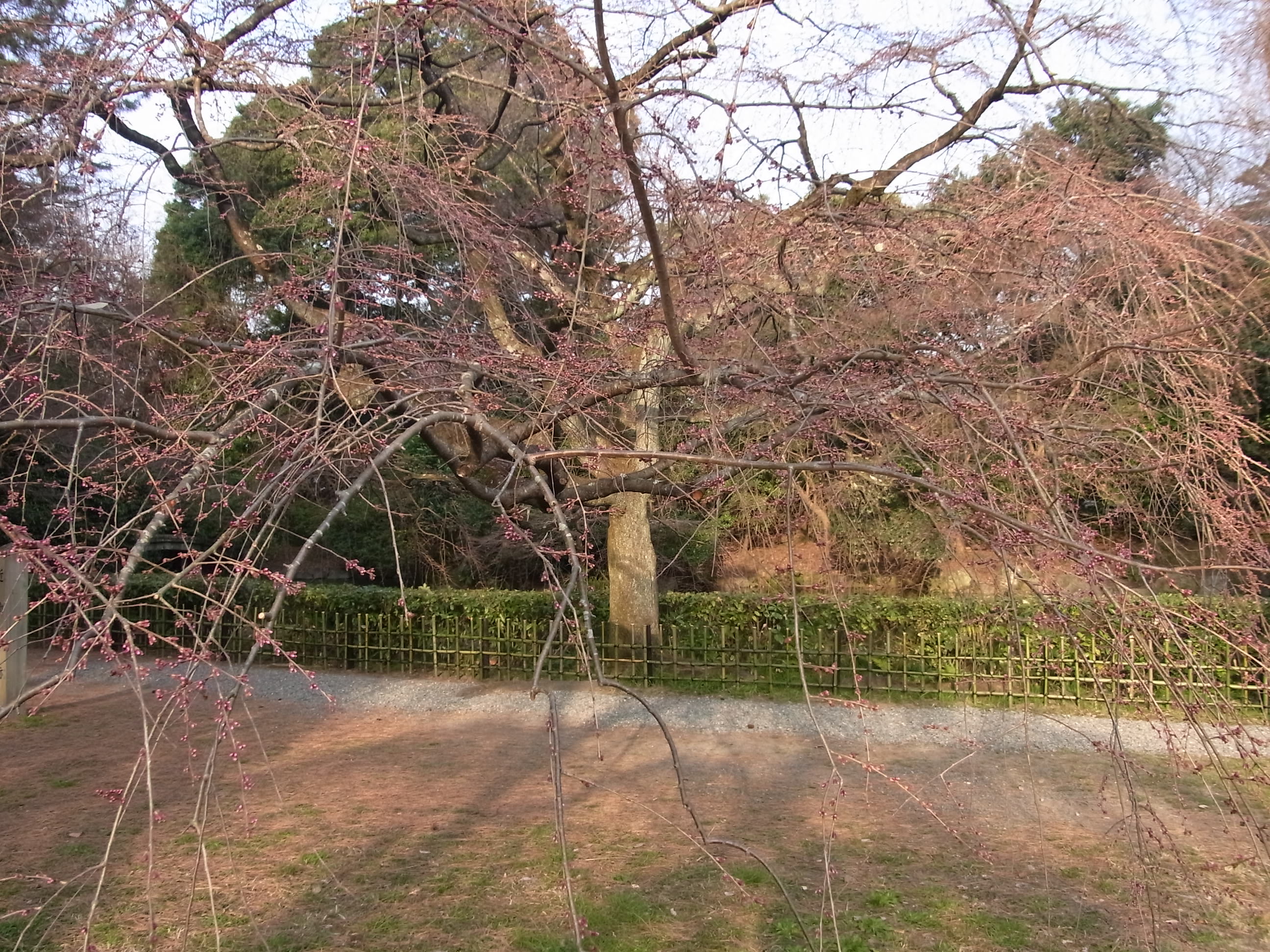 | 近衛邸跡の糸桜は開花寸前で蕾はパンパンです。 |