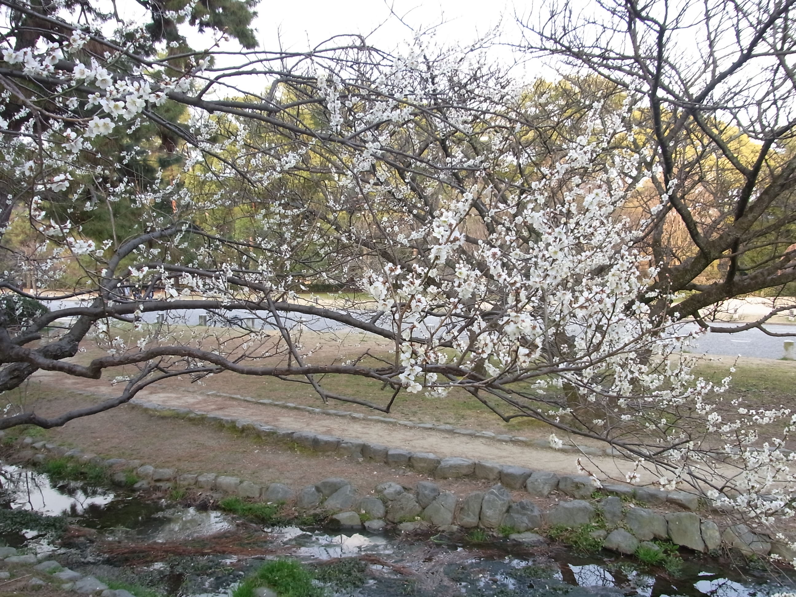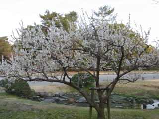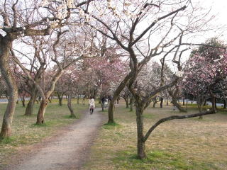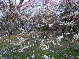 | 御所の梅林は満開で芳香を漂わせていました。 |