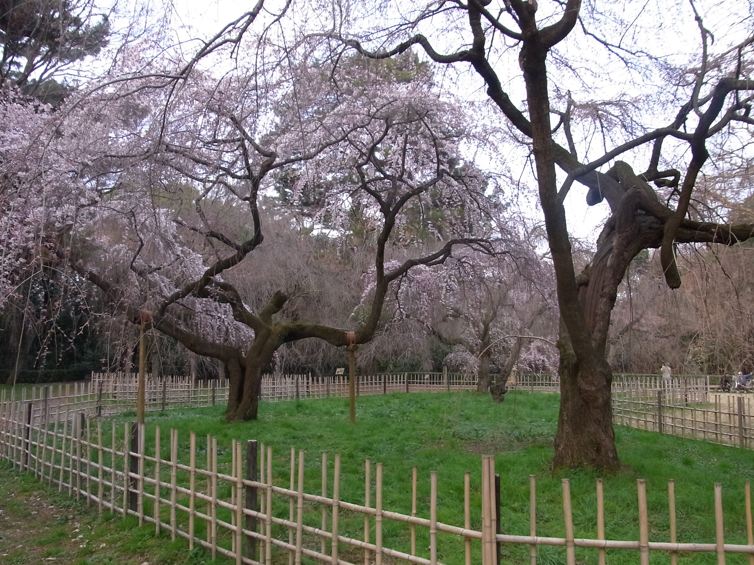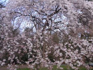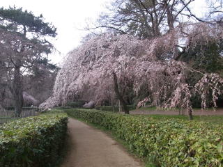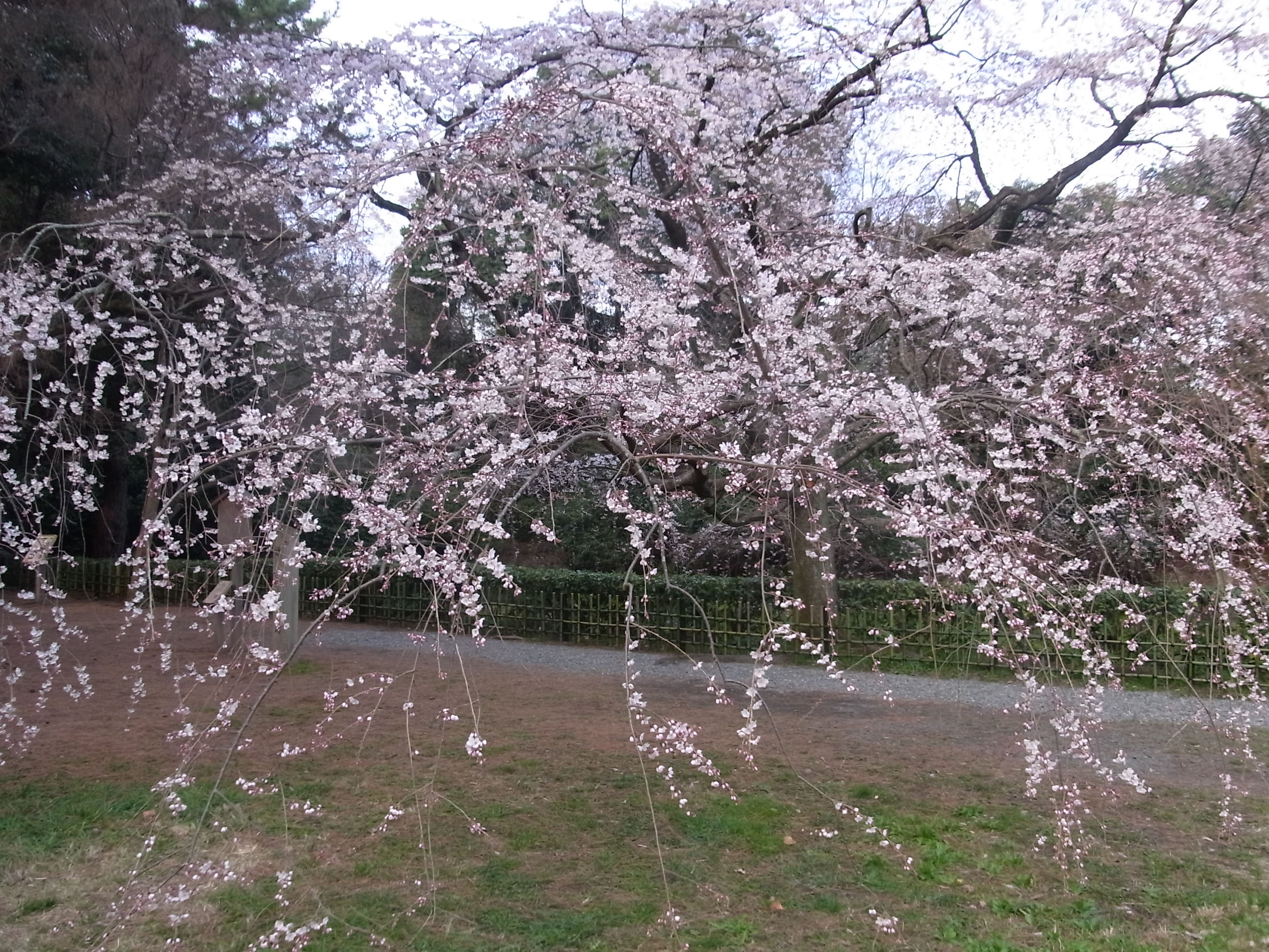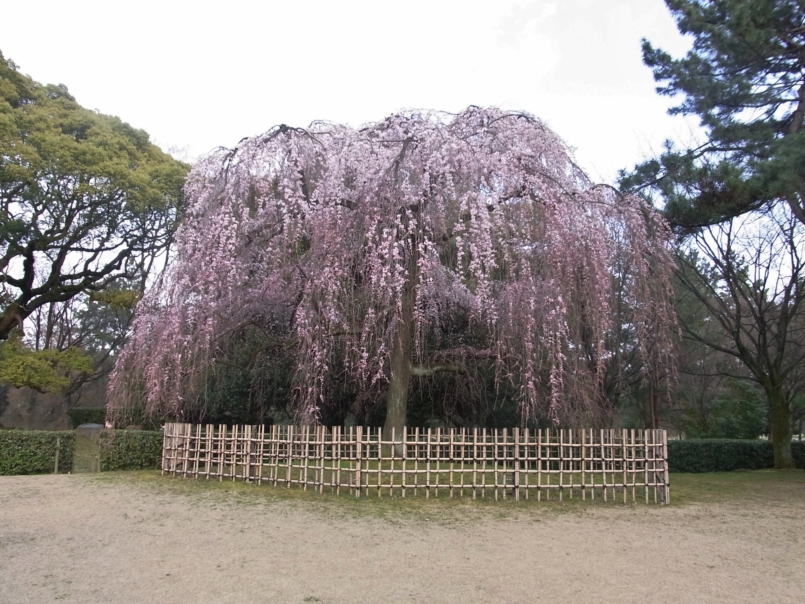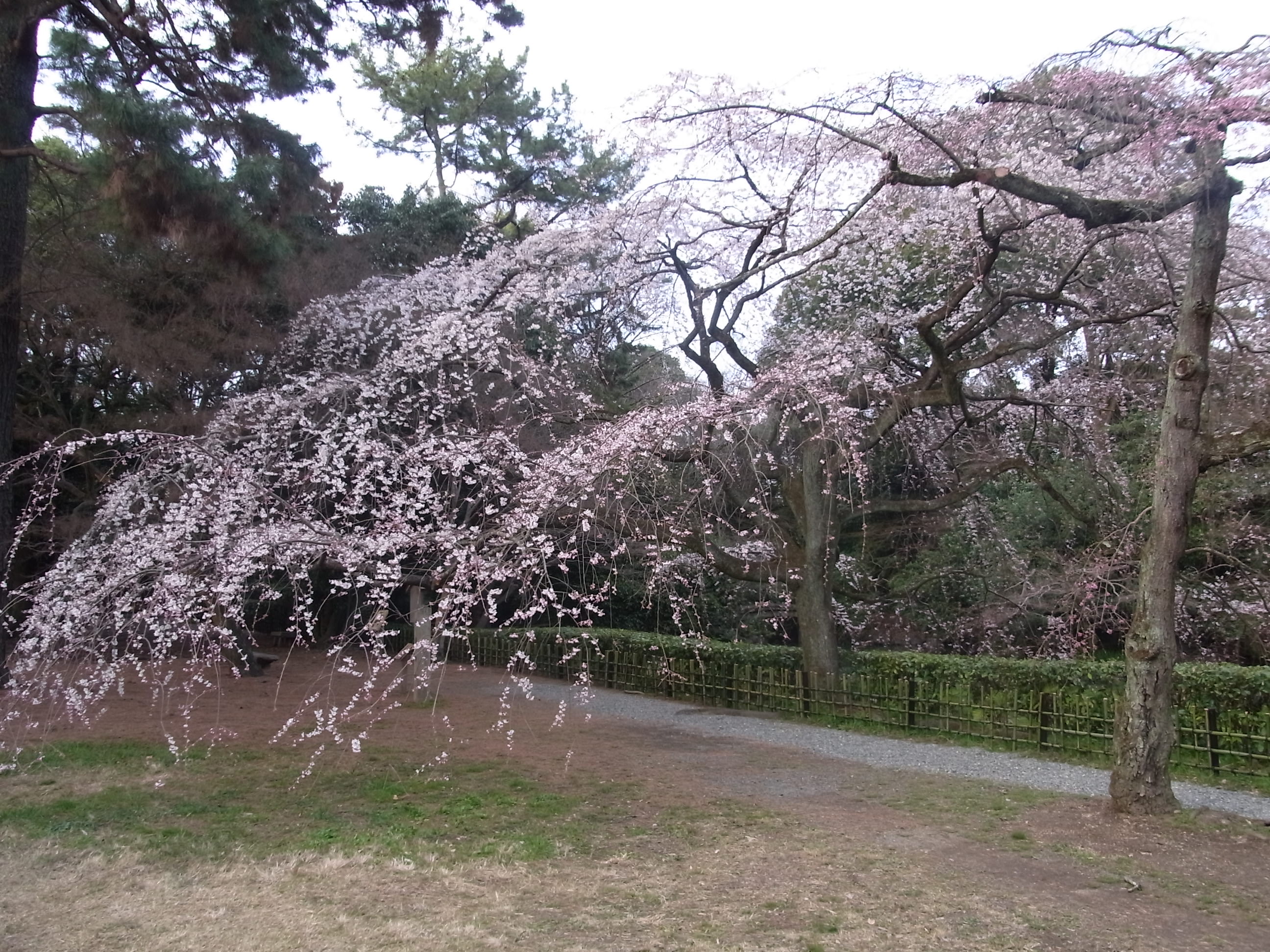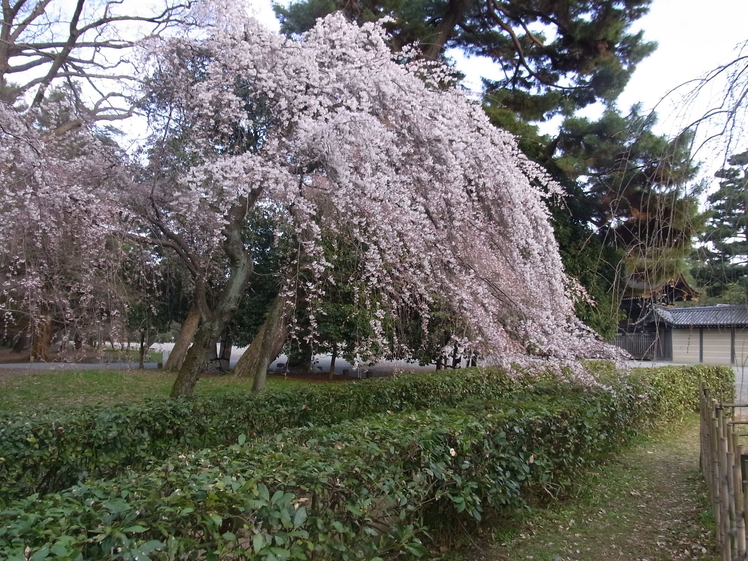 御所は今、開花が遅かった梅と桃、桜が一度に見ることが出来て華やかです。
