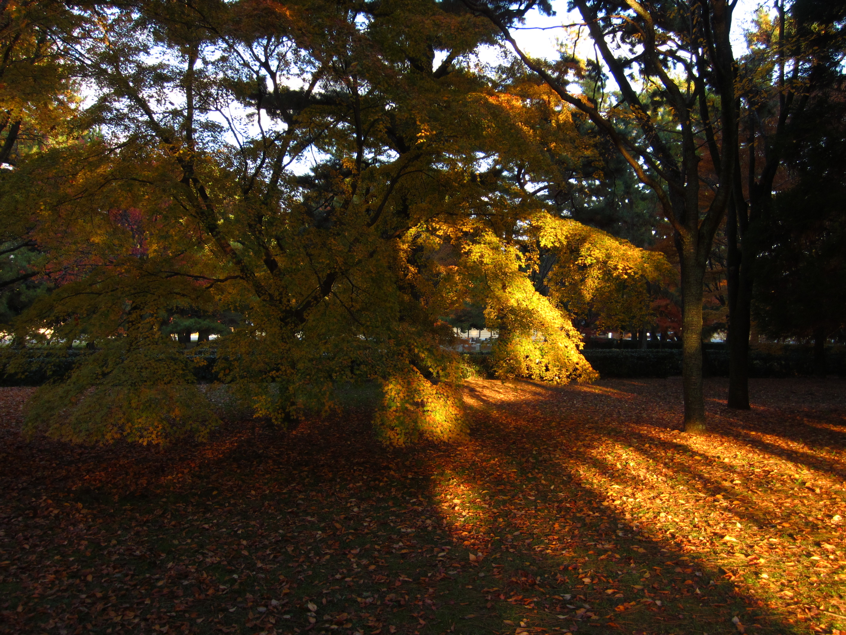 午後3時を過ぎてから出掛けたので、人も少なく晩秋の雰囲気を楽しめました。白人のカップルが