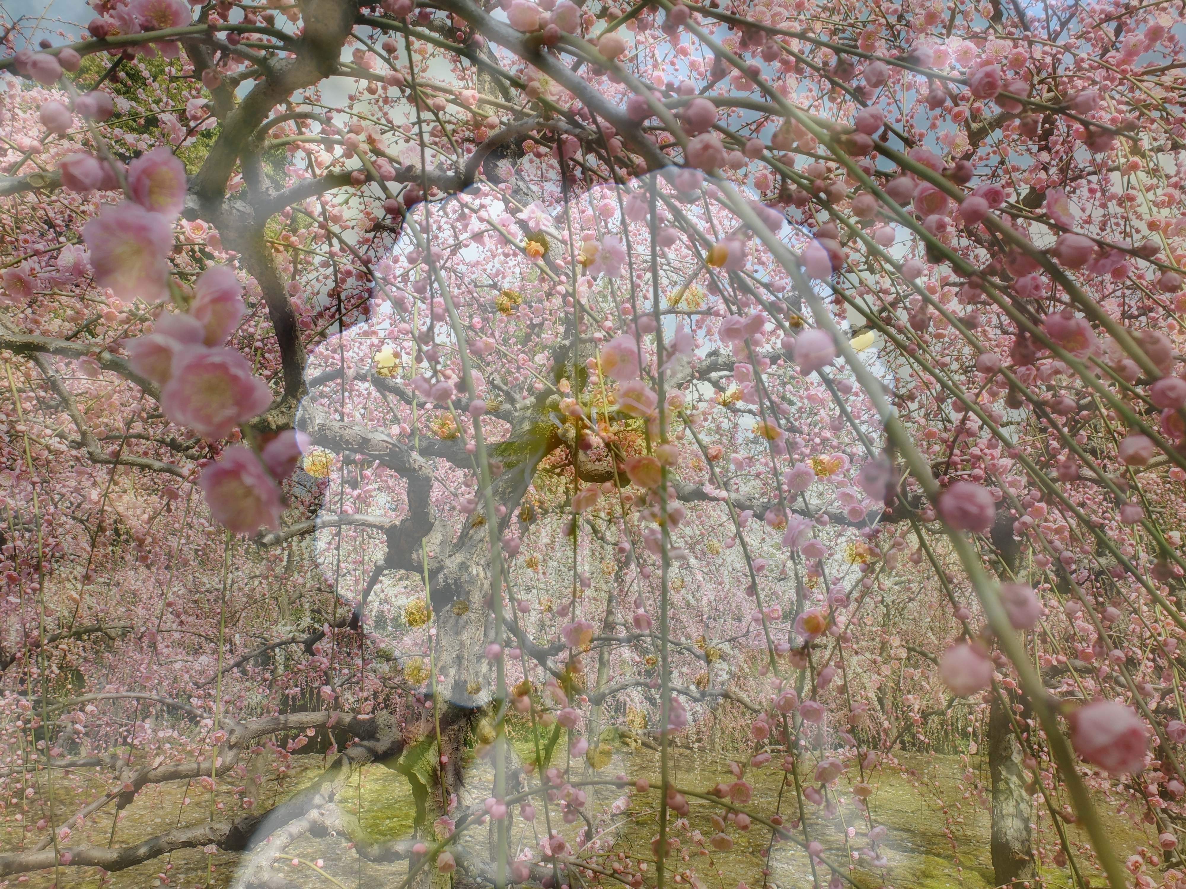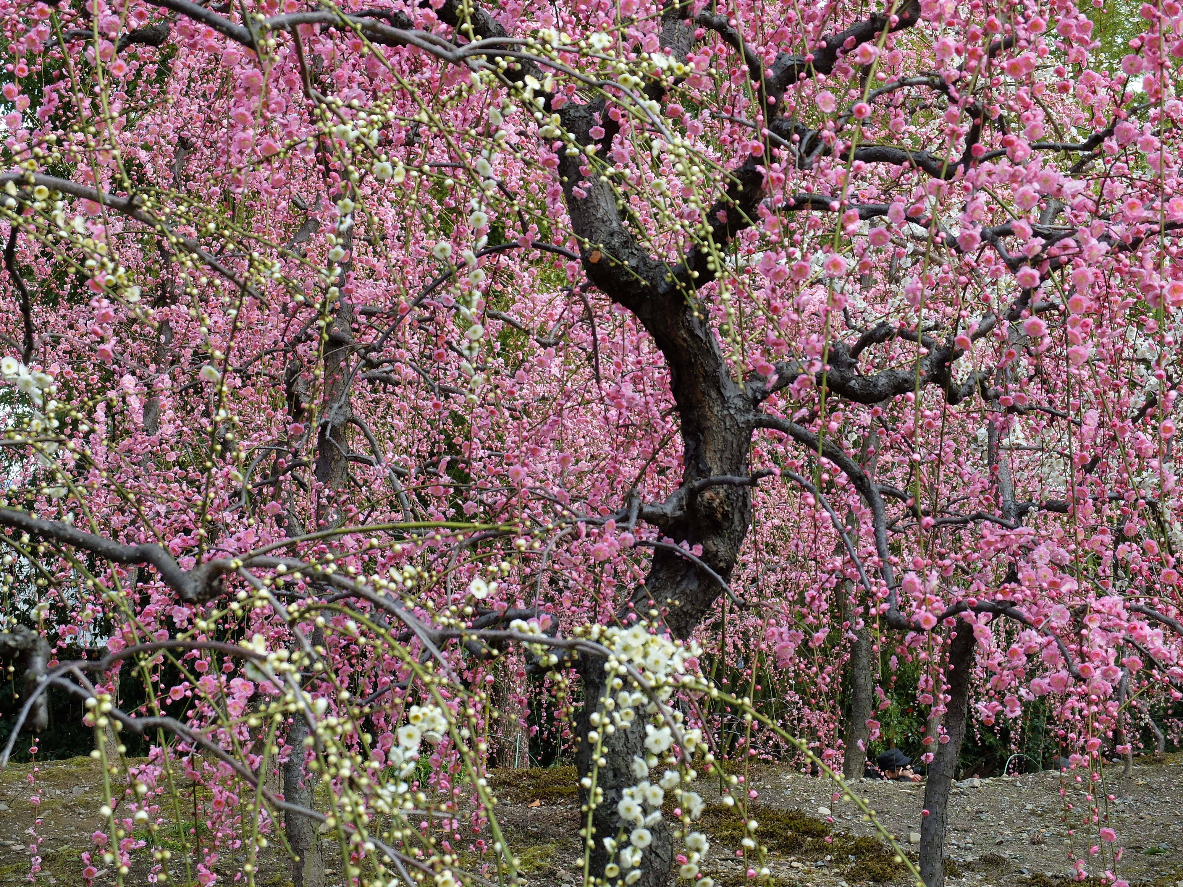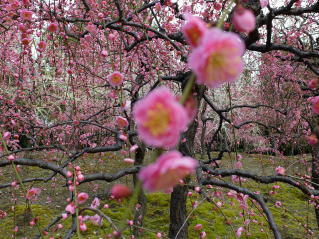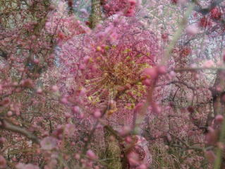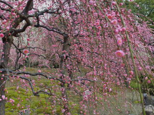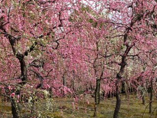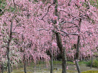 | 3年振りに城南宮の枝垂れ梅を見に行ってきました。千中からほぼ真南の方角にあるので、 自転車で千本通りを下るだけで着きました。 (写真をクリックすれば拡大されます) |