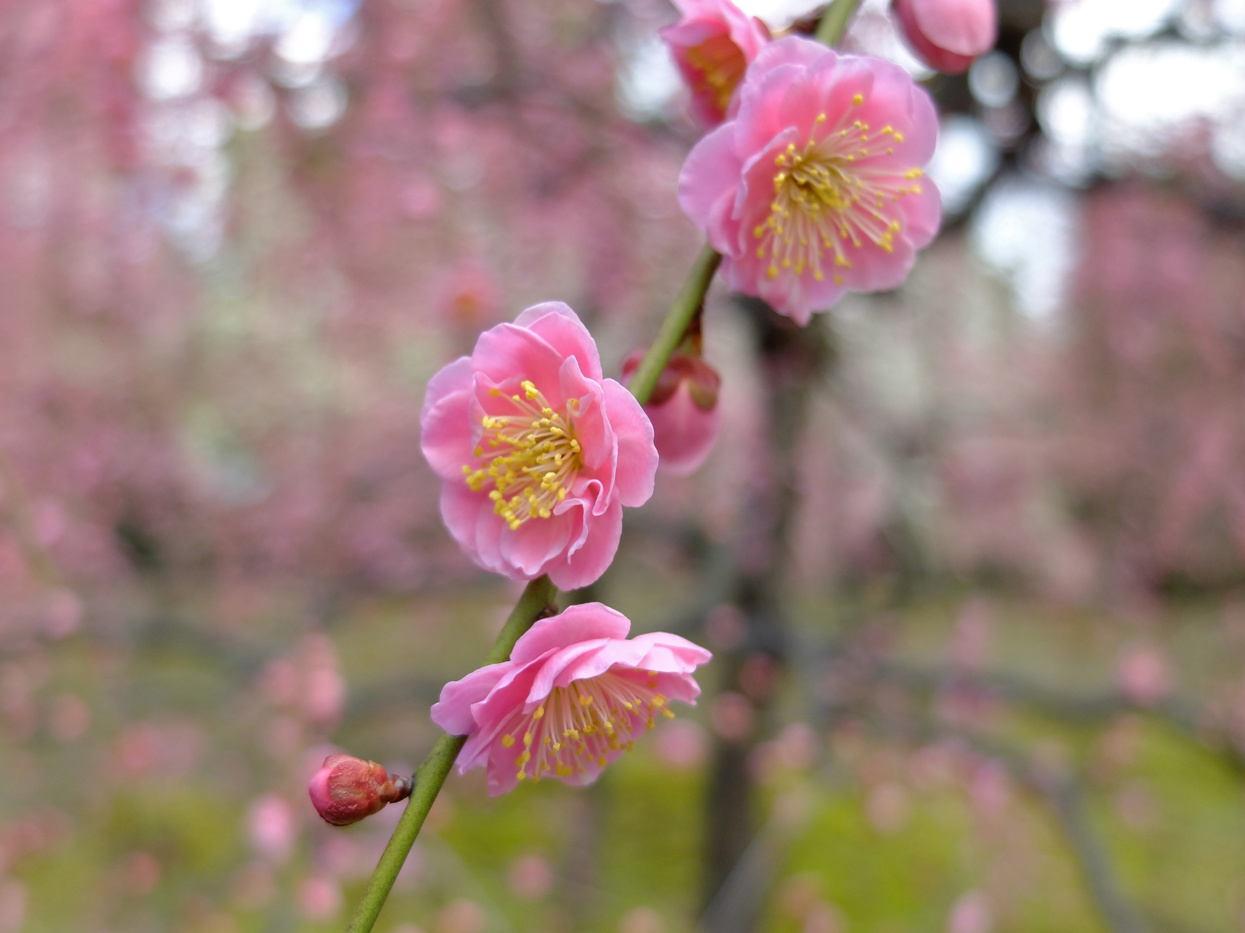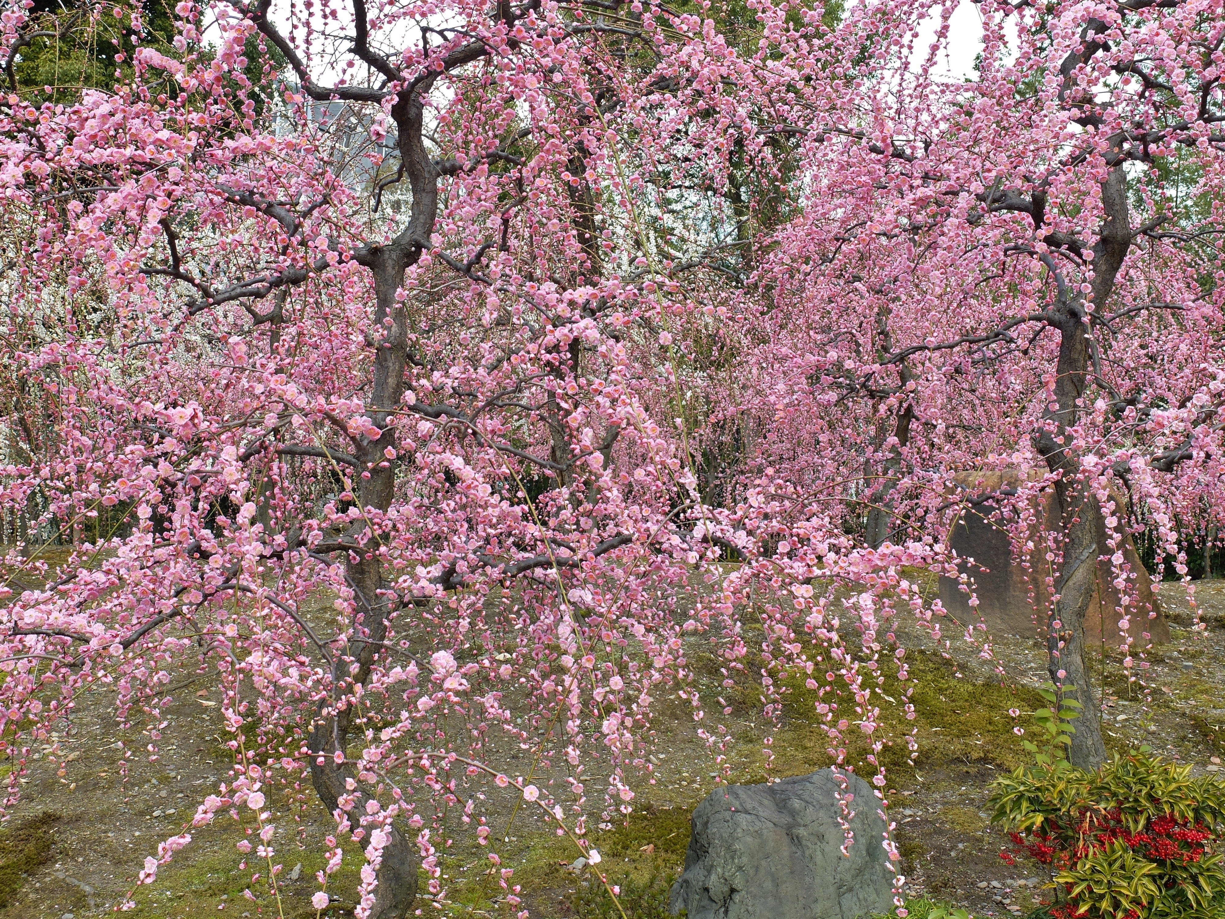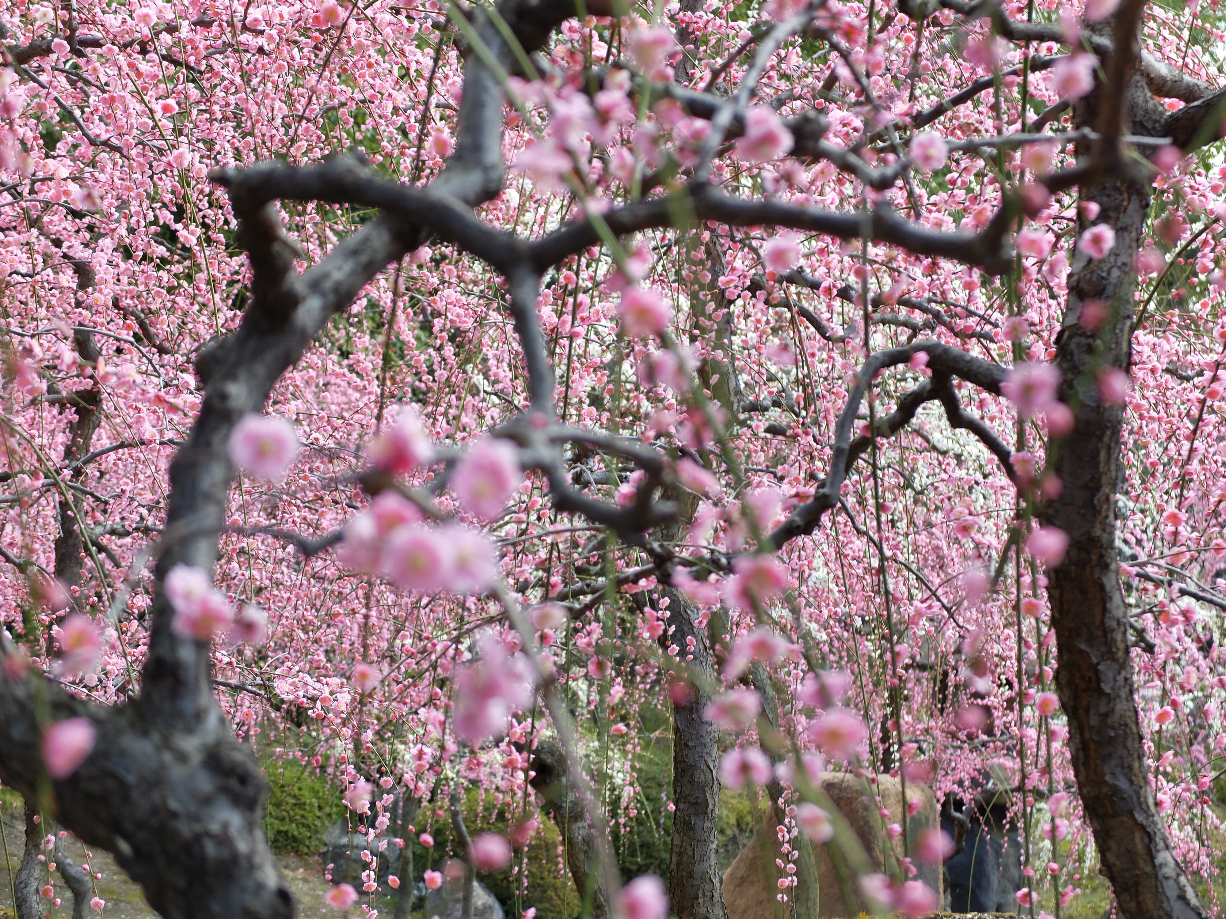 | 3年振りに城南宮の枝垂れ梅を見に行ってきました。千中からほぼ真南の方角にあるので、 自転車で千本通りを下るだけで着きました。 (写真をクリックすれば拡大されます) |