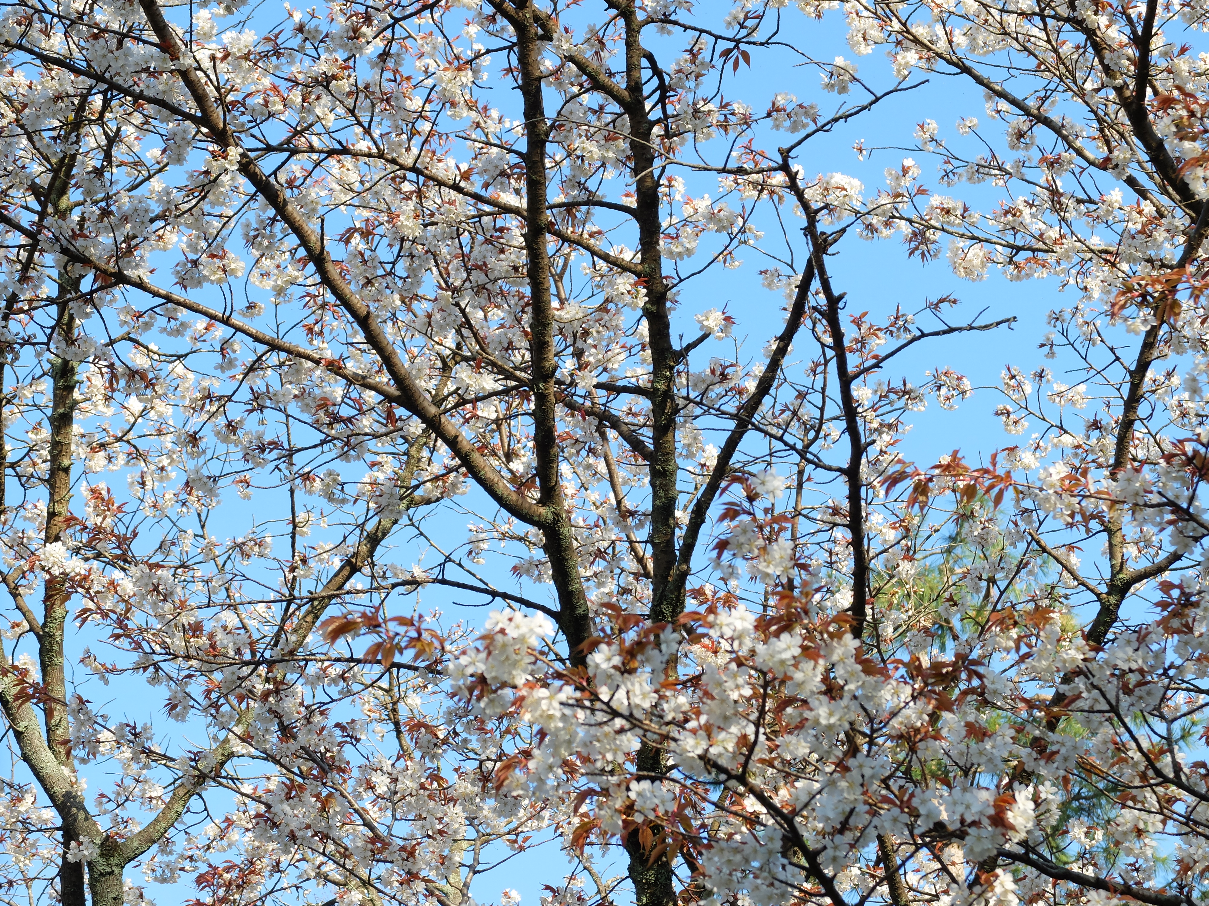 | この桜は御所で一番早く咲く山桜です。これから大分経ってから、私の好きな 御所の沢山の山桜が咲き出します。 |