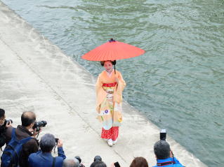 | 十石船から舞妓さんが降りてきて、撮影会なんでしょうか? |