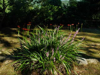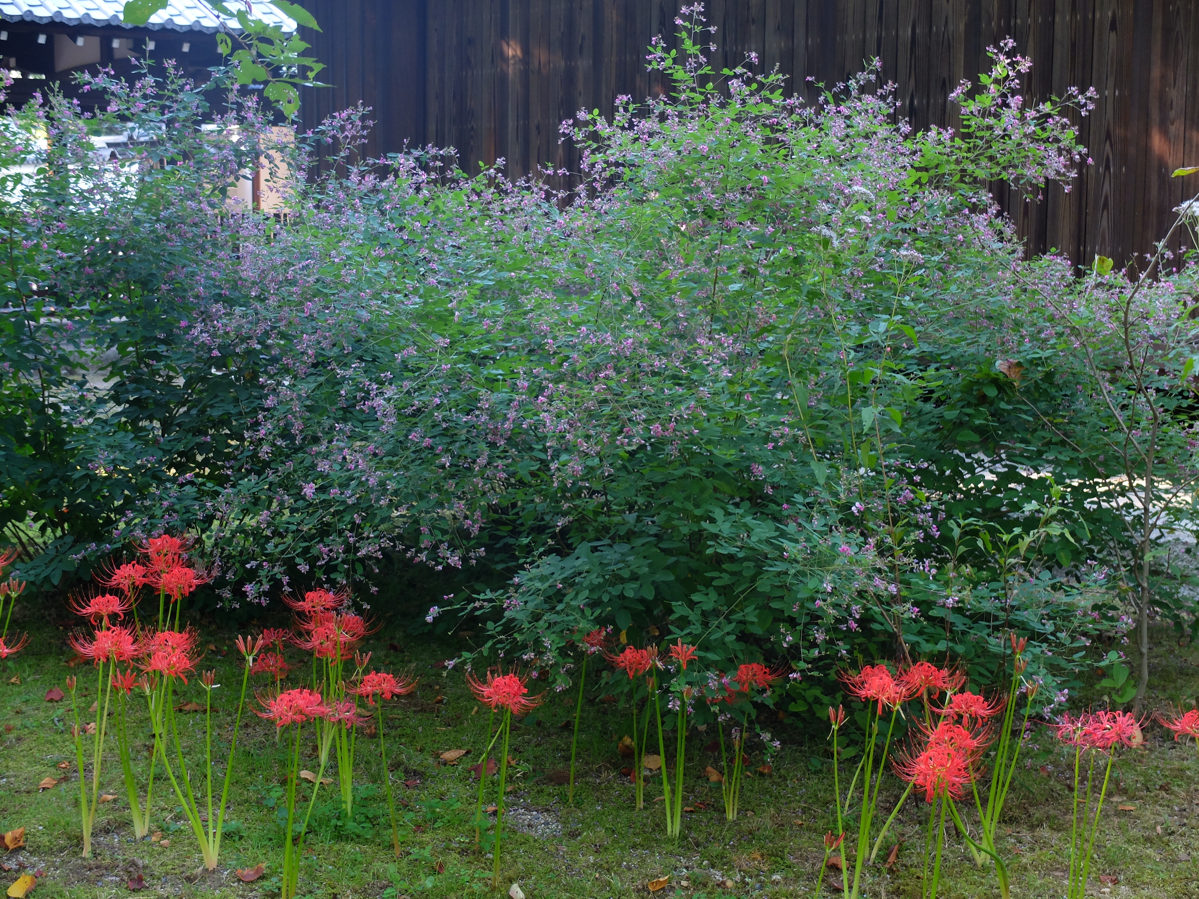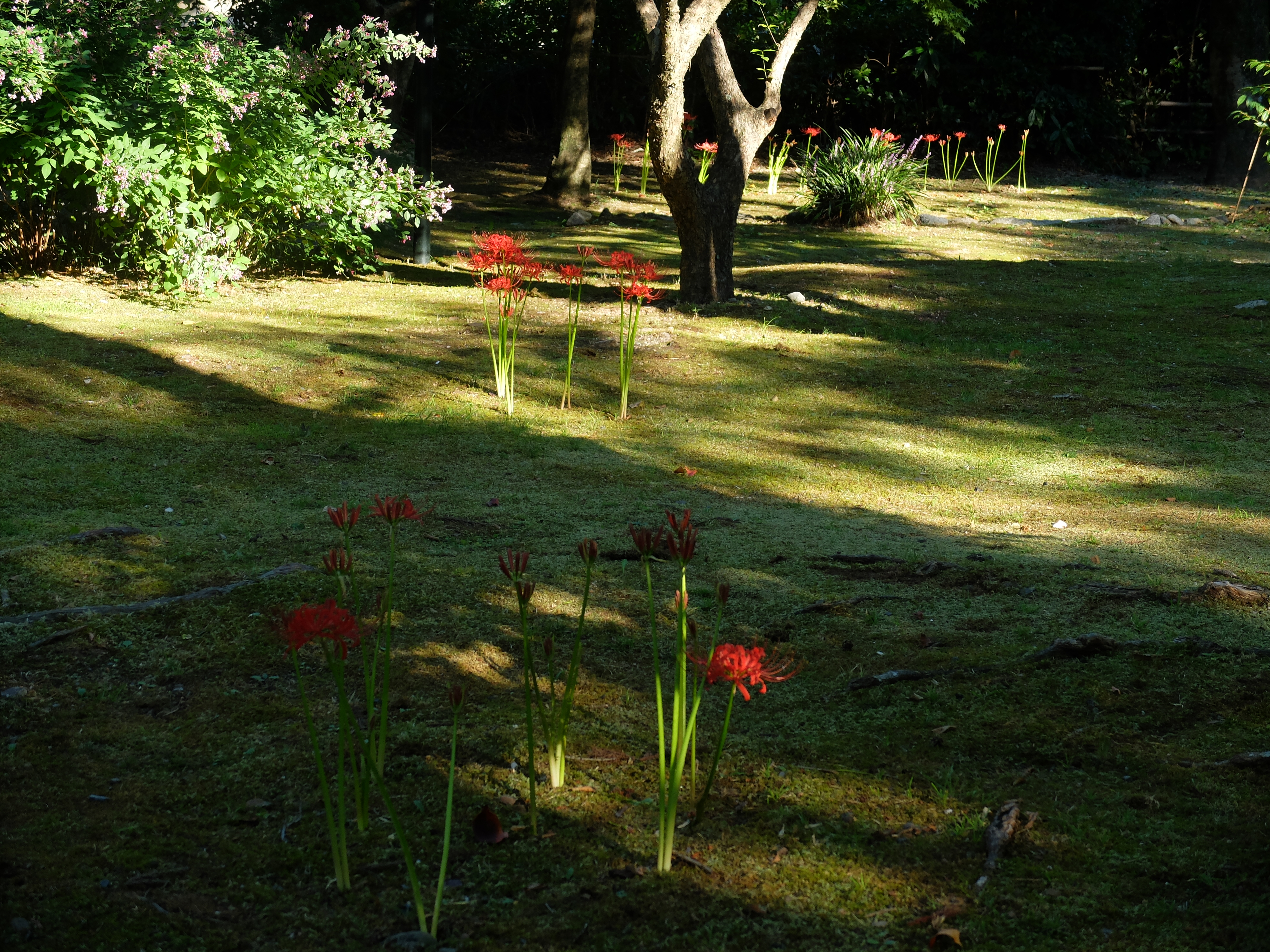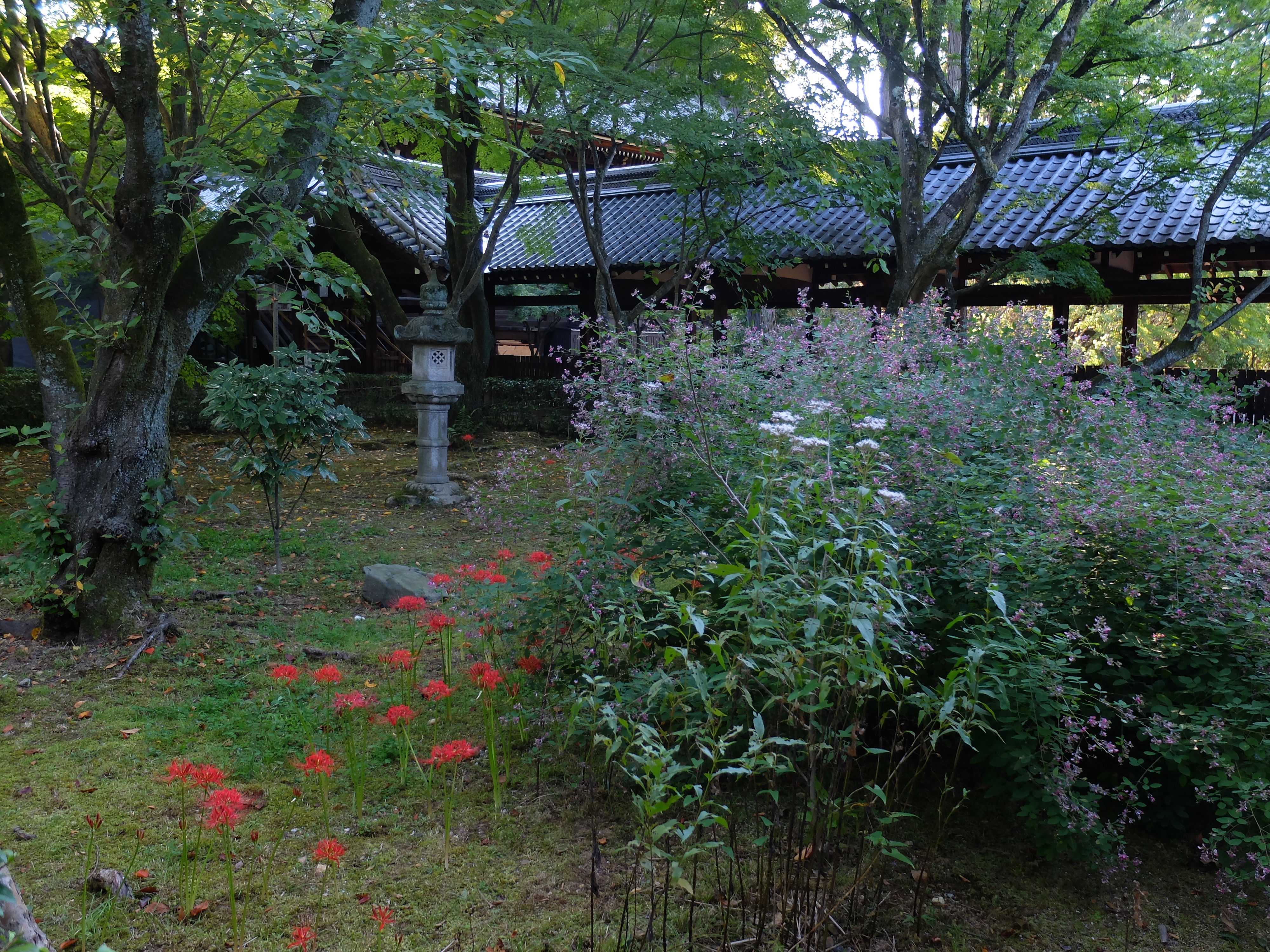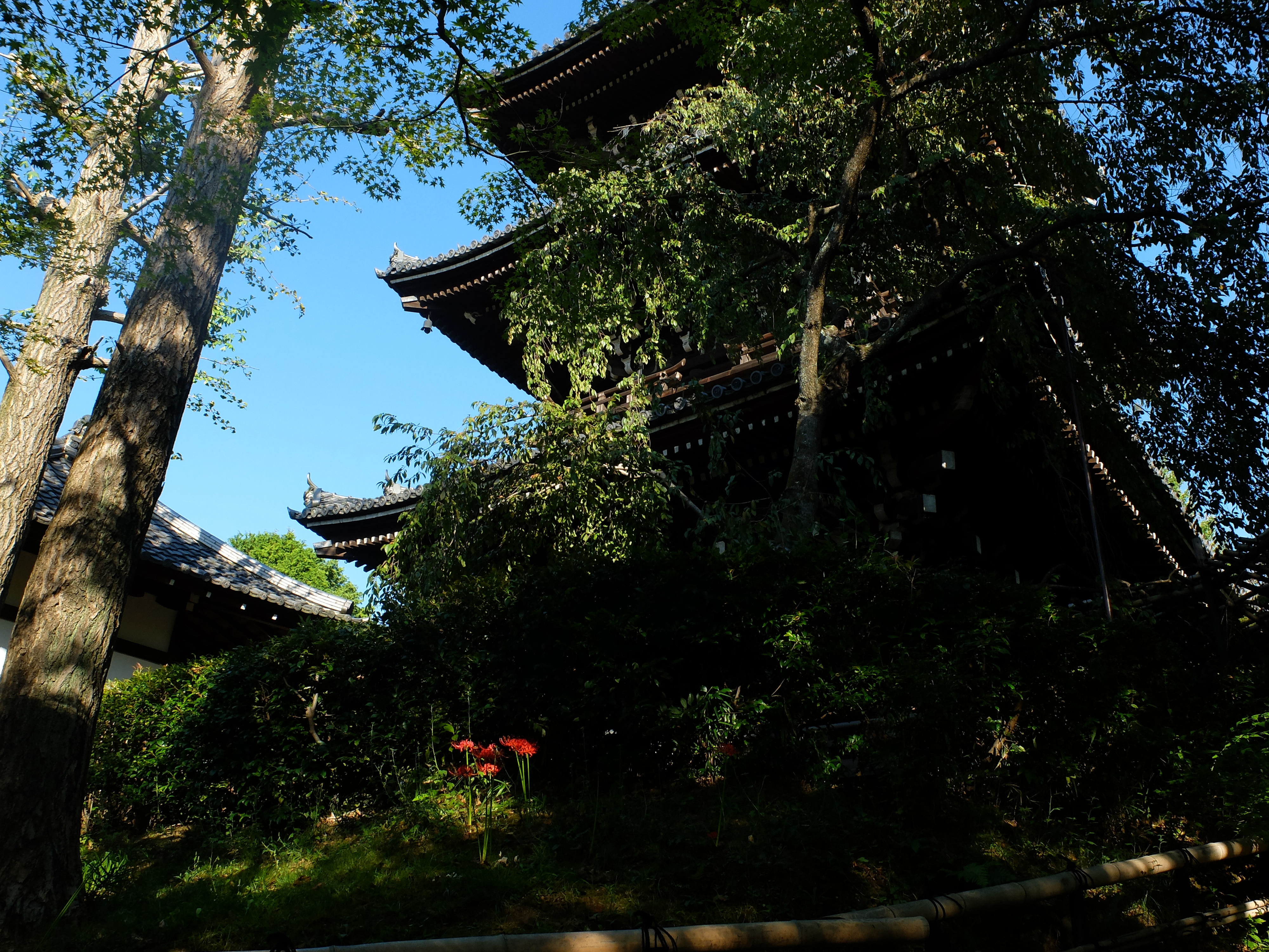 | 真如堂の彼岸花は、未だこれからのようです。三重塔の下は、数本しか咲いていませんでした。 |
