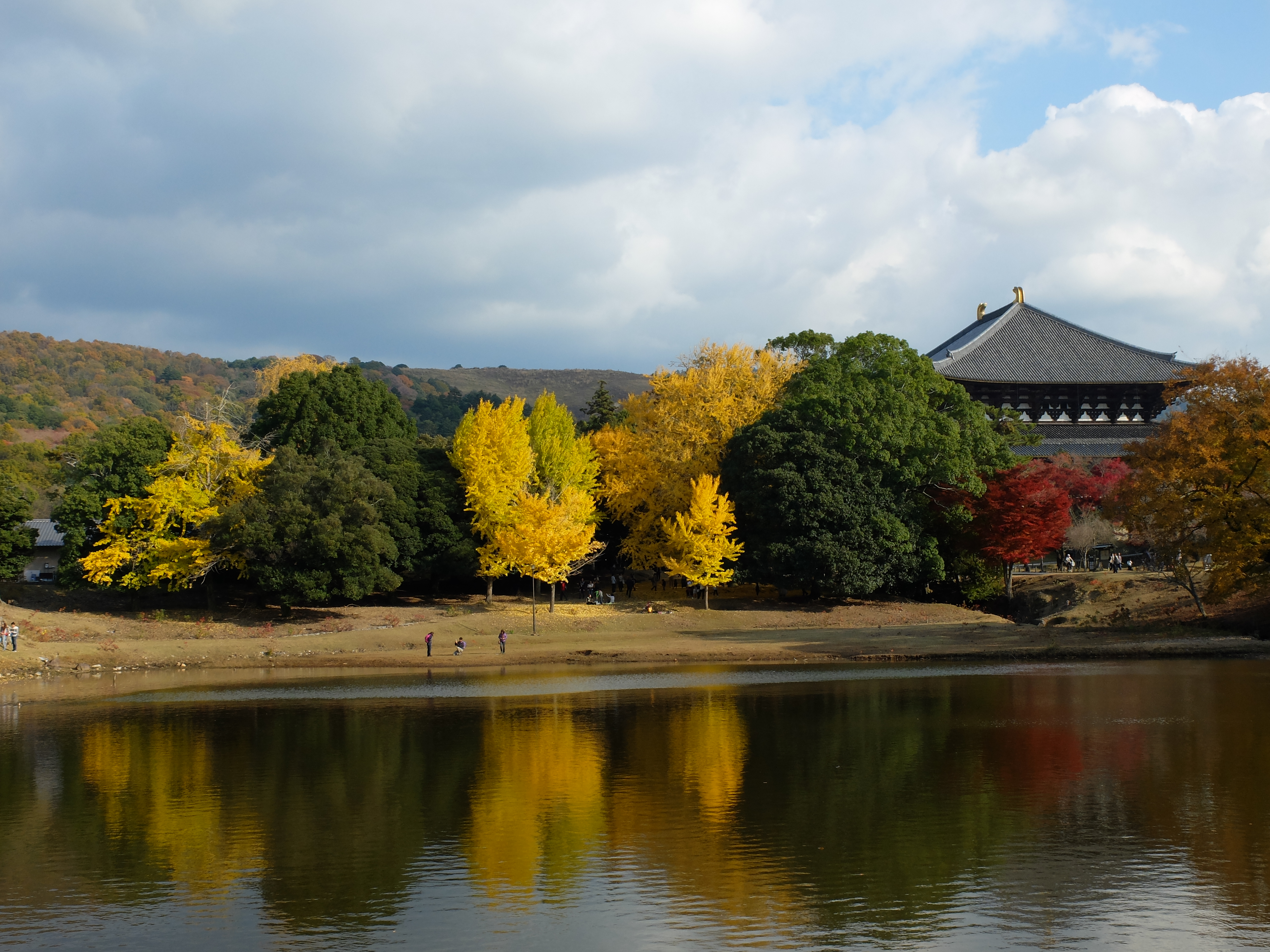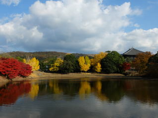 ![]() 東大寺大仏殿の後にある大仏池の畔には、 大銀杏の黄葉や真っ赤な紅葉が綺麗です。 特に対岸から、若草山や大仏殿を望んで 見る赤と黄のコントラストは見事でした。 地図 |