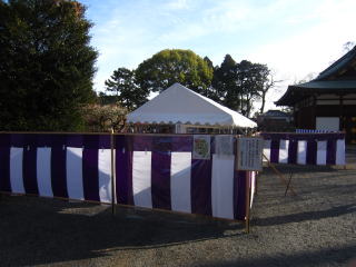 ![]() 幕を張られたあをりで移動させられた、 新しい絵馬の奉納所 |