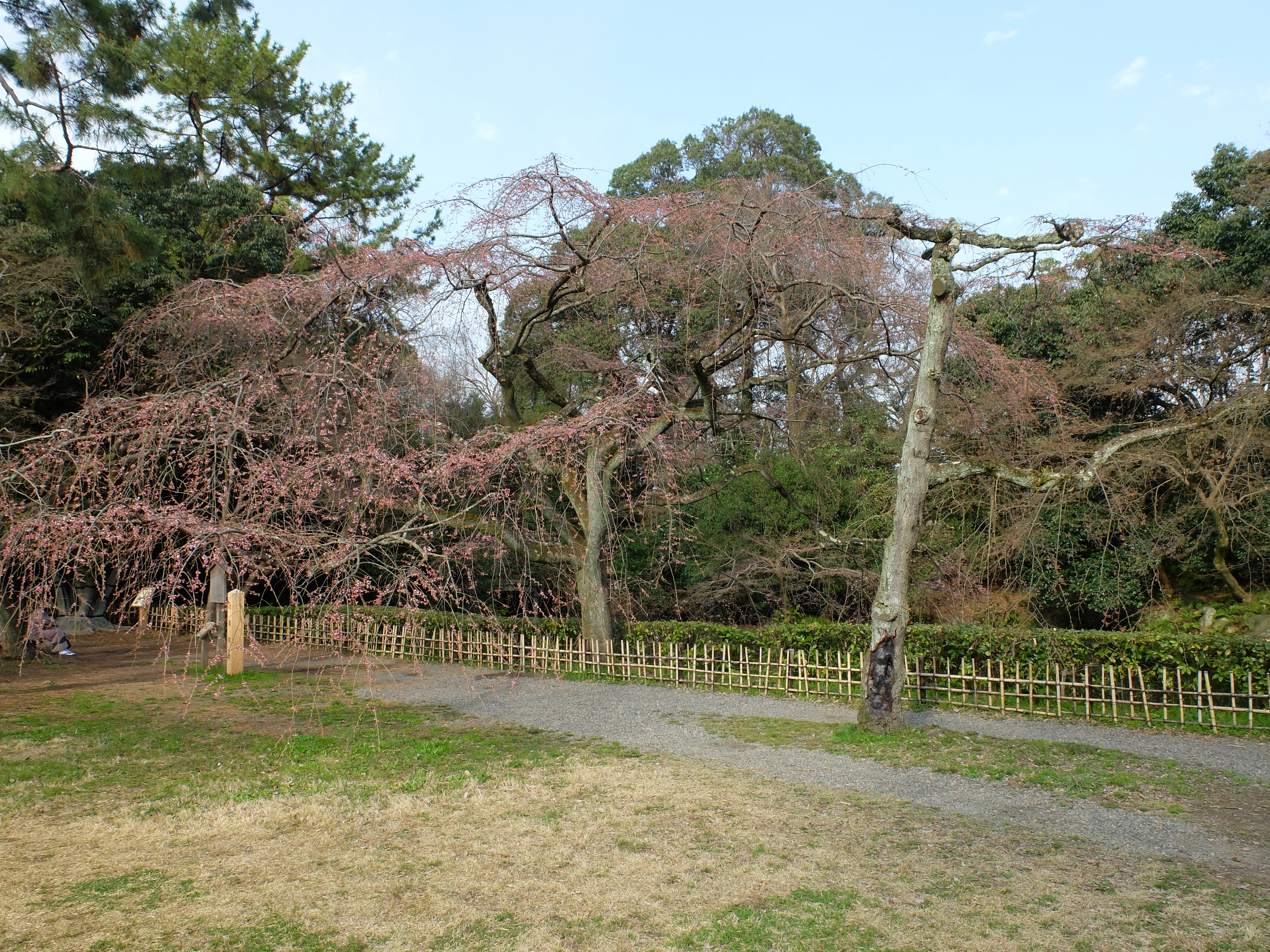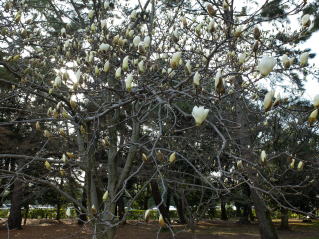| 近衛邸跡の二本の桜の満開の時は、それは見事でしたが、右側の木は三・四年前から樹勢が 衰えてきて、今年は辛うじて見られる状態です。十数年この木の盛衰を見続けてきて、寂しい 気持ちになりました。 関連記事 2004年4月23日 |