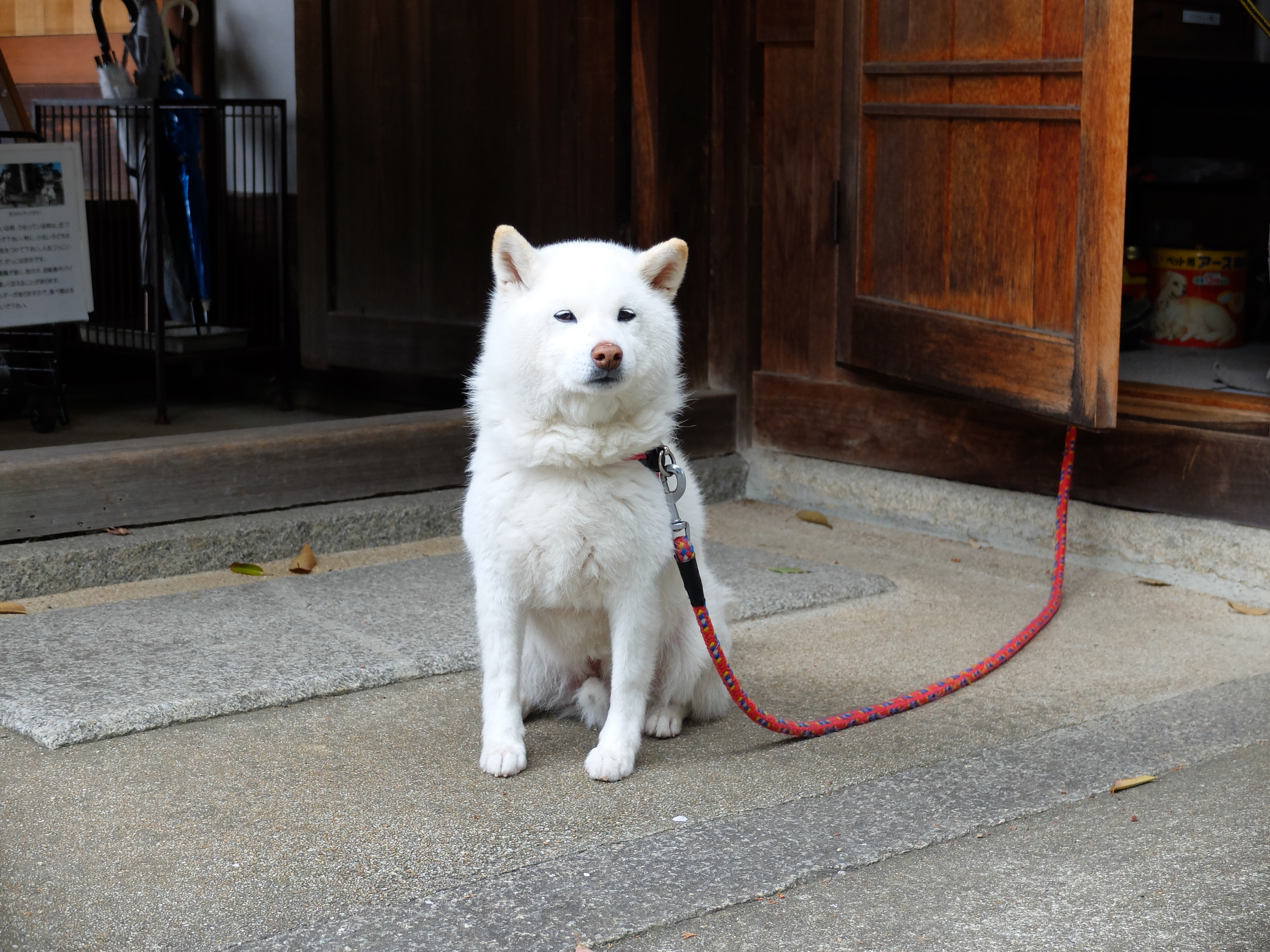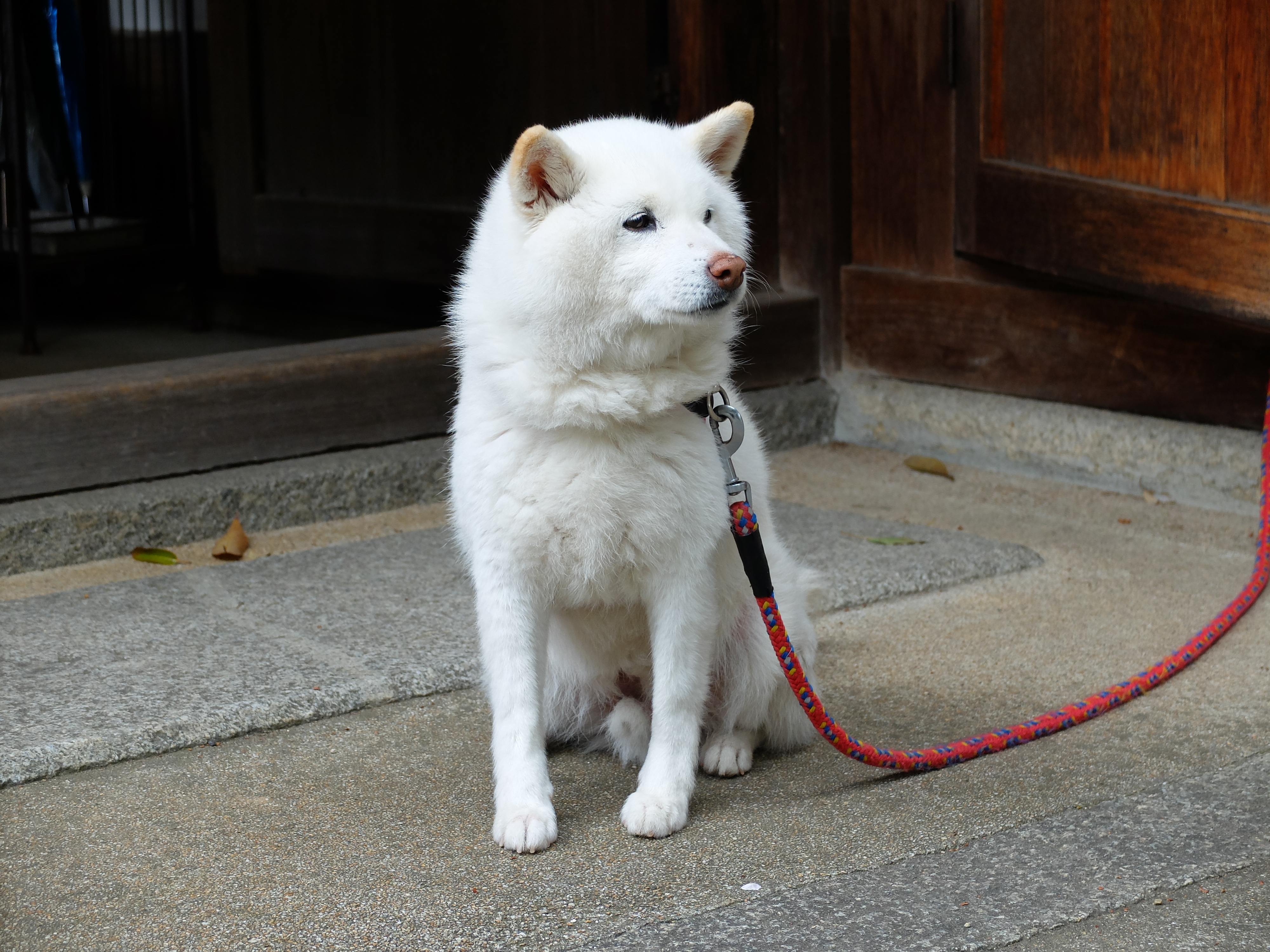 | 宗忠神社のこの日本犬は全然人懐っこくはないのですが、吠えもせず私を無視して座ってました。 |