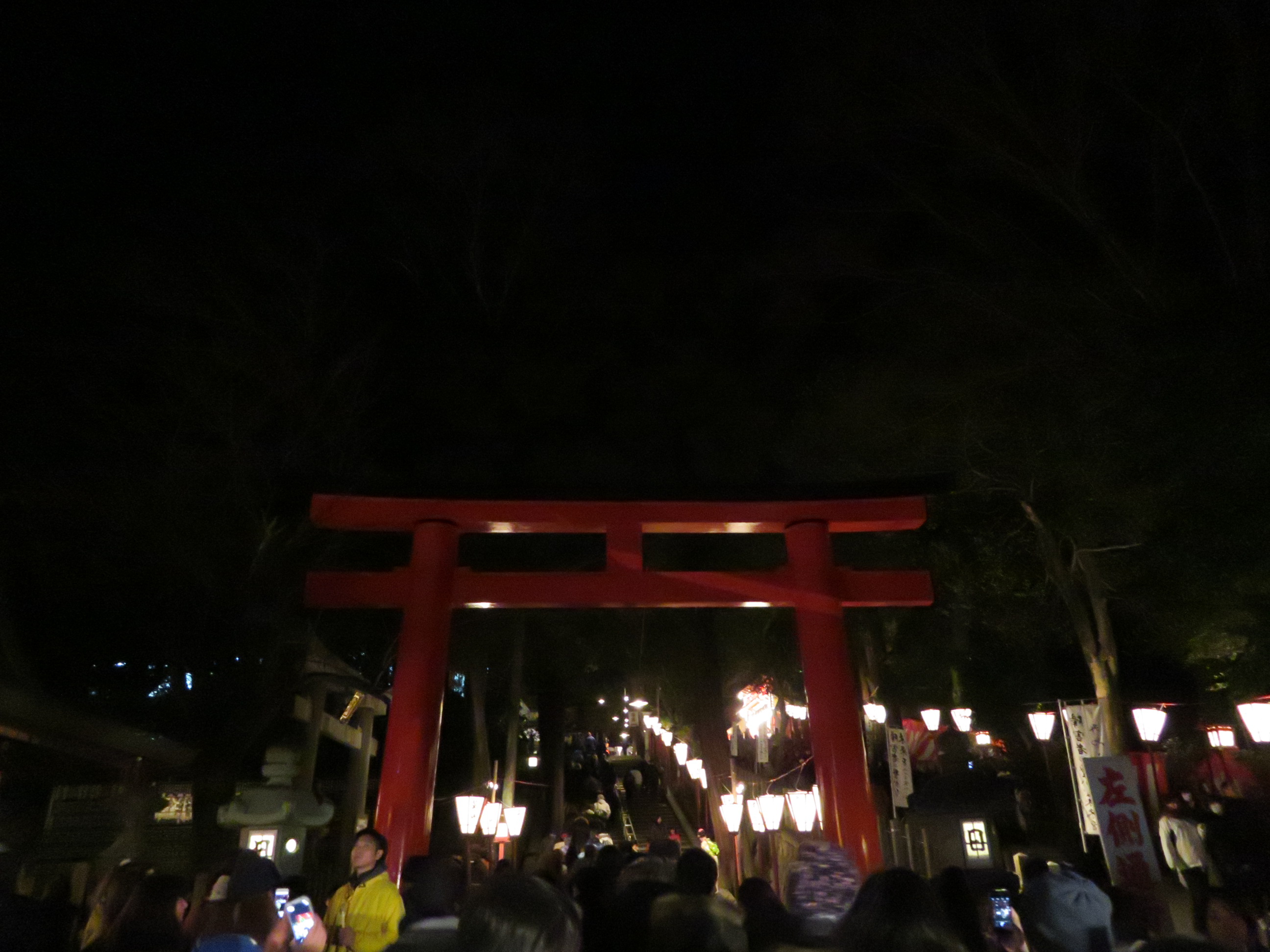 | 3年ぶりに火炉祭が復活すると聞いて、午後9時半ごろ着きました。吉田神社は露天商も 人出も群を抜いて多く、境内にも色々見るものがあるので、京都で行われる数多くの 節分会の中で、一番面白いと思います。 (写真をクリックすれば拡大されます) |