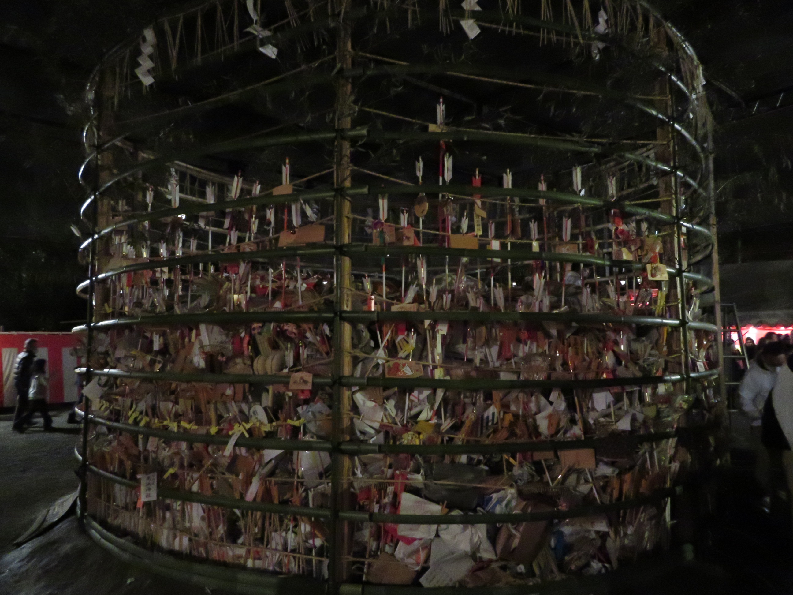 | 例年だと夕方には金網の中に入り切れなくて、人が上に乗って足で押し込んでぎゅうぎゅう 詰めになる程だったのですが、まだ半分も満たない状態でした。今年火炉祭が復活したことが、 まだ周知されていないようでした。 |