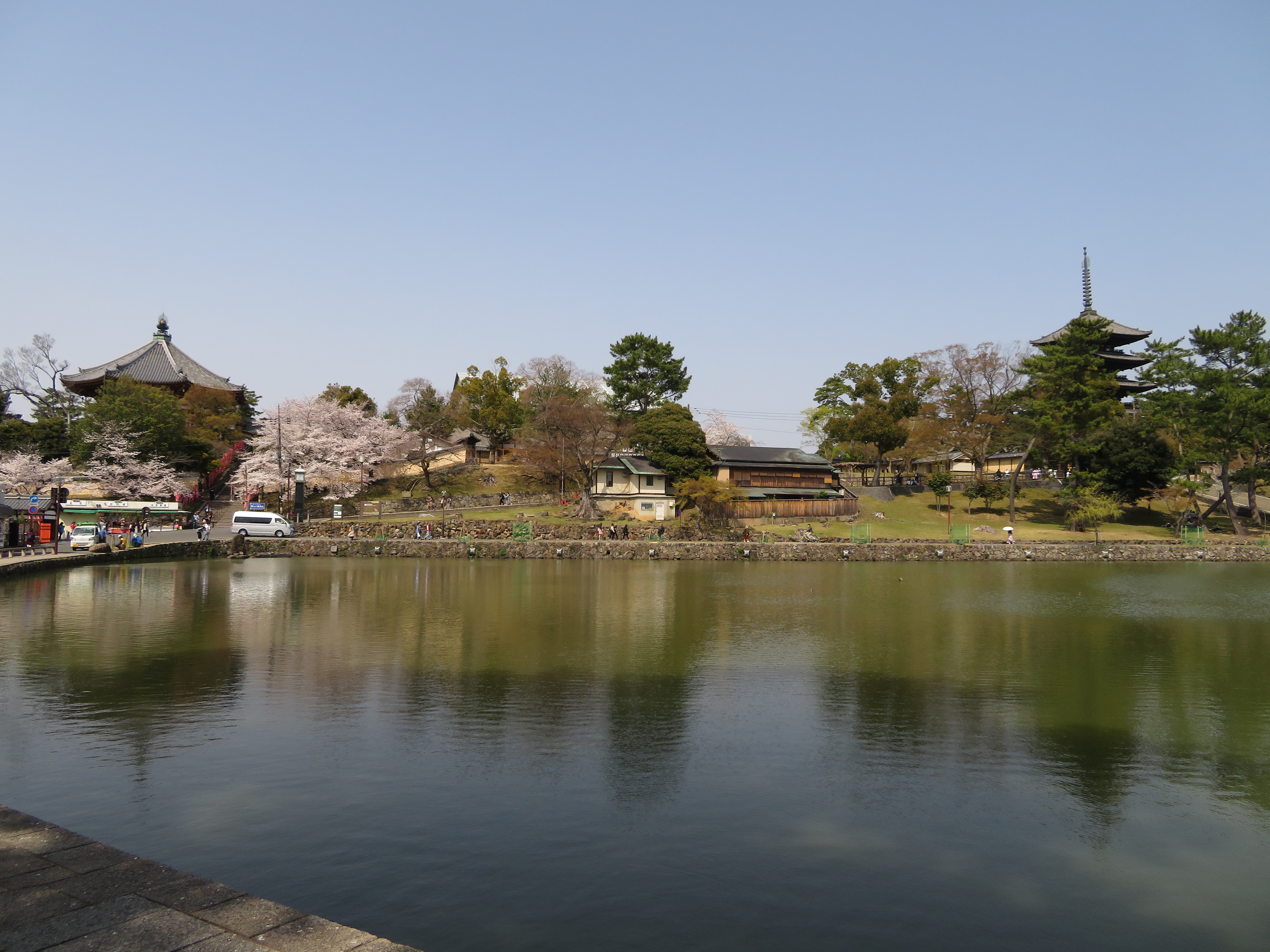 | 何時もの私の散歩コースでしたが、桜の満開の時期に歩くのは初めてでした。 奈良と桜は余りイメージが無かったのですが、改めて見直しました。 |