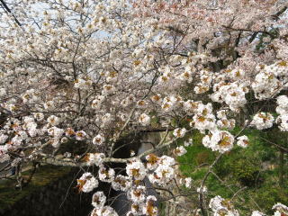 | 哲学の道は思いのほか桜が残っていて、新緑との対比が綺麗でした。 |