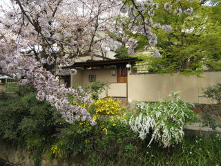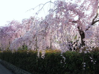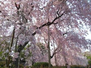 | 清流邸のしだれ桜は満開。 |