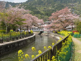 | 山科疎水安珠橋の桜と菜の花(クリックすると拡大します。) |