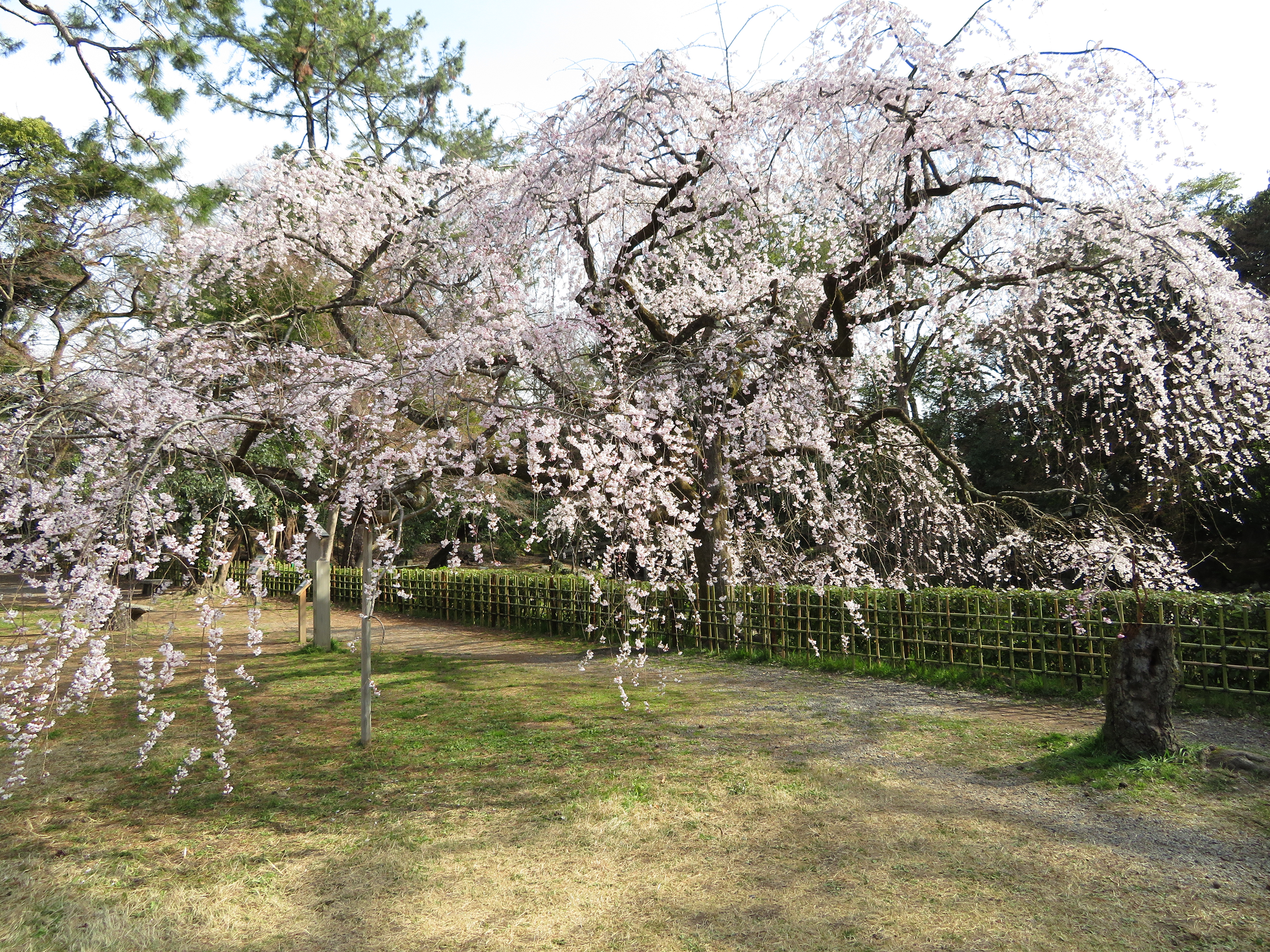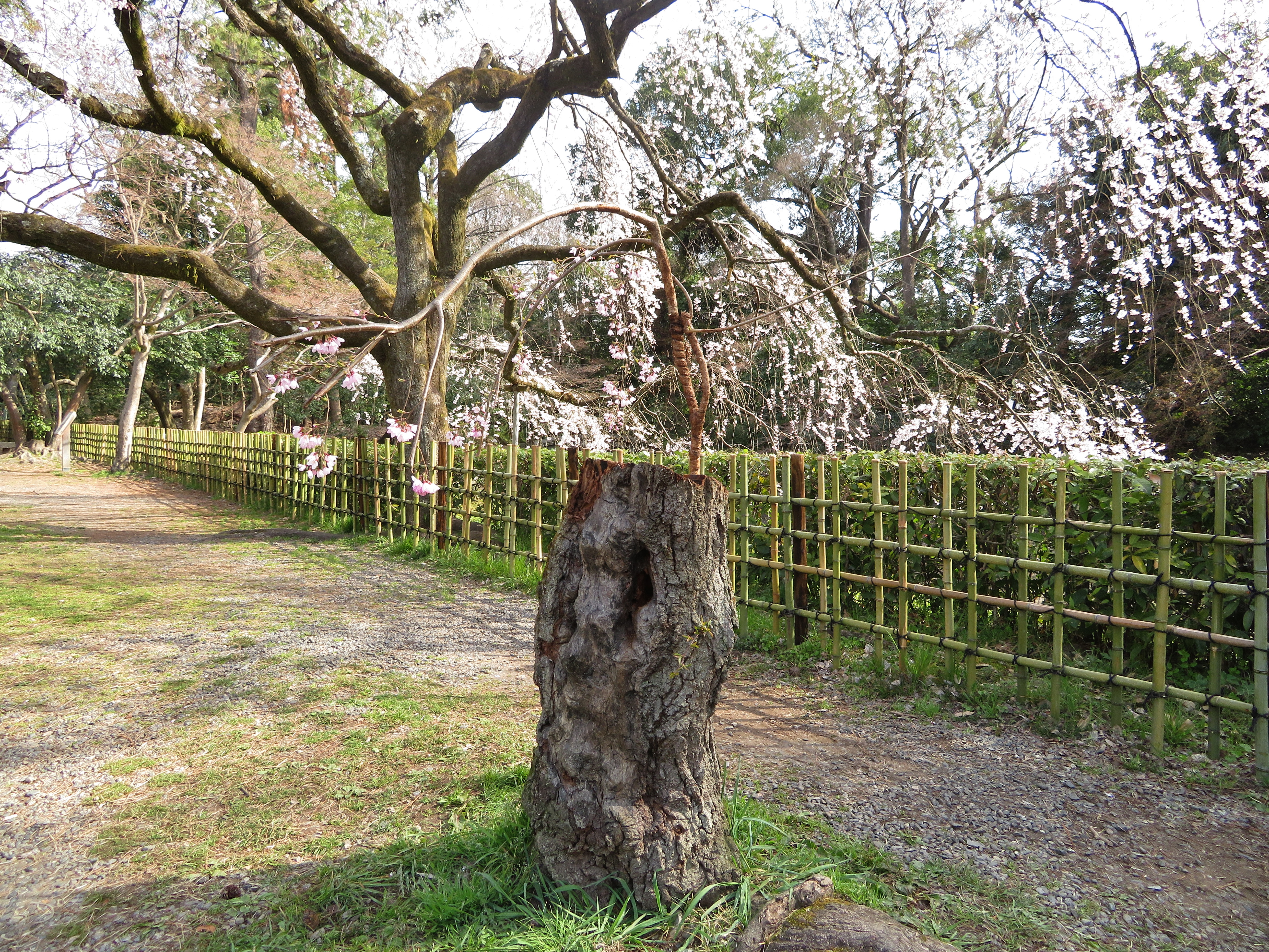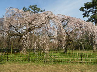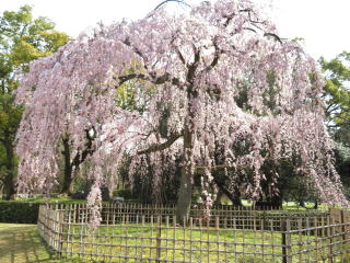 | 去年9月の台風21号で近衛邸跡の桜も3本無くなって、少し隙間が出来て間延びした 感じがします。最初の写真の右側の樹は、台風に関係なく衰えてこんな風になりました。 この二本の桜が満開の時は、本当に綺麗でした。 |
