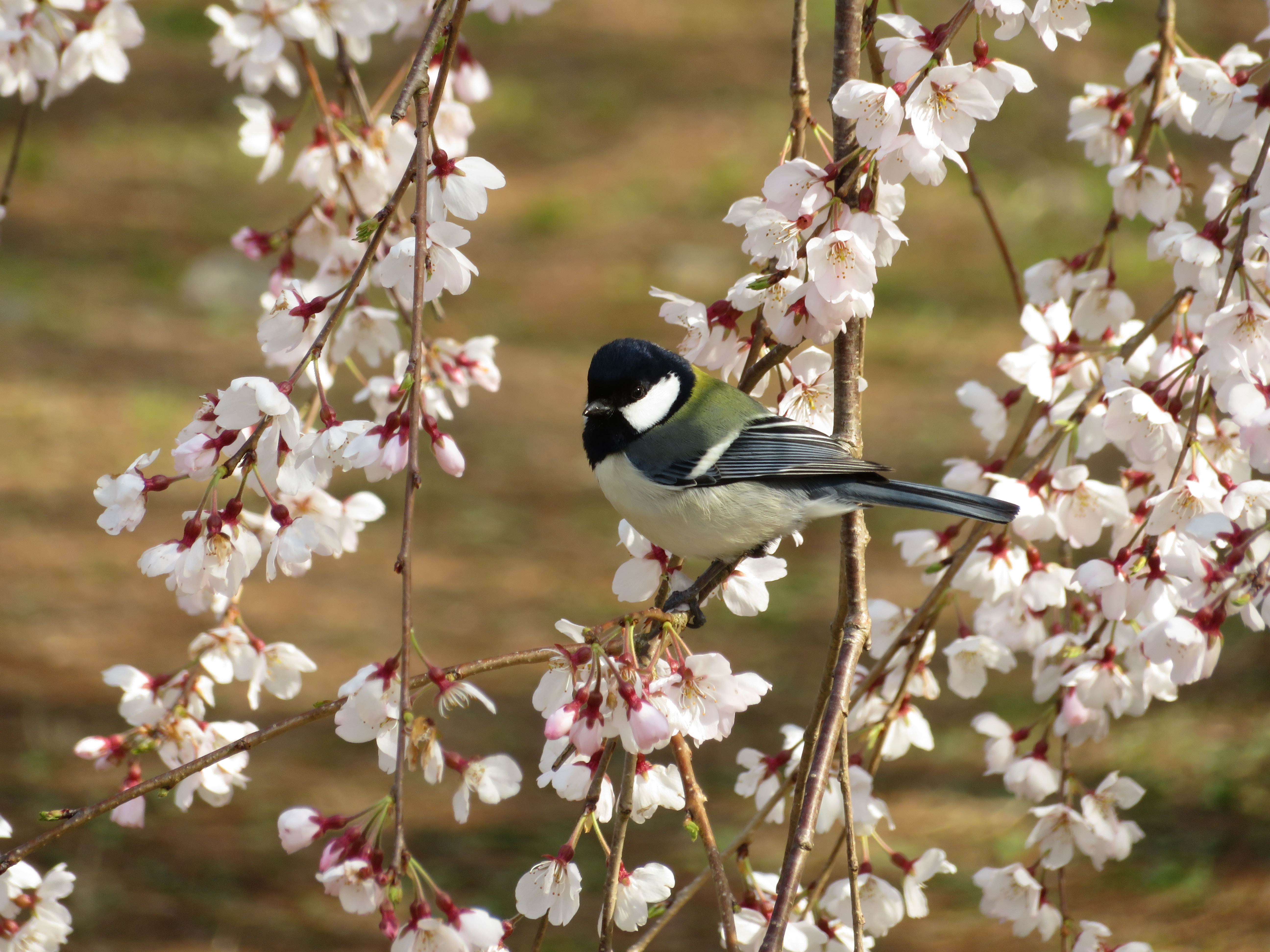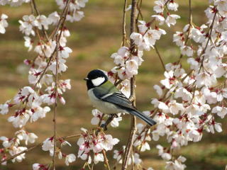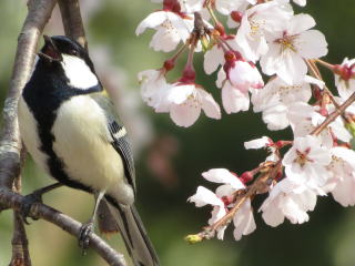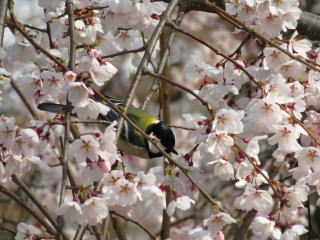 | シジュウカラの番いが、盛んに桜の花びらを啄ばんでました。 |