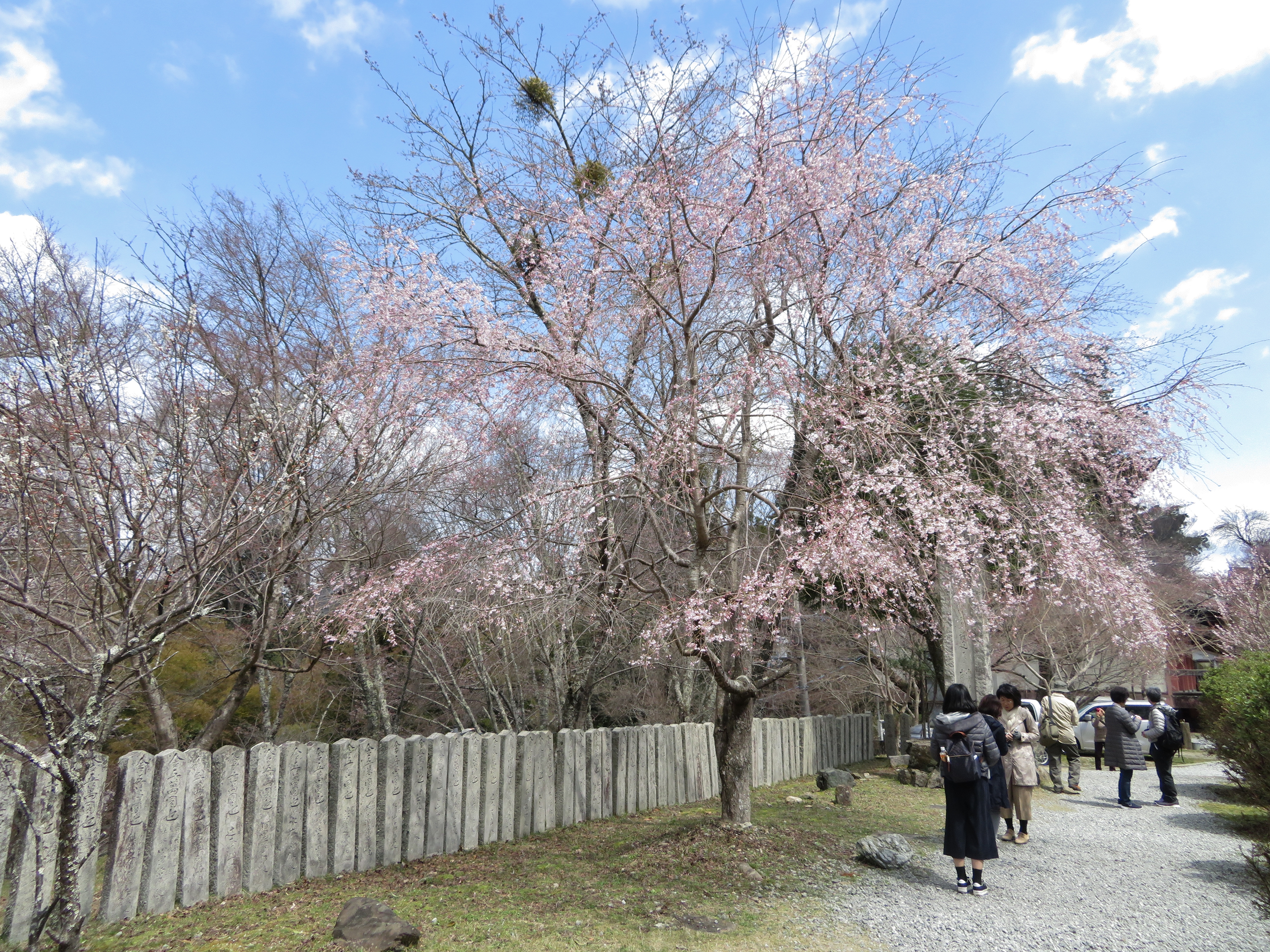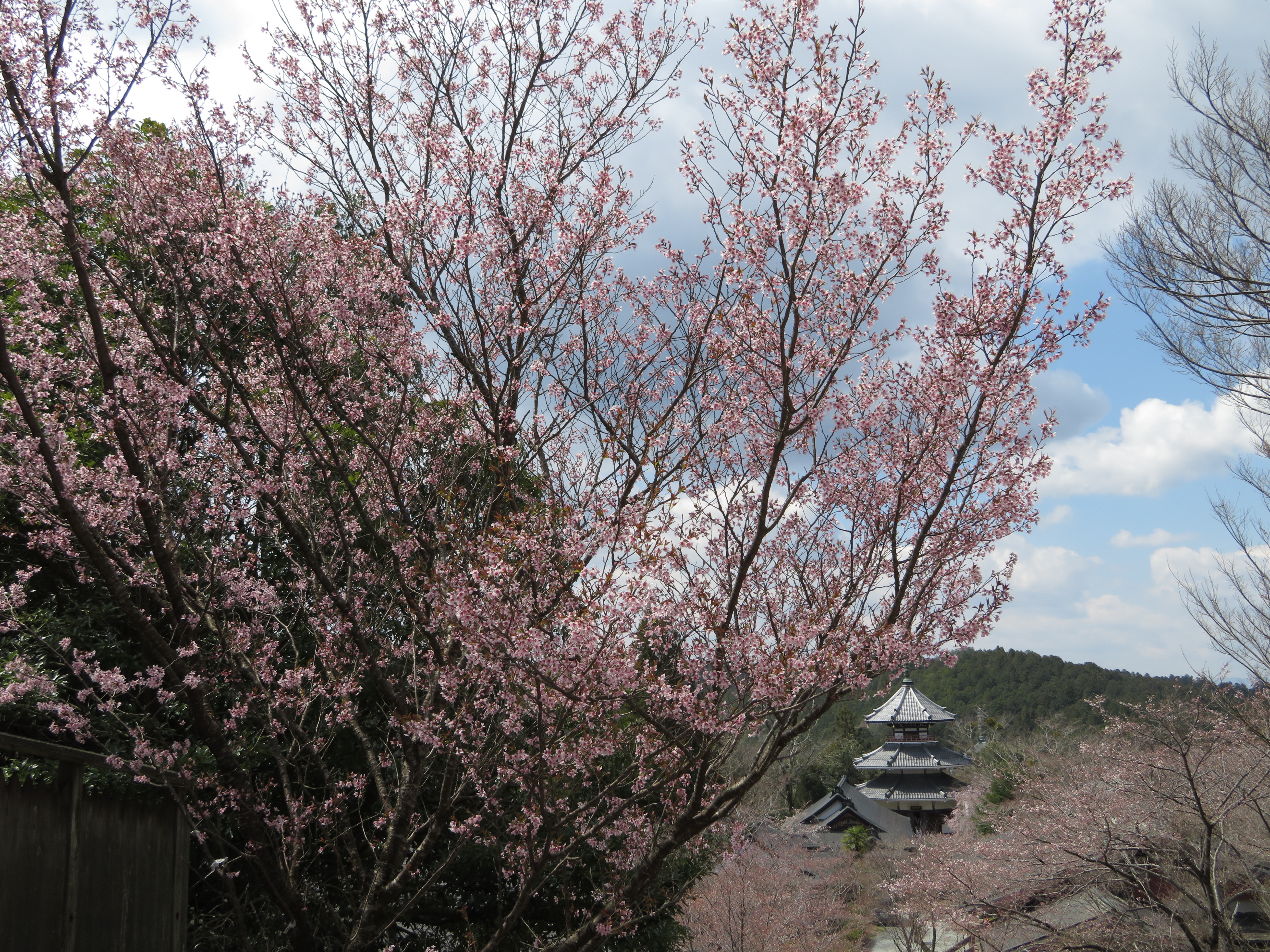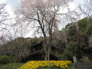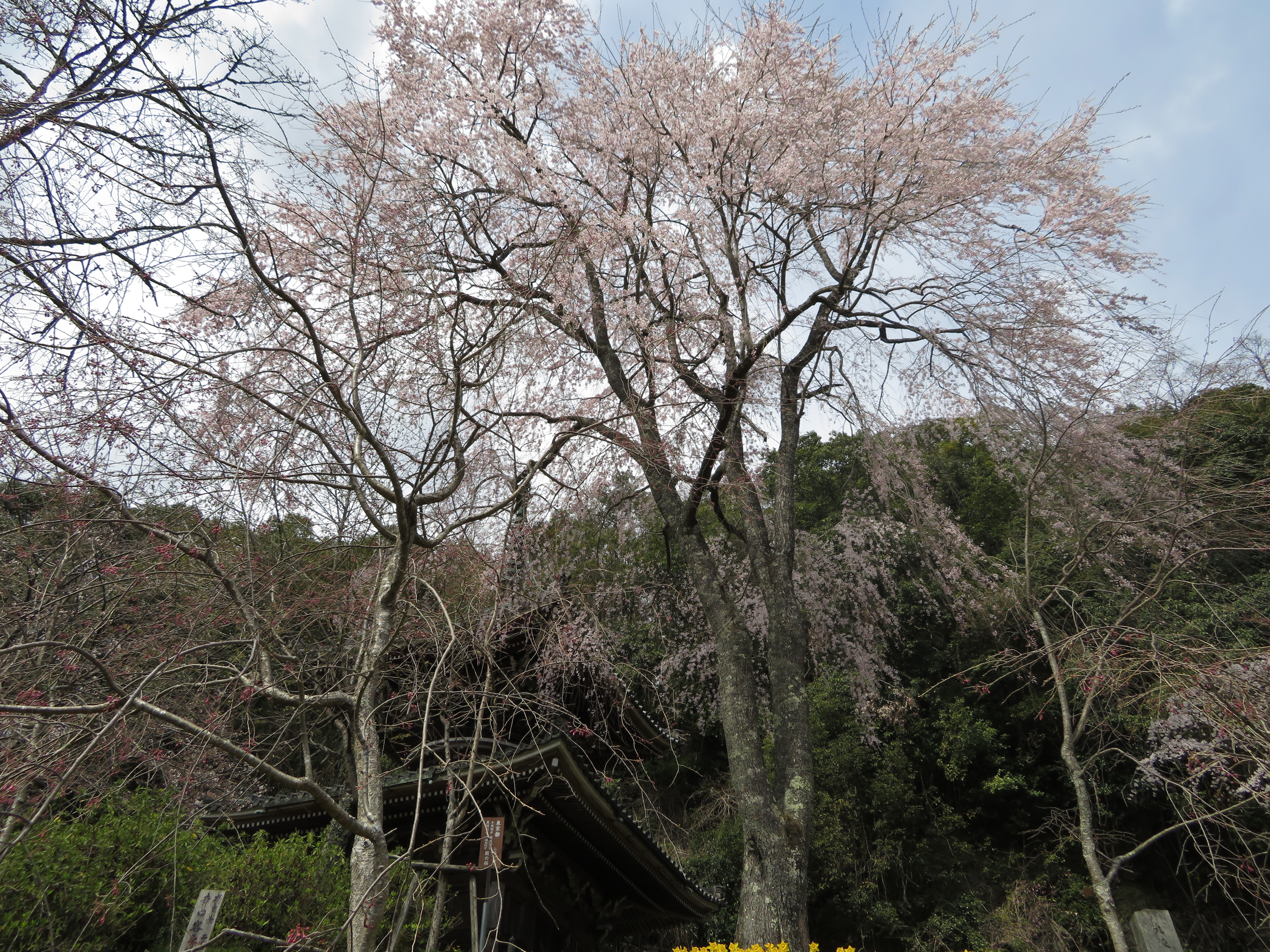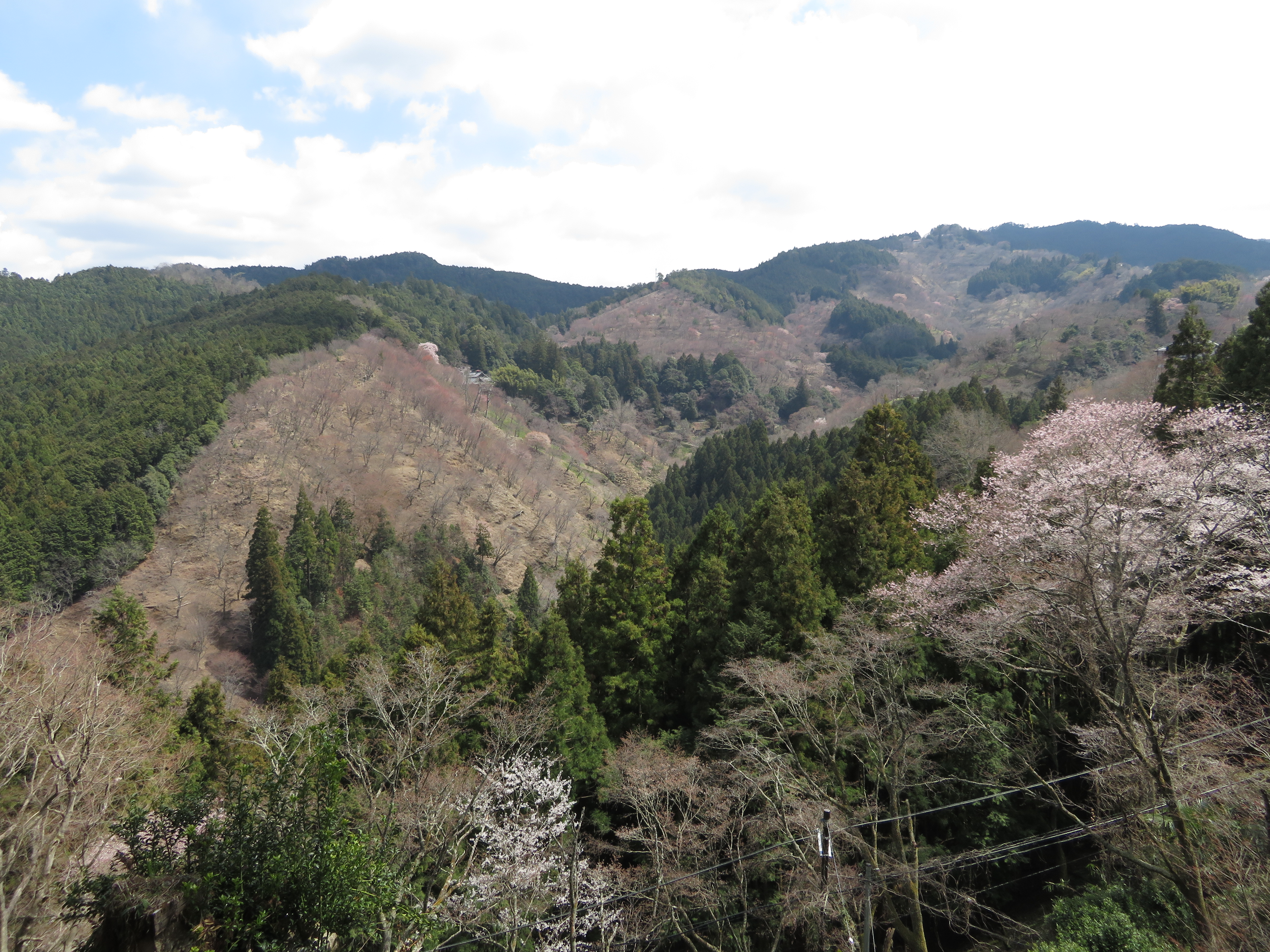 | 有名な吉水神社からの一目千本では、悲しいかなサクラは殆ど咲いてなくて、遠く彼方に 一本満開のしだれ桜が見えたので、その桜がある如意輪寺に向かいました。 |