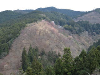 | 如意輪寺に行くには一度谷に下りて、上って行かなければなりません。 道中は、染井吉野・山桜で埋め尽くされているはずだったのですが・・・ |