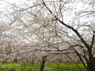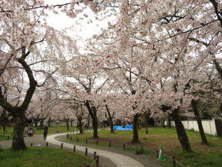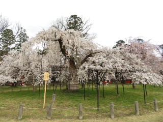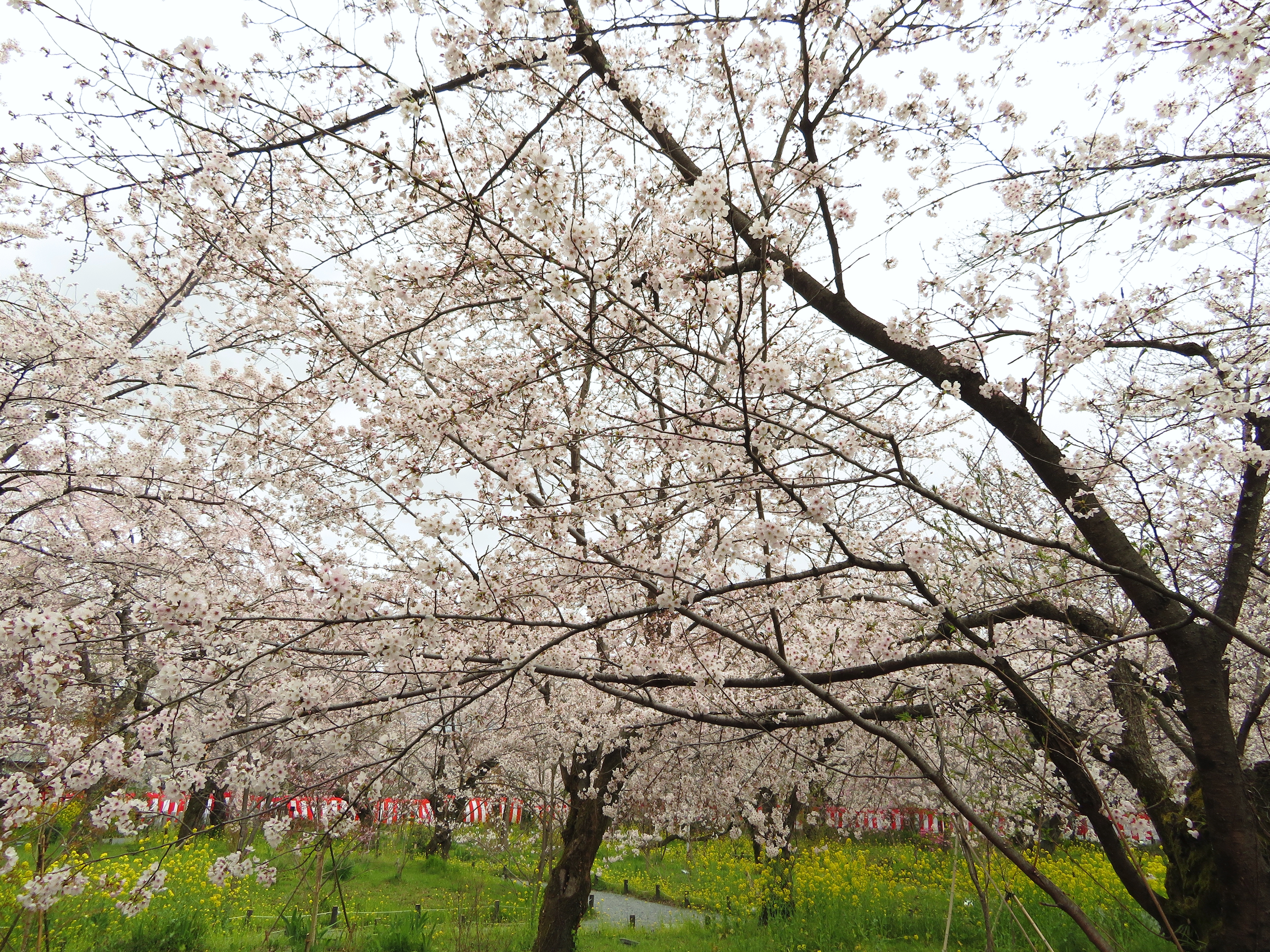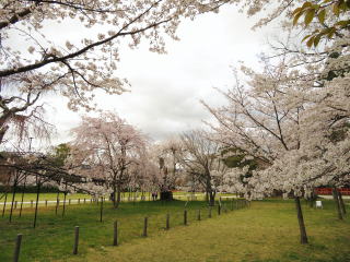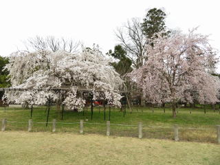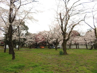 | 京都では、円山公園と平野神社だけに茶屋が出て、大々的に飲み食い出来る のですが、今年は中止になりました。広い空間がある風景が目新しいです。 |