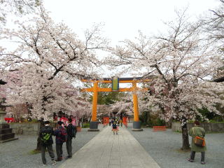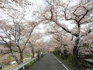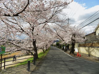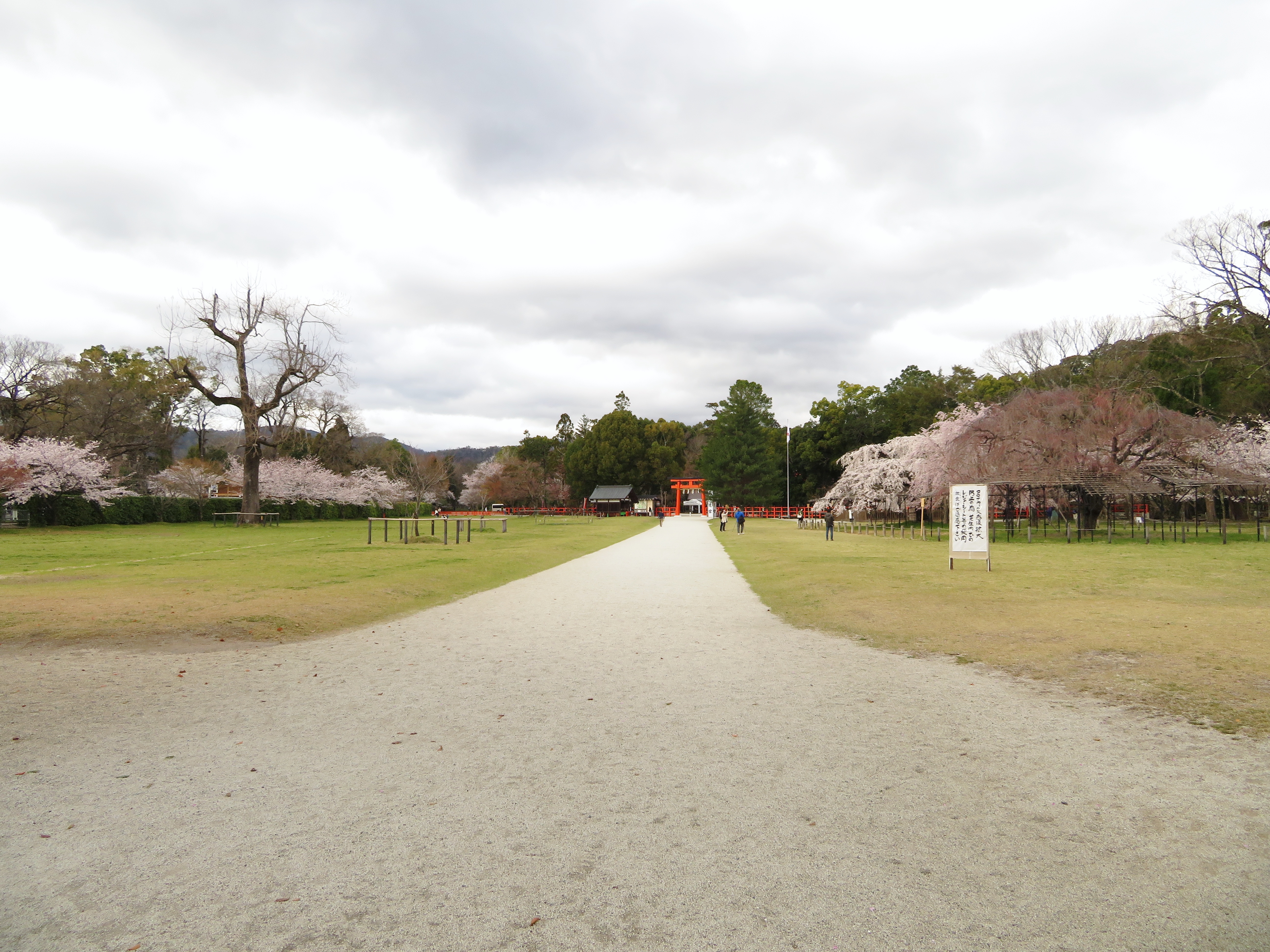 | 上賀茂神社手前の賀茂川畔の道は、桜のトンネルになります。 |
