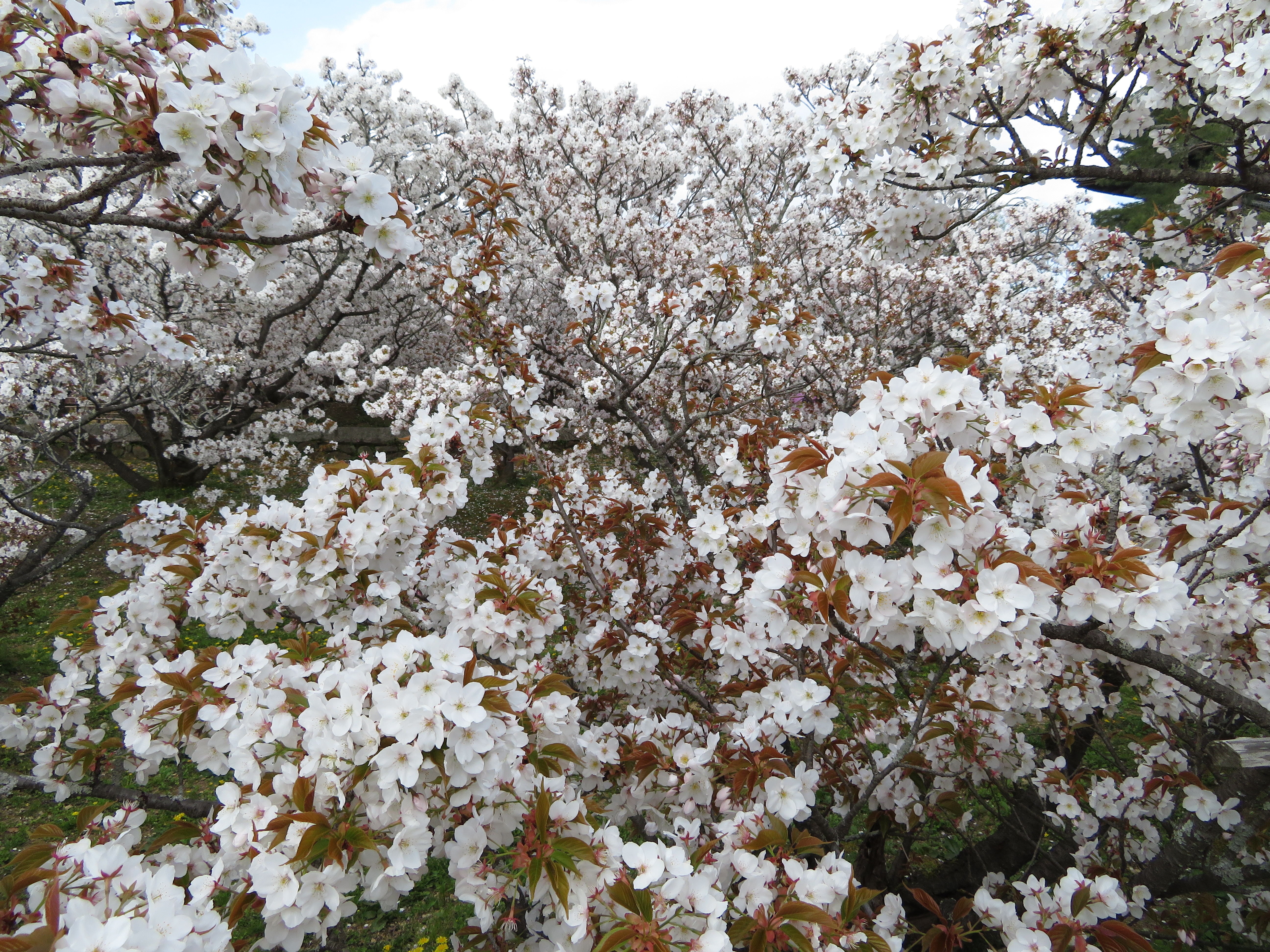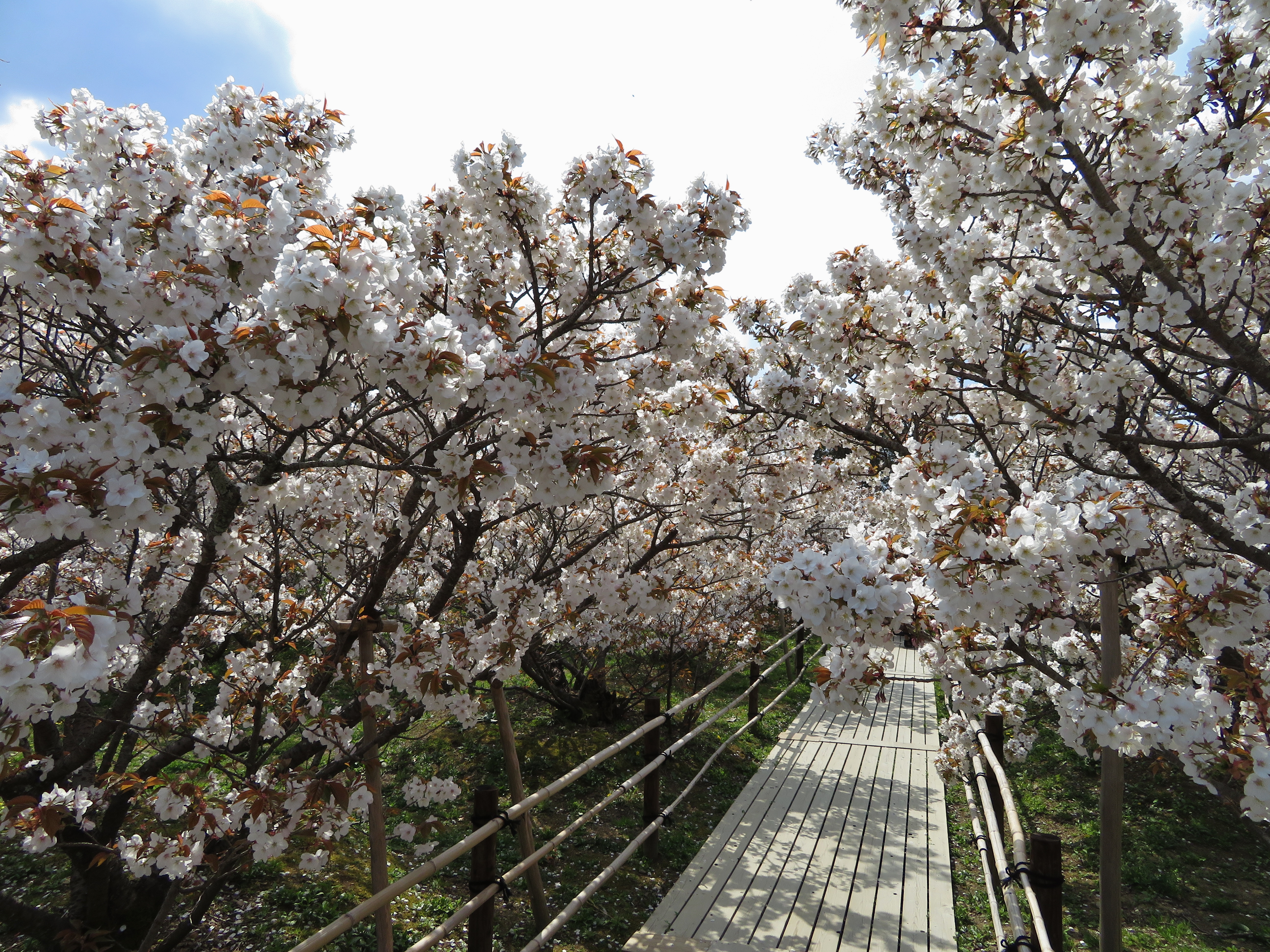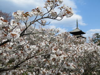 | 御室の桜には未だ早いかなと思って出掛けたのですが、満開でした。 何時もは一方通行なのですが、今年は逆行もOKでした。 |